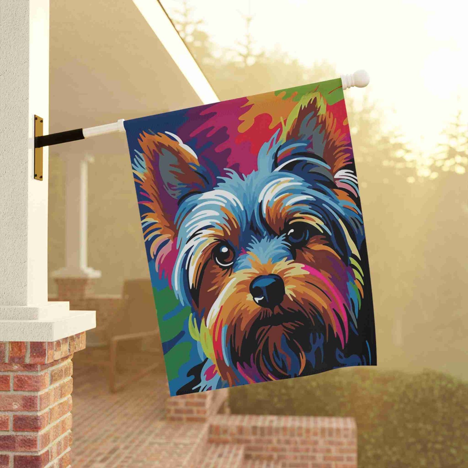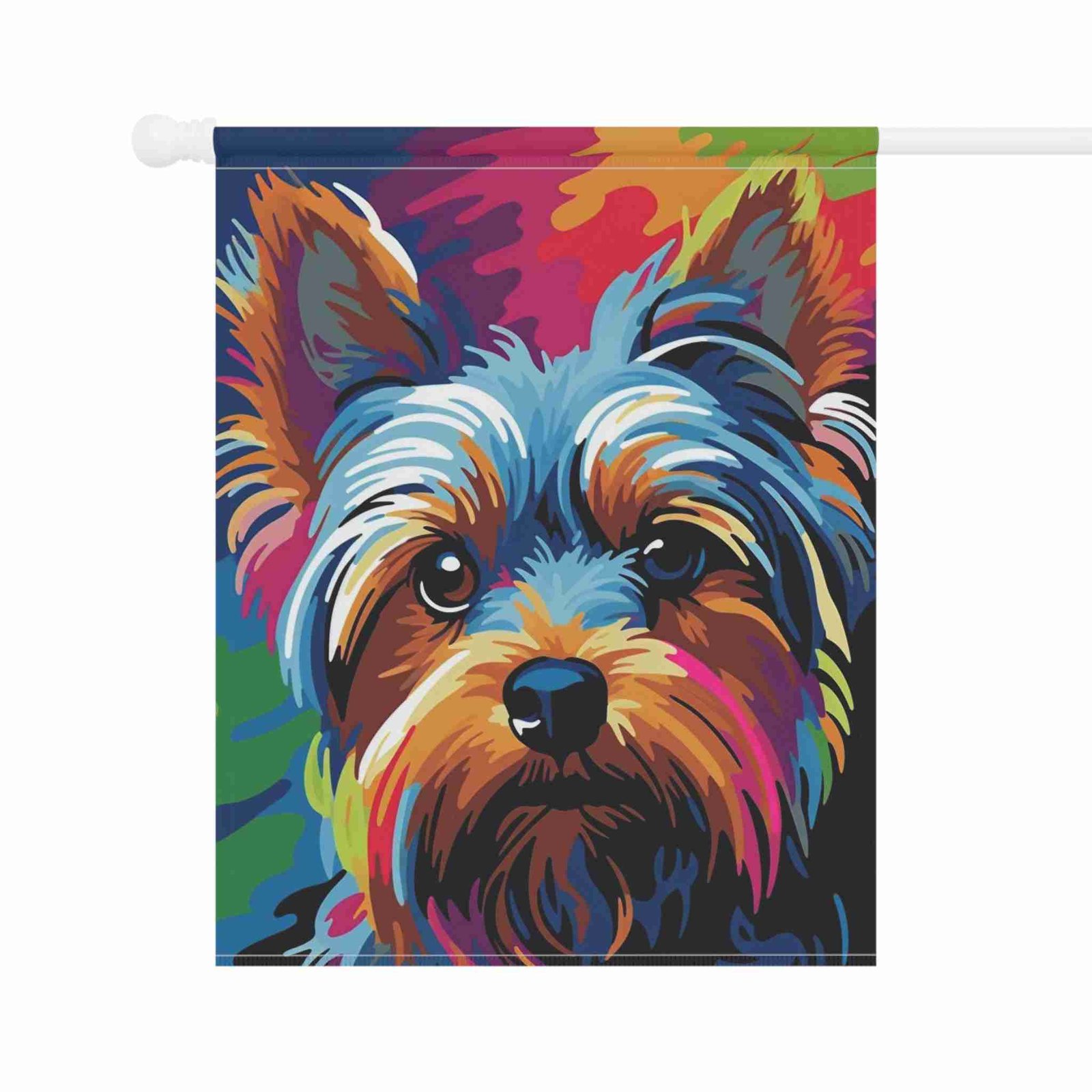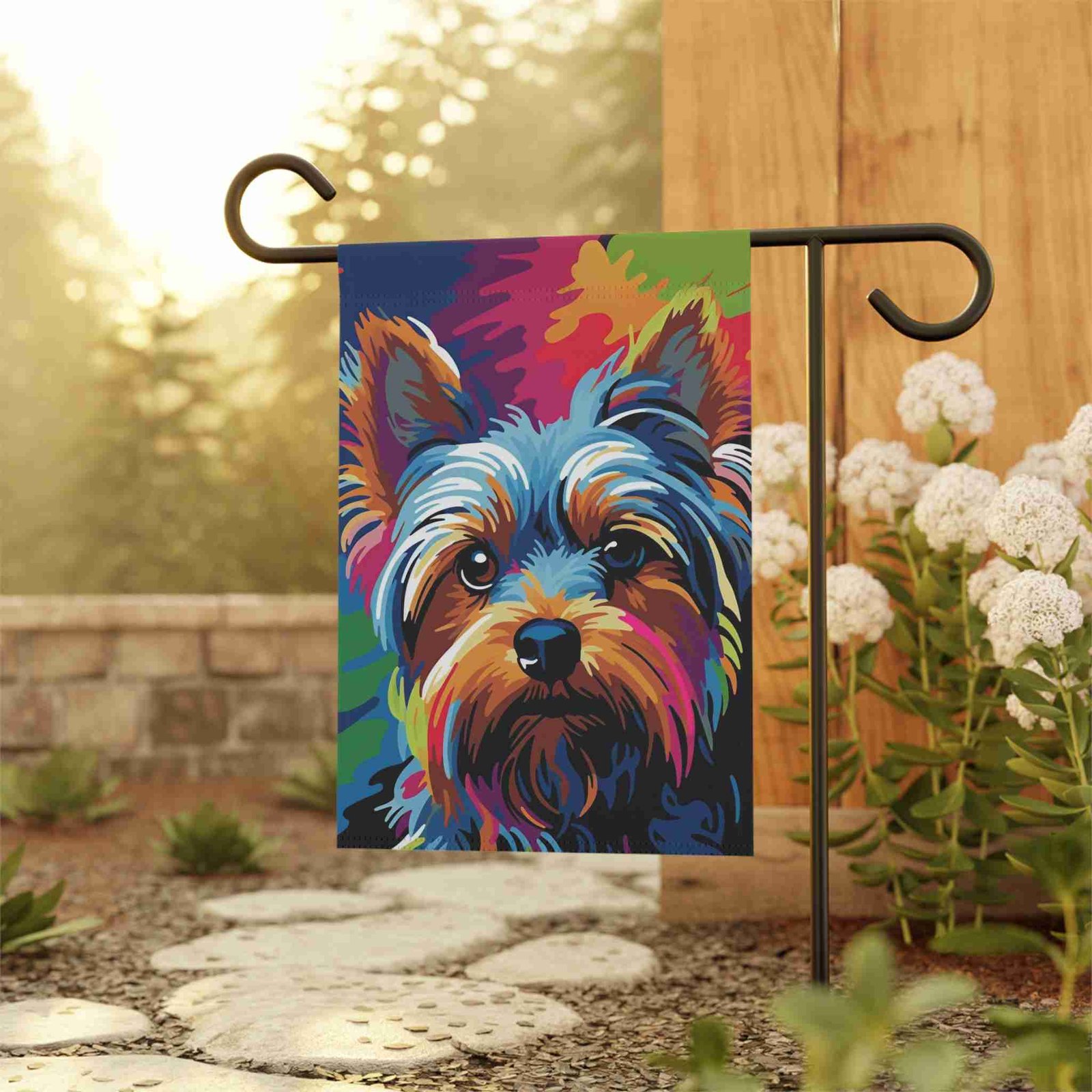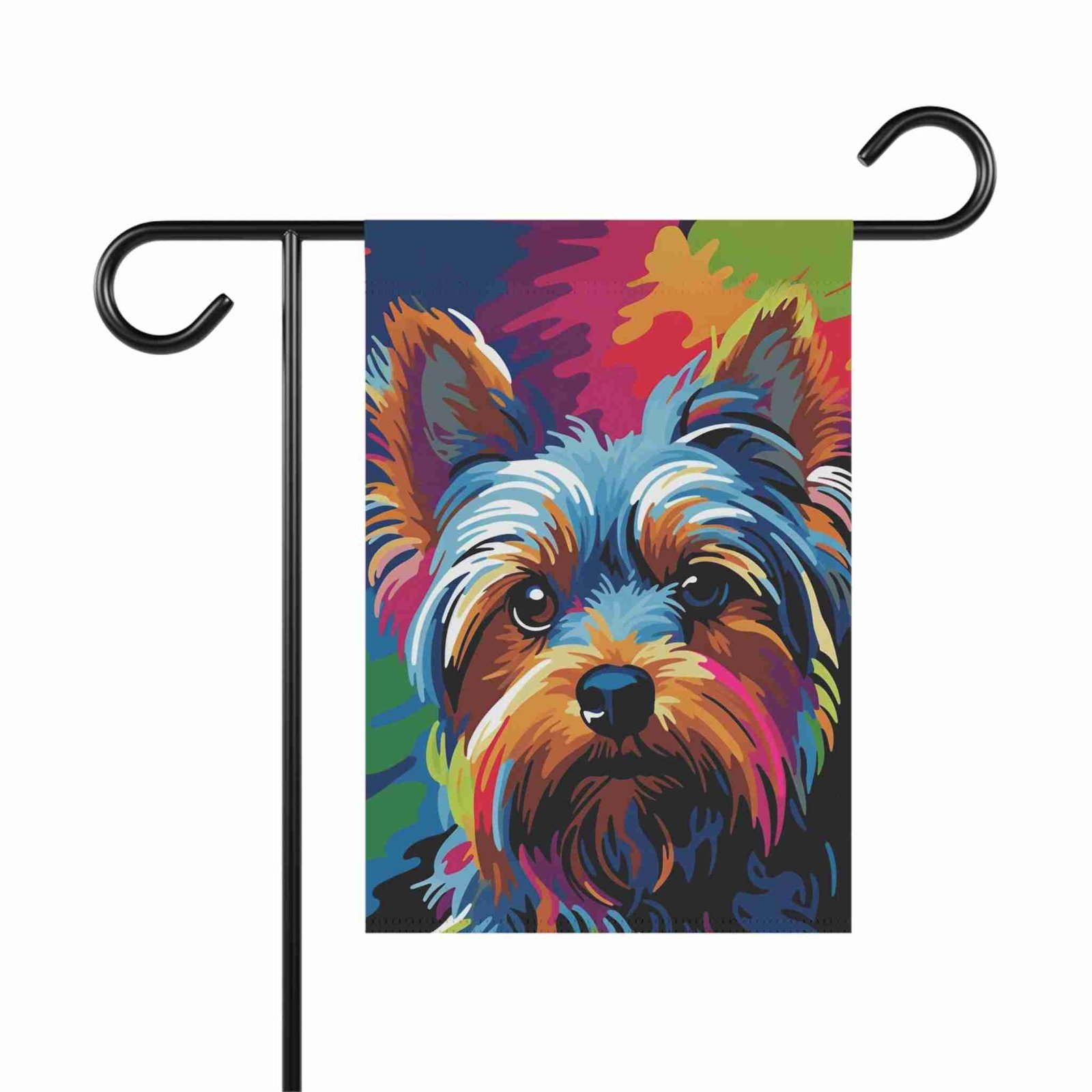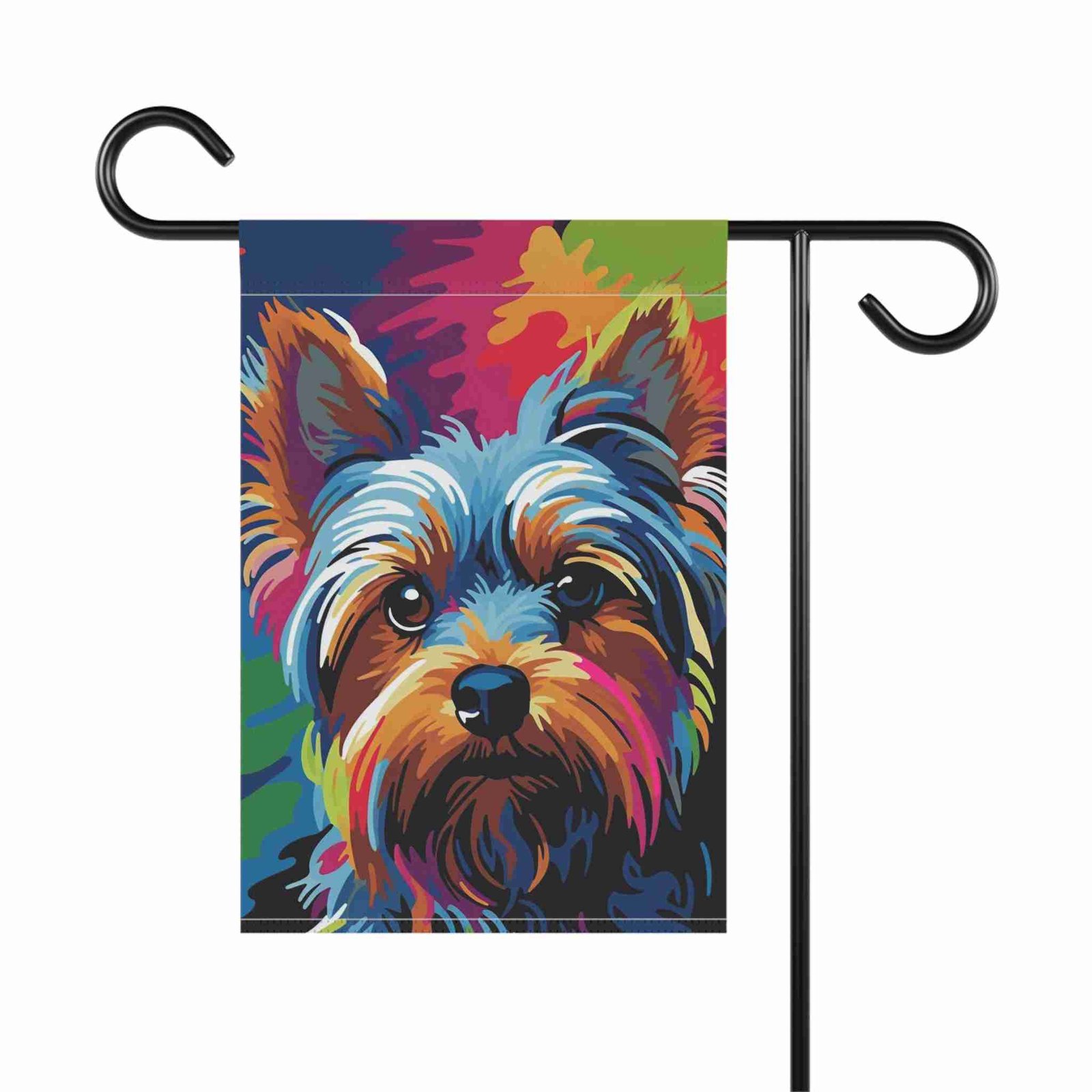 Unleash Irresistible Charm with the Abstract Colored Yorkshire Terrier Garden Flag!