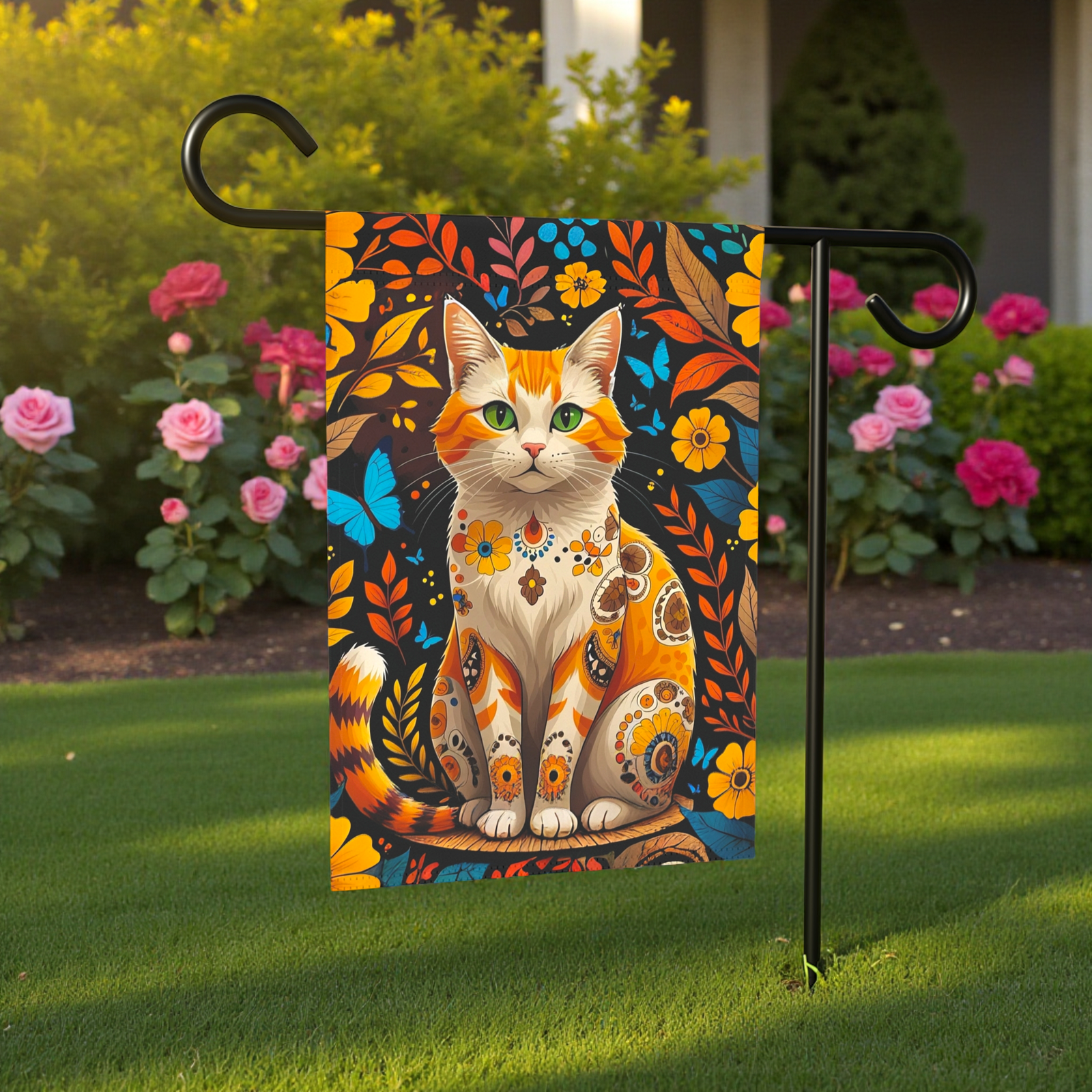 Bring Your Garden to Life with the Abstract Ginger Cat Garden Flag!