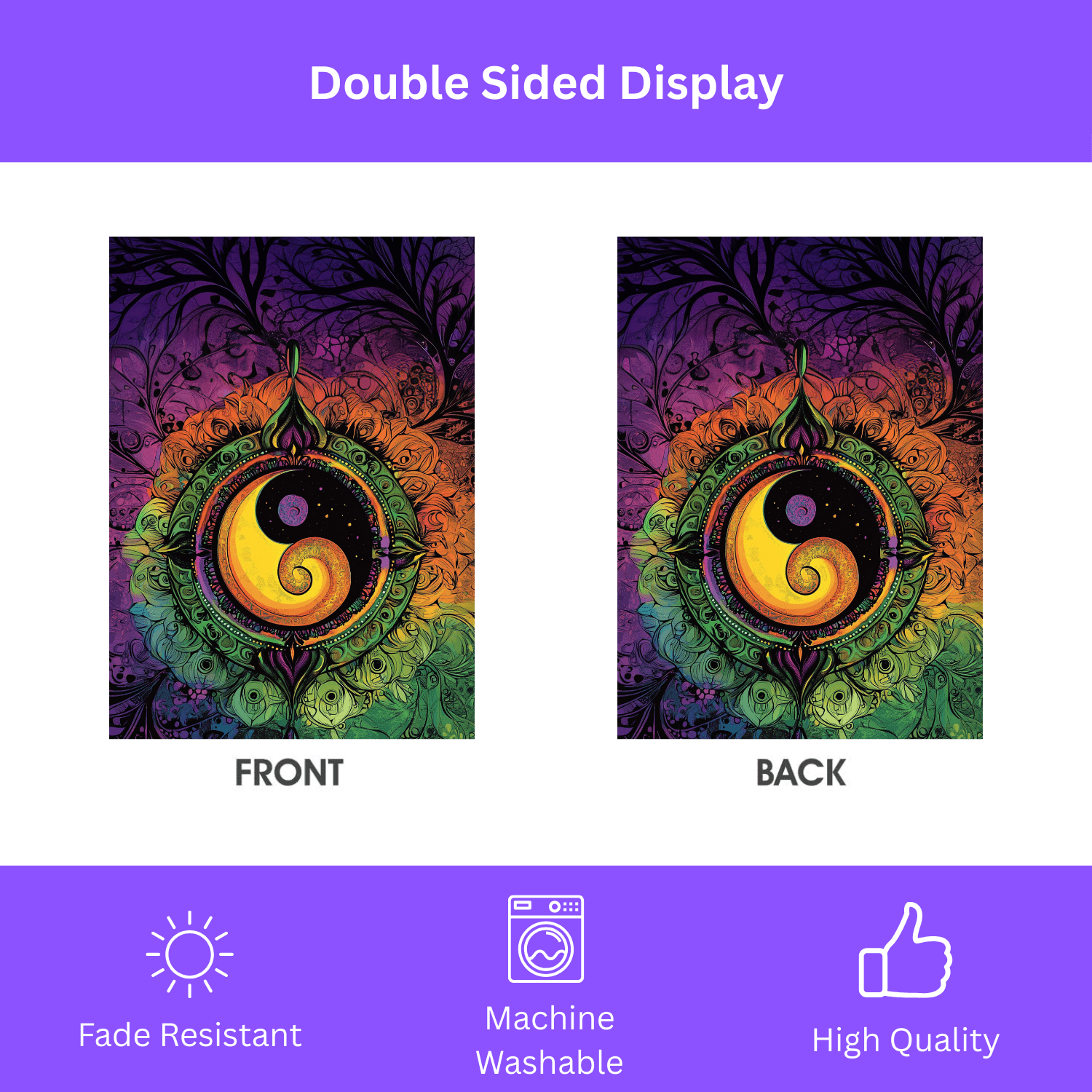 Double-Sided Harmony: The stunning design is printed on BOTH sides, ensuring beautiful visibility and enhancing your decor from any angle – a truly versatile and artistic presence no matter where it’s viewed from!