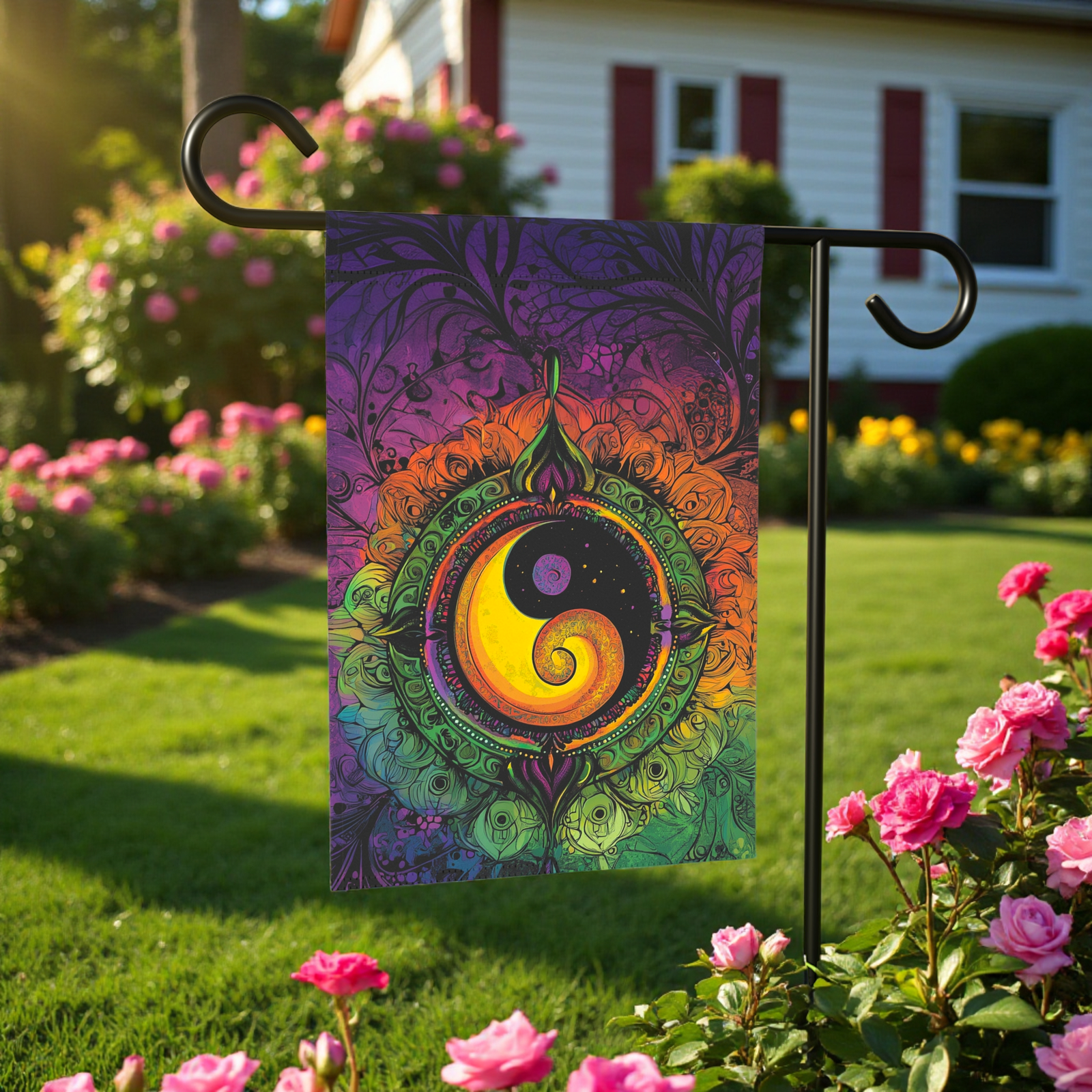 Elevate your outdoor space into a haven of balance, vibrant energy, and captivating charm with our stunning Abstract Yin and Yang Garden Flag! This isn’t just a banner; it’s a beautiful, artistic declaration designed to infuse your garden or yard with unforgettable personality and serene grace. Imagine a dynamic Yin and Yang symbol, reimagined with intricate, abstract details and eye-catching colors that will instantly bring an uplifting atmosphere to your home and radiate a sense of perfect harmony.