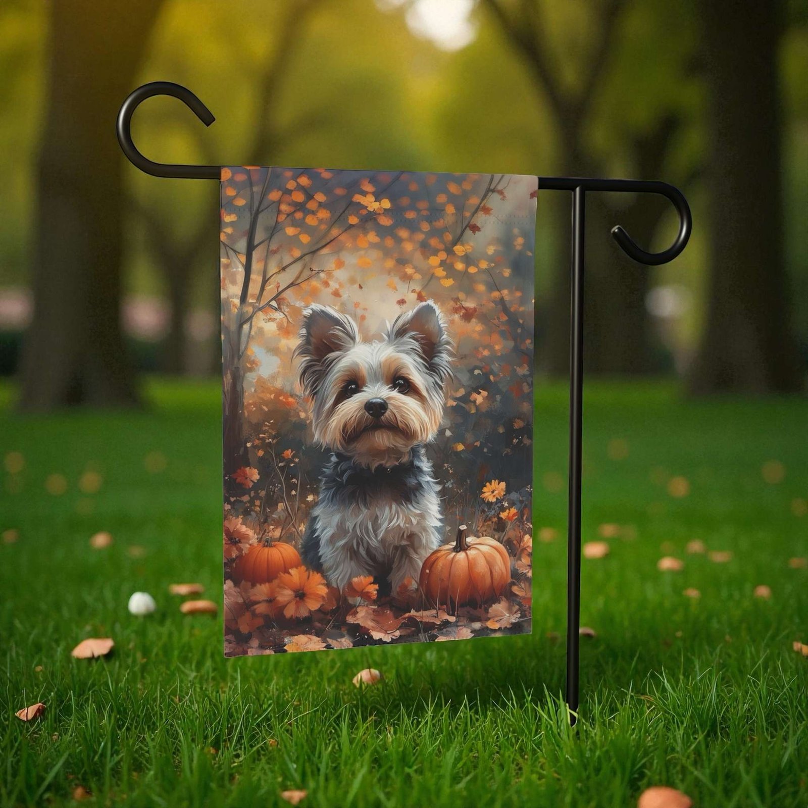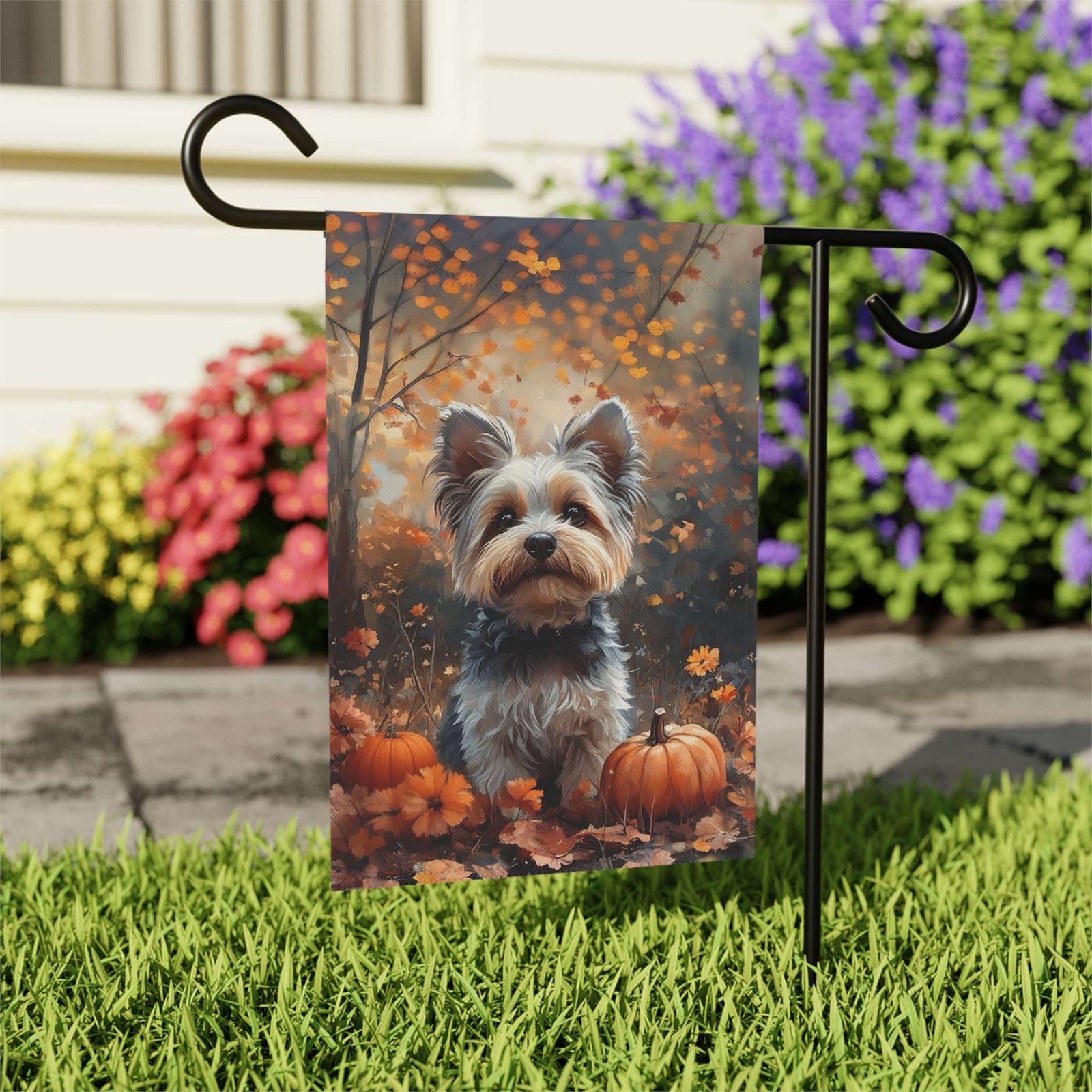 Fall for Charm with the Autumn Yorkshire Terrier Garden Flag!