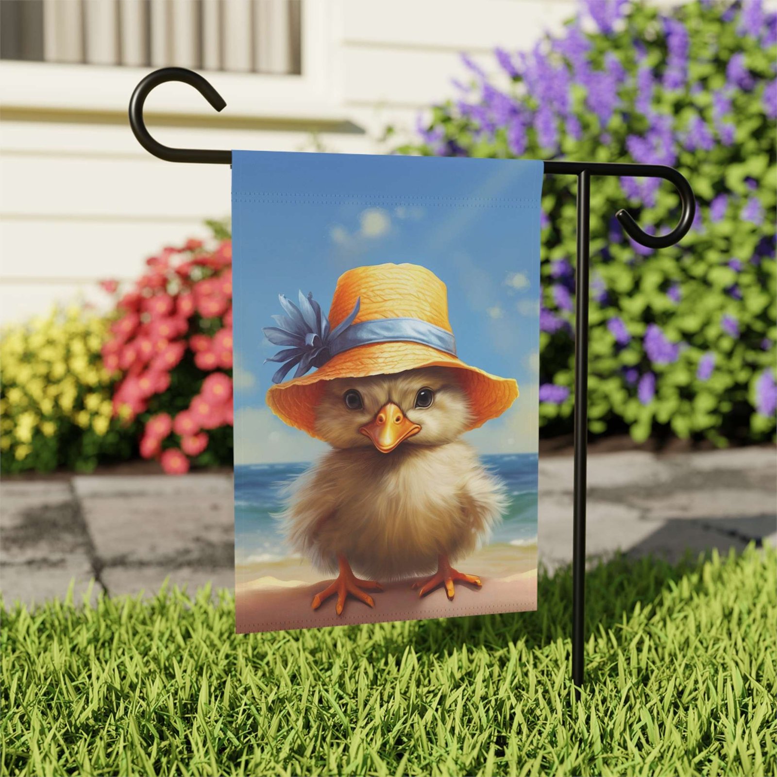 You’ve found it in the Beach Duckling Garden Flag. This isn’t just a flag; it’s a window into a serene, enchanting scene. Imagine an adorable duckling enjoying a day at the beach, ready to greet all who pass by. It’s the perfect way to add personality and warmth to your outdoor space, turning your yard into a centerpiece of comfort and style.