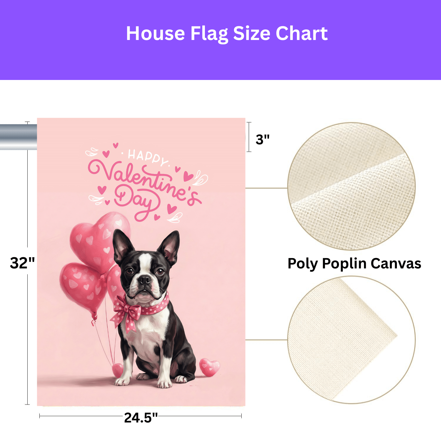 Made from premium, durable 100% poly poplin-canvas, this flag is built to handle the elements while keeping its vibrant, full-color printing brilliantly bright. Thanks to the double-sided printing and black inner lining, the delightful imagery is bold and sharp from every angle, ensuring your message of love is never missed. Whether you choose the accent size for a cozy corner or the large size for a bold front-yard statement, it’s the perfect way to celebrate your pup and the season of love.