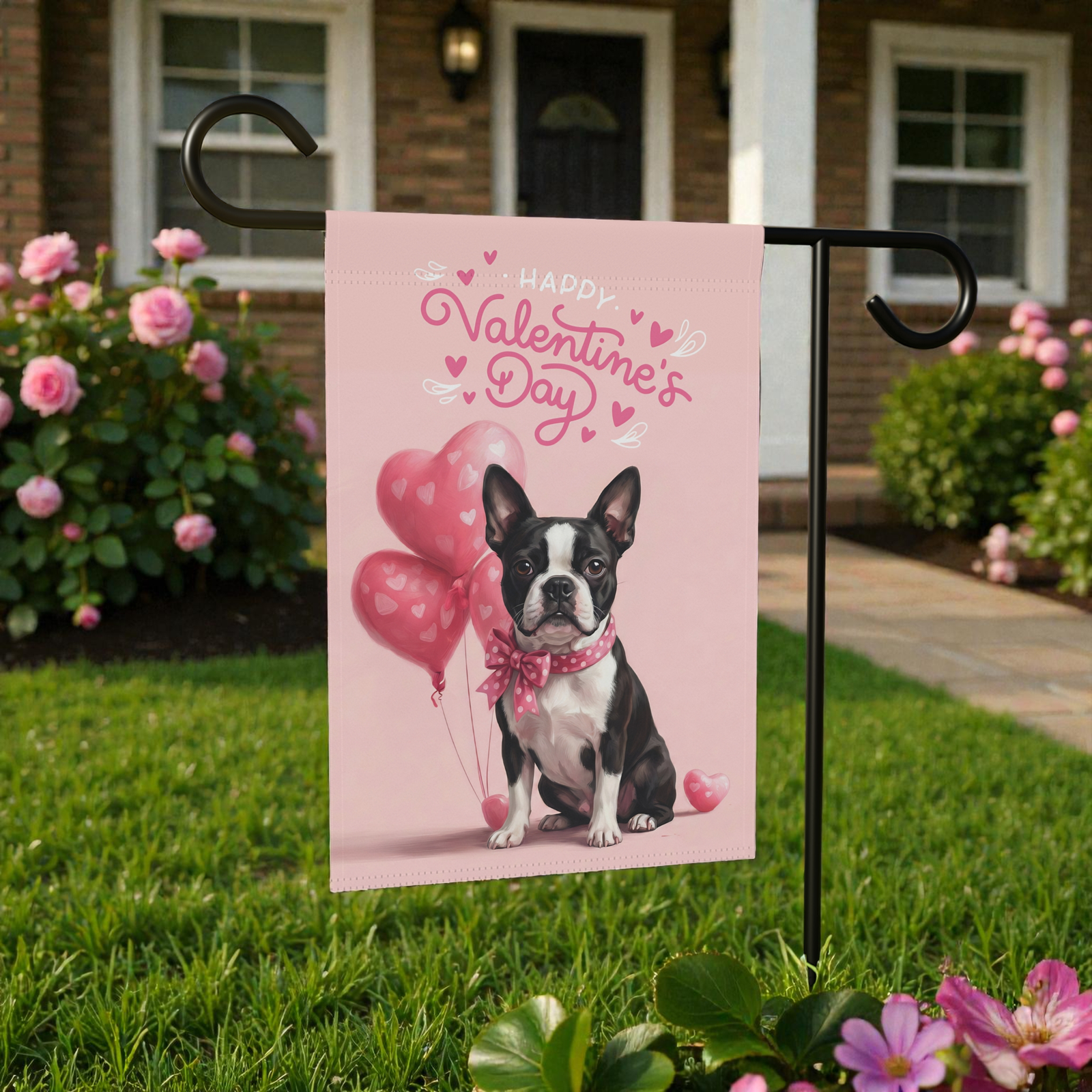 You’ve found it with the Boston Terrier Happy Valentine’s Day Garden Flag. This isn’t just a banner; it’s a warm, wagging welcome for every guest. Imagine your loved ones arriving to see this: your favorite dapper pup sitting proud among a whimsical cluster of heart-shaped balloons. Set against a dreamy backdrop of soft pink tones, this affectionate scene creates a cozy, joyful atmosphere that brightens any porch, entryway, or indoor nook.
