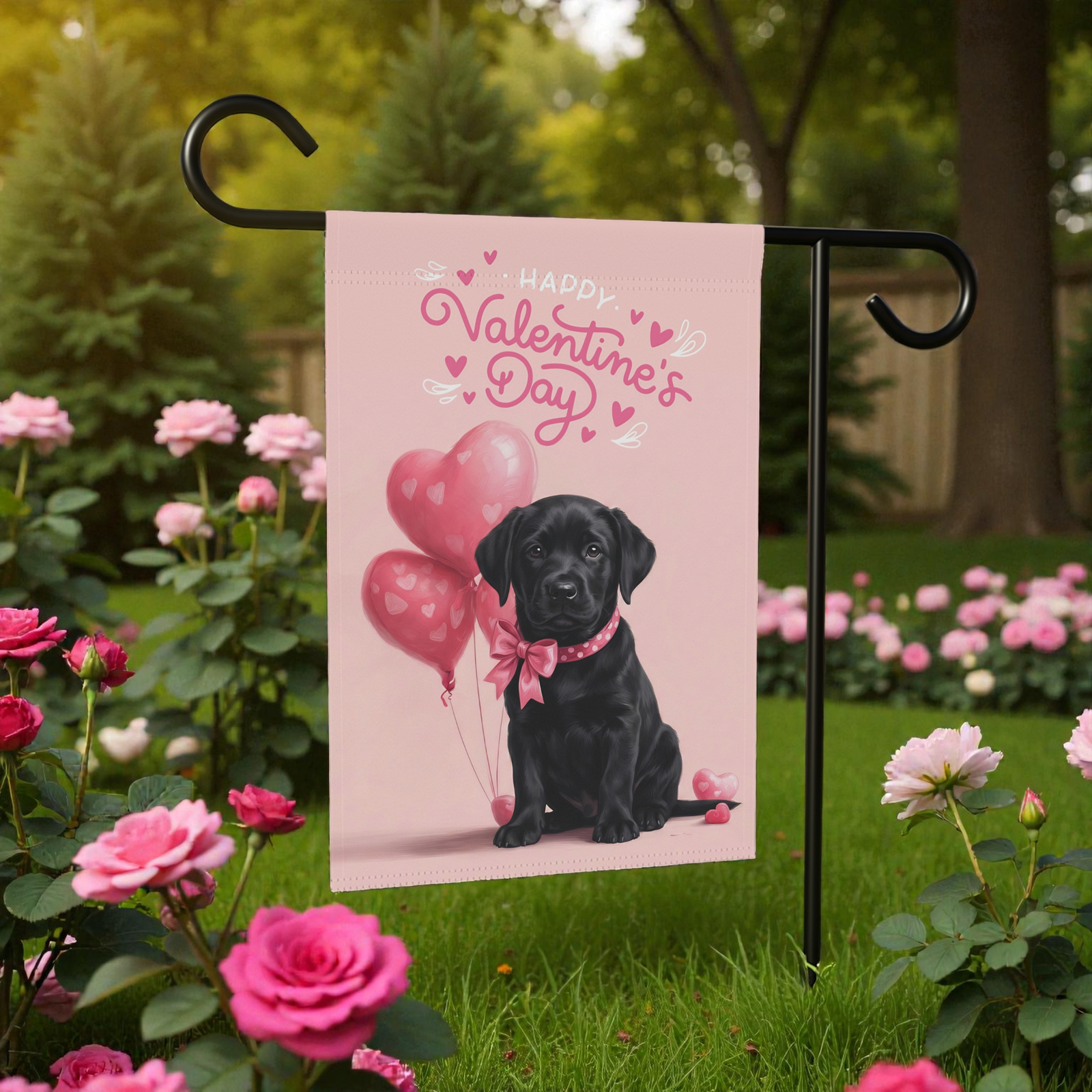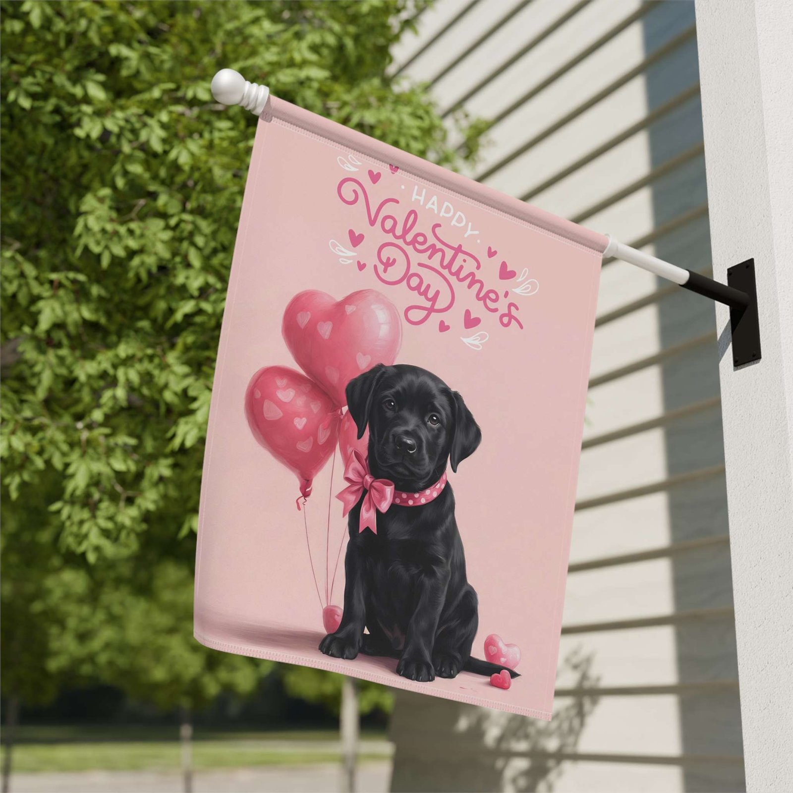 You’ve found it with the Black Labrador Happy Valentine’s Day Garden Flag. This isn’t just a banner; it’s an instant dose of “Puppy Love” for your home. Imagine your neighbors and loved ones arriving to see this: your favorite velvety-eared friend looking absolutely precious, holding a whimsical cluster of heart-shaped balloons. Set against a dreamy blush-pink background with curly, hand-lettered “Happy Valentine’s Day” script, it transforms your porch, yard, or entryway into a cozy haven of warmth and affection.