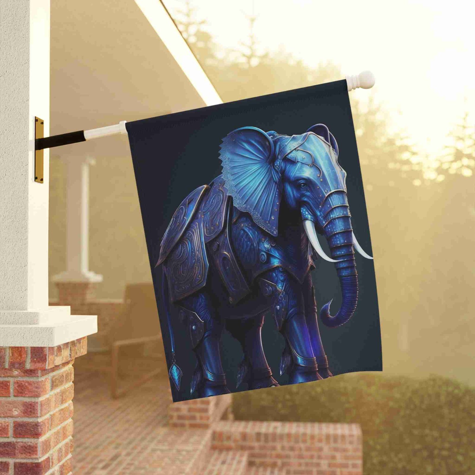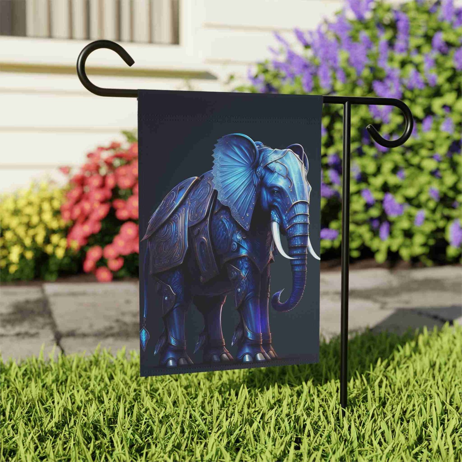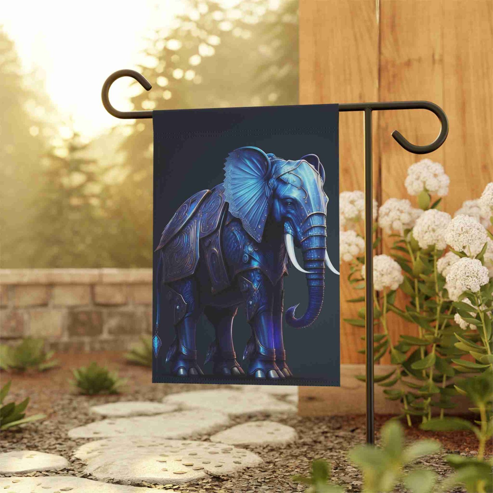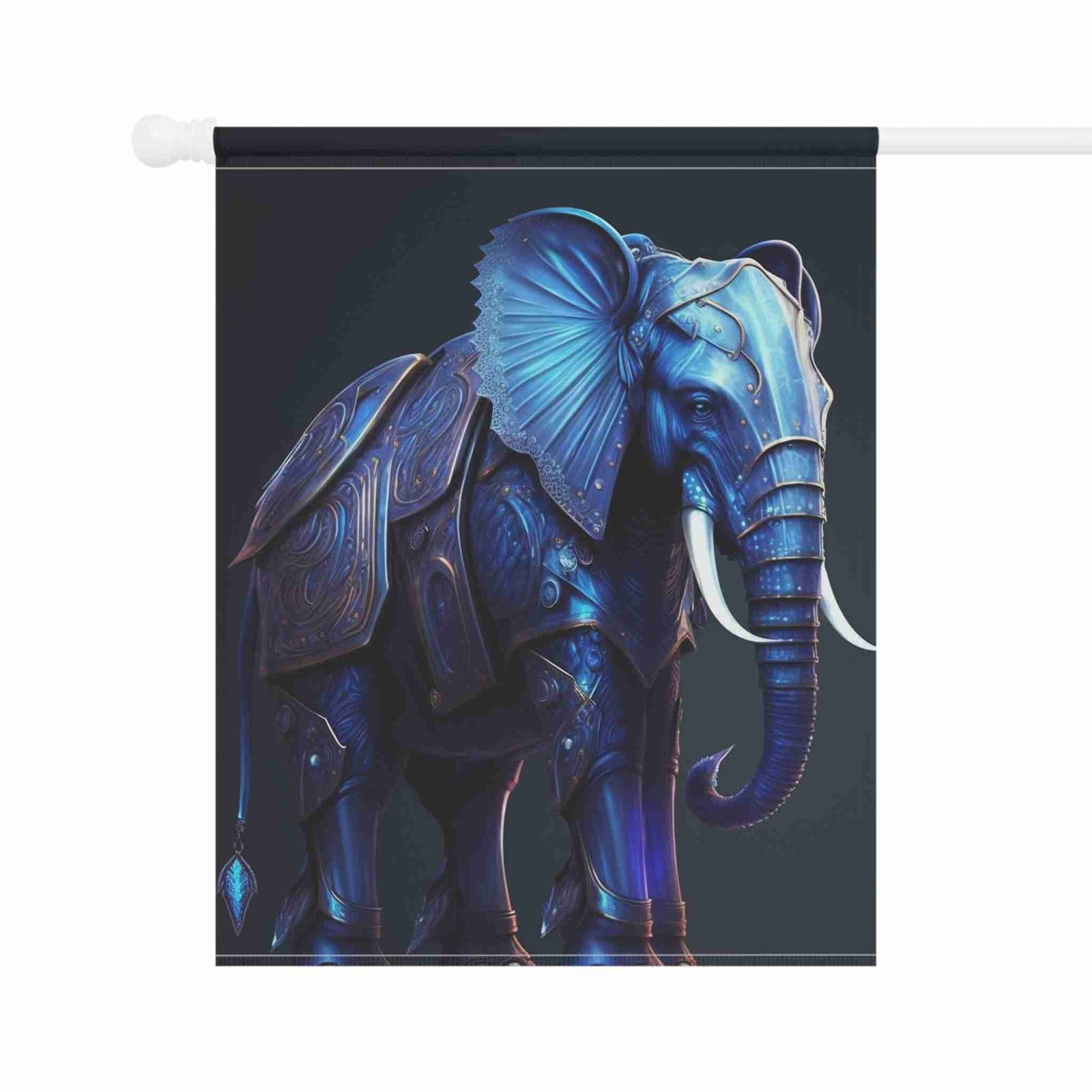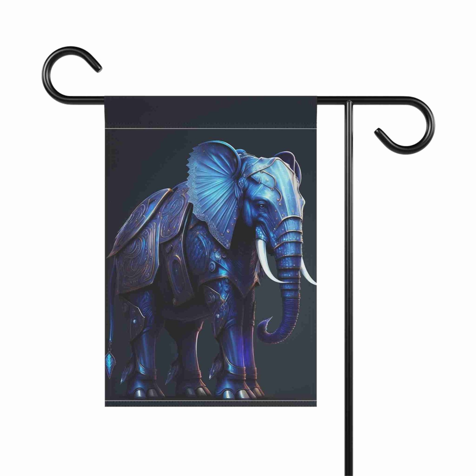 Unleash Majestic Serenity with the Blue Armor Elephant Garden Flag!