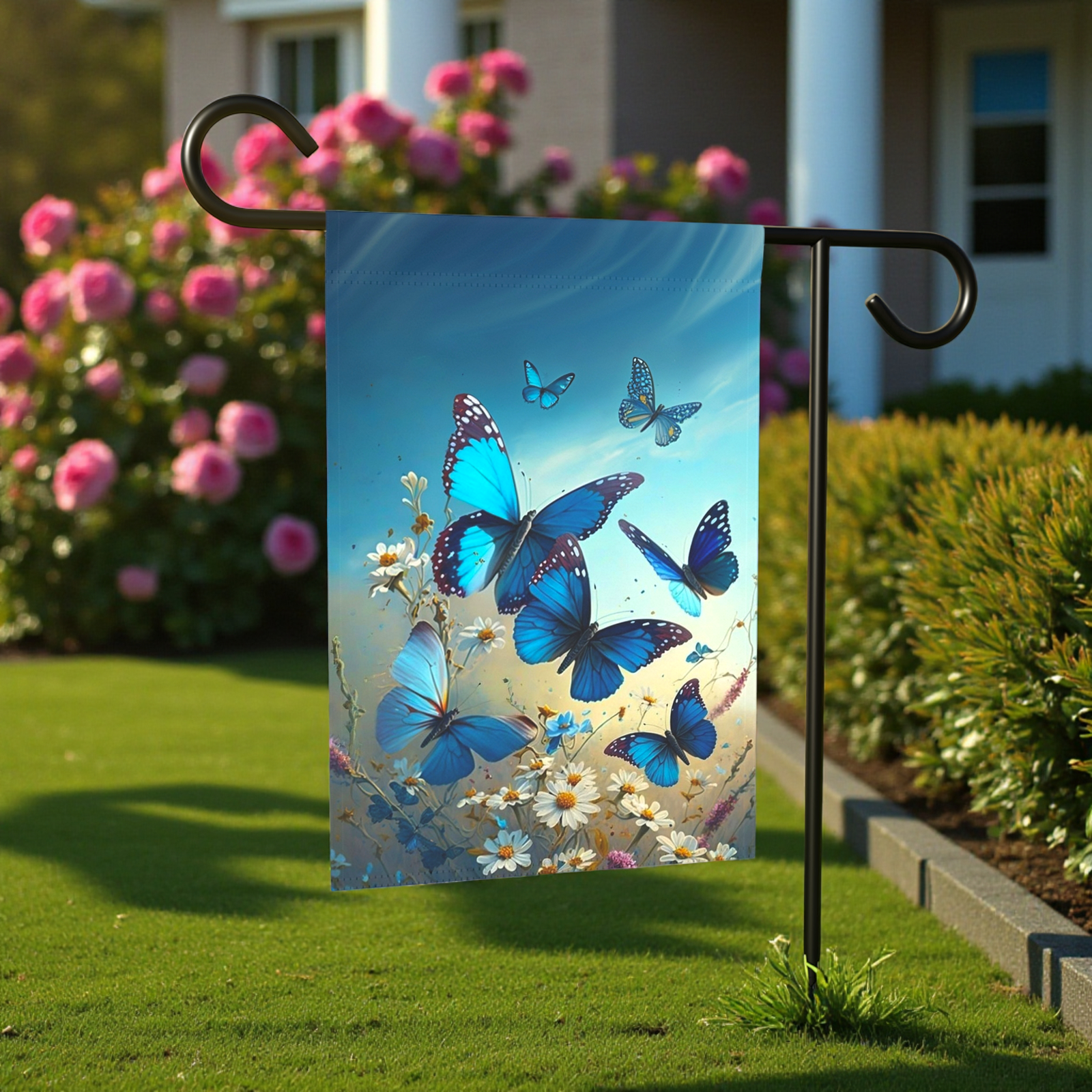 Transform your outdoor space into a breathtaking sanctuary of color and natural beauty with our stunning Blue Butterflies and Daisies Garden Flag! This isn’t just a banner; it’s a vibrant declaration of springtime’s arrival and summer’s charm, meticulously crafted to bring an unforgettable pop of personality and joy to your garden or home. Imagine delicate blue butterflies dancing among a cascade of cheerful daisies, all brought to life with brilliant, eye-popping colors that will create a lively, welcoming atmosphere for everyone to enjoy.