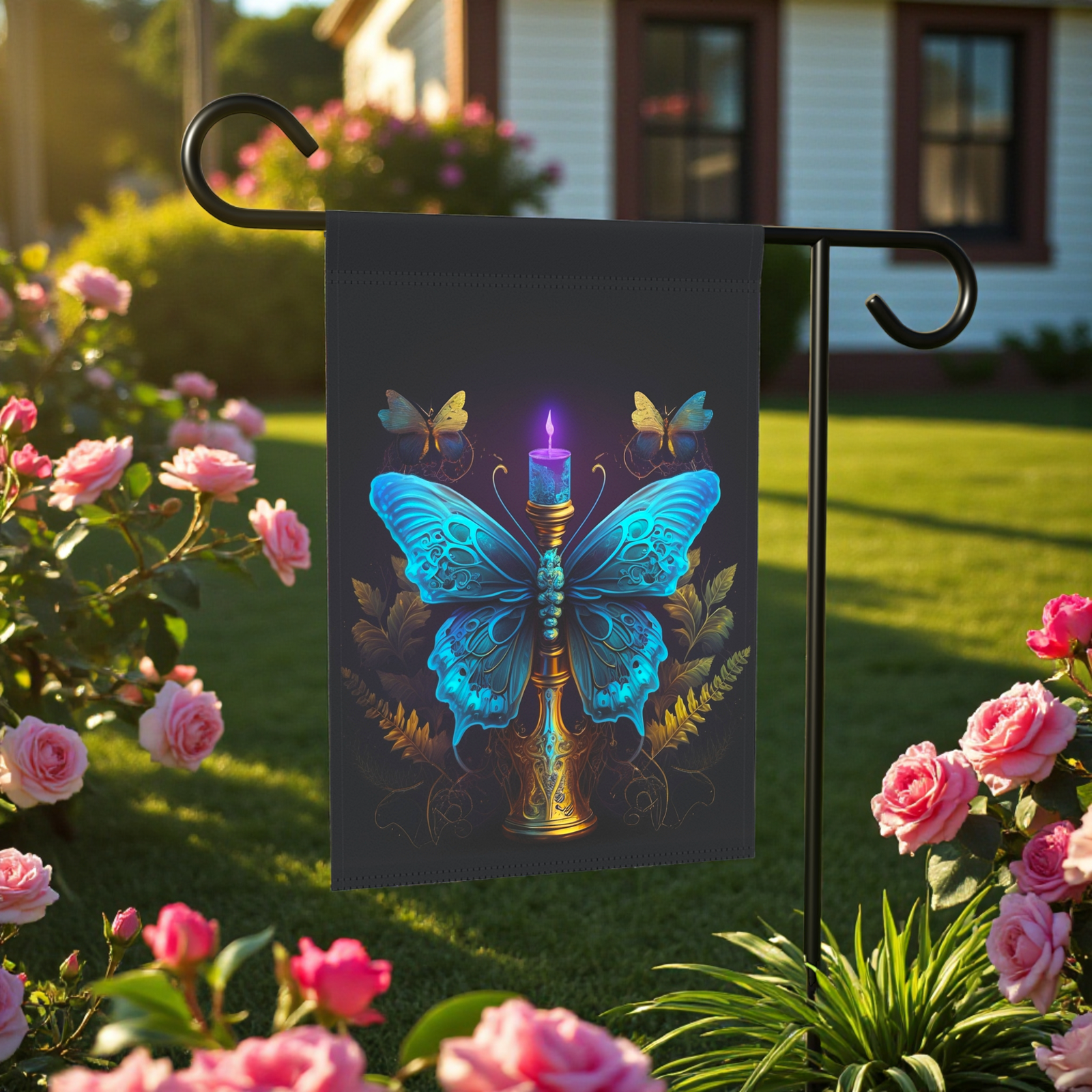 Light Up Your Garden with the Blue Butterfly Candle Garden Flag!