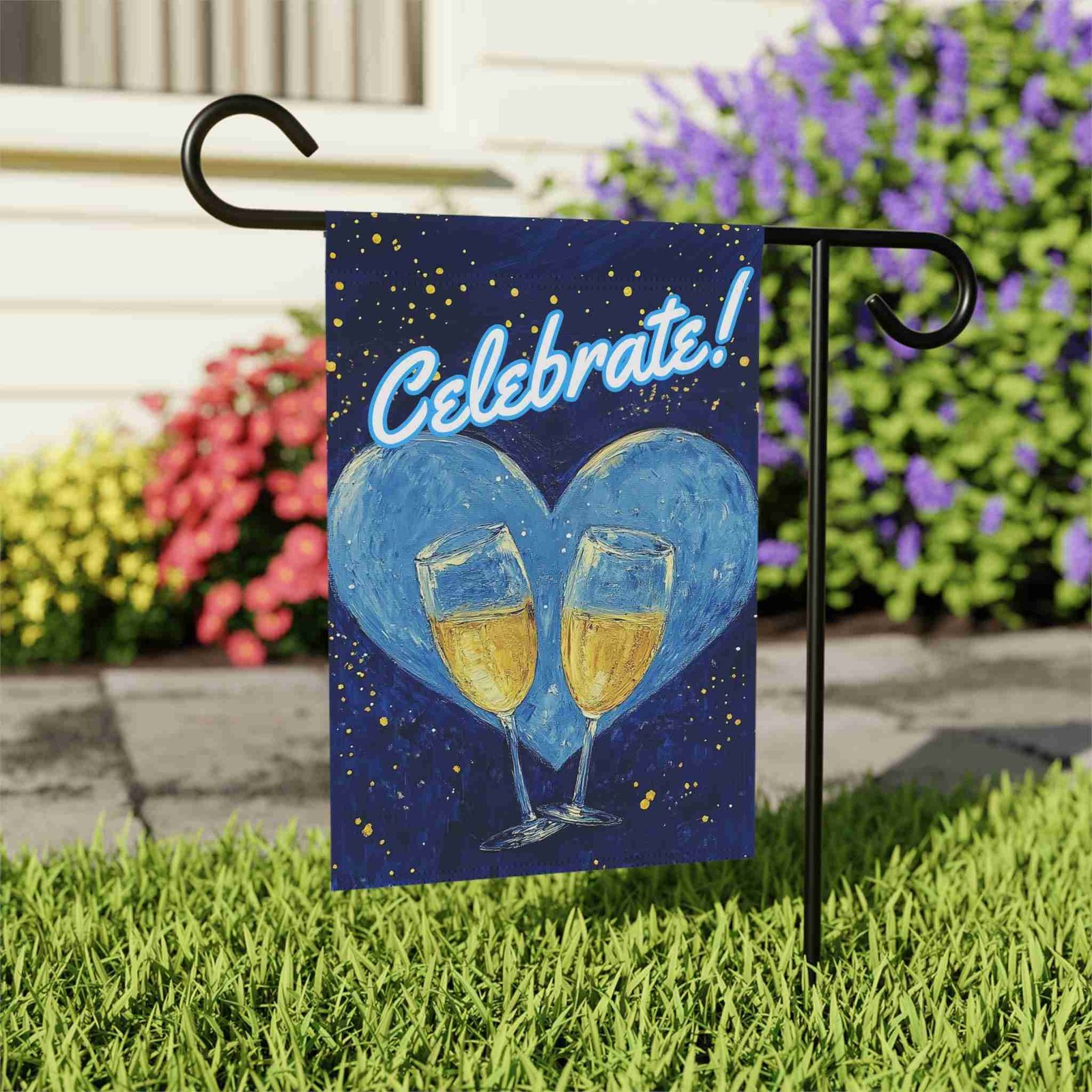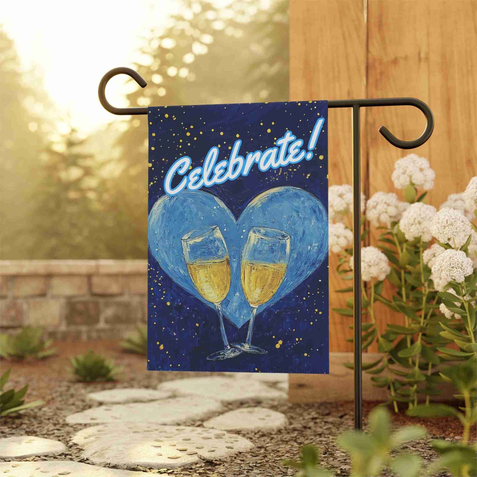 Celebrate in Style with the Blue Heart Champagne Garden Flag!