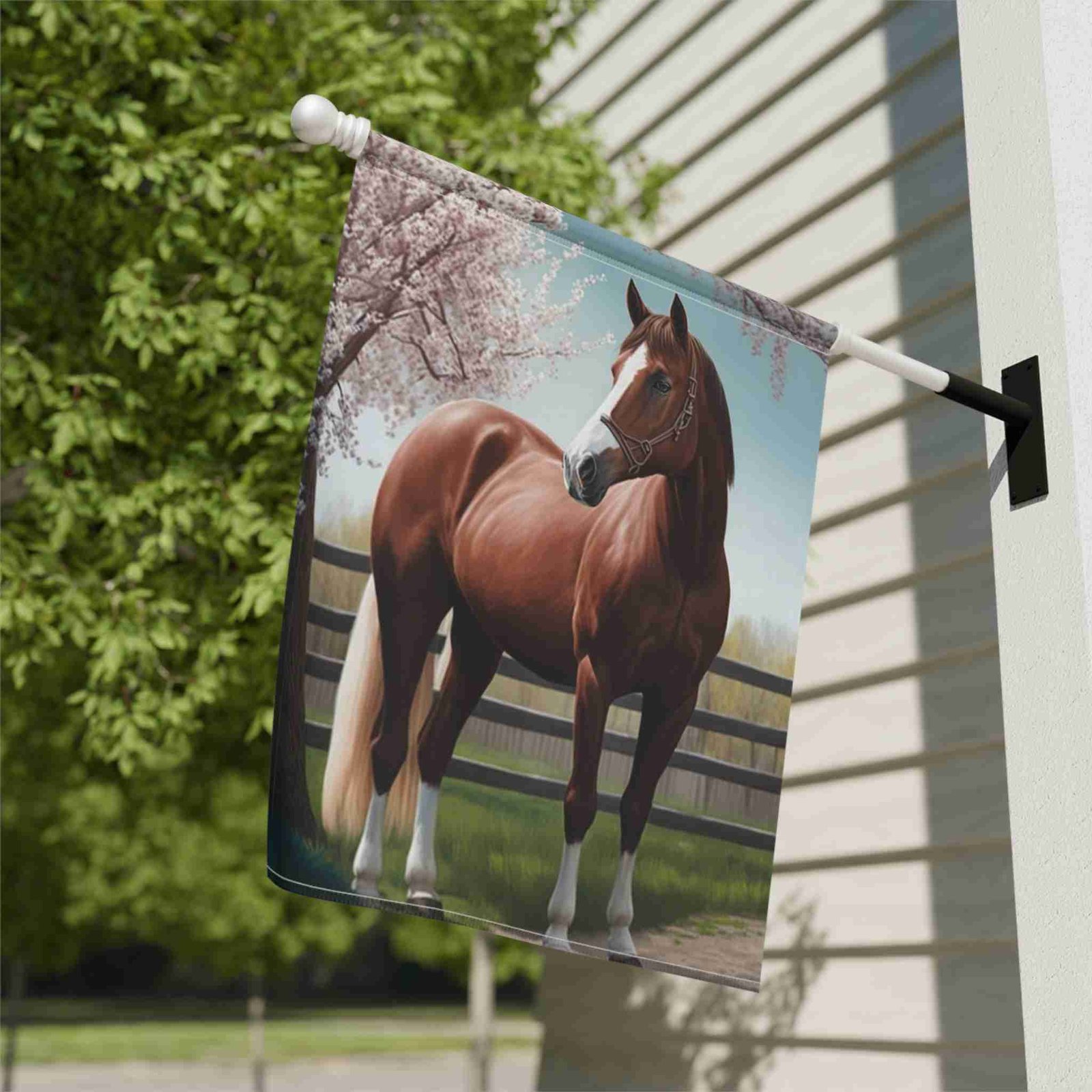 Colors That Bloom with Life: Our advanced printing techniques ensure vibrant, crisp colors that truly bring the majestic brown horse and delicate cherry blossoms to life, guaranteeing your flag stays bright and eye-catching.