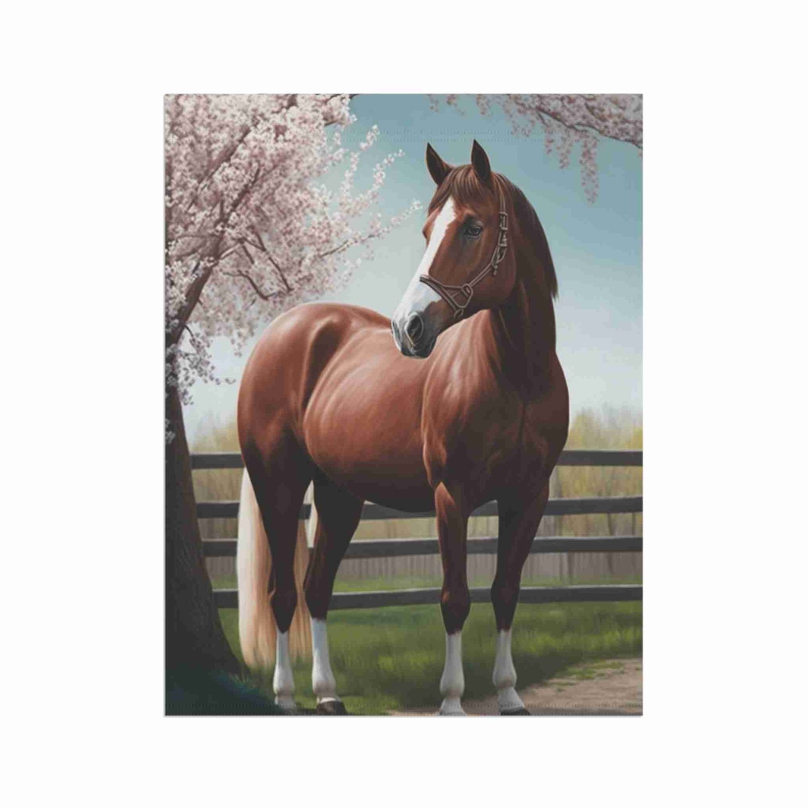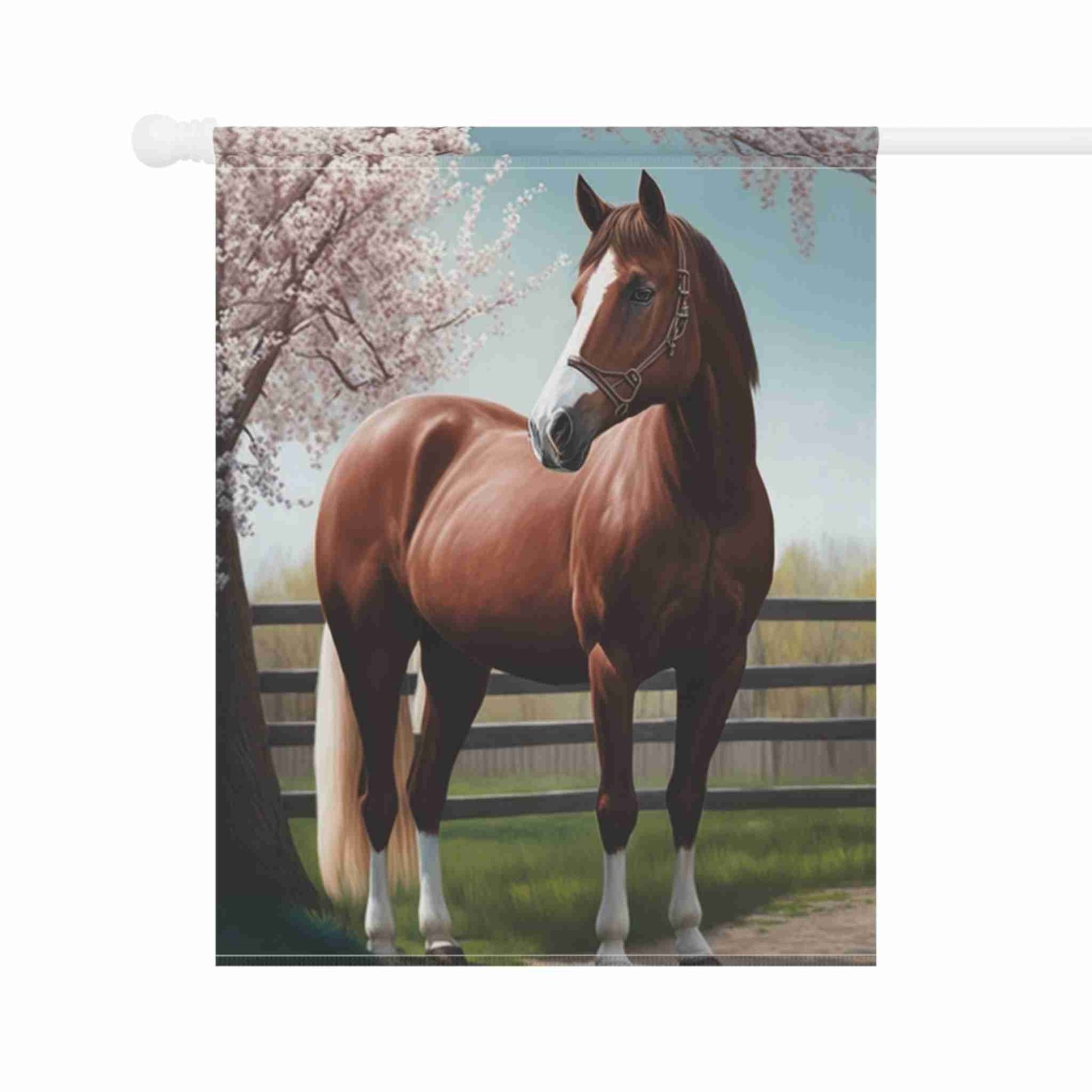 Enhance your outdoor space with a breathtaking blend of rustic elegance and delicate natural beauty! Our Brown Horse and Cherry Blossoms Garden Flag isn’t just a banner; it’s a stunning declaration of charm and personality, guaranteed to bring a vibrant pop of color and serene grace to your garden or yard. Imagine a magnificent brown horse, standing peacefully amidst a shower of delicate cherry blossoms, all brought to life with brilliant, crisp colors that will instantly brighten any area and create an atmosphere of inviting warmth.