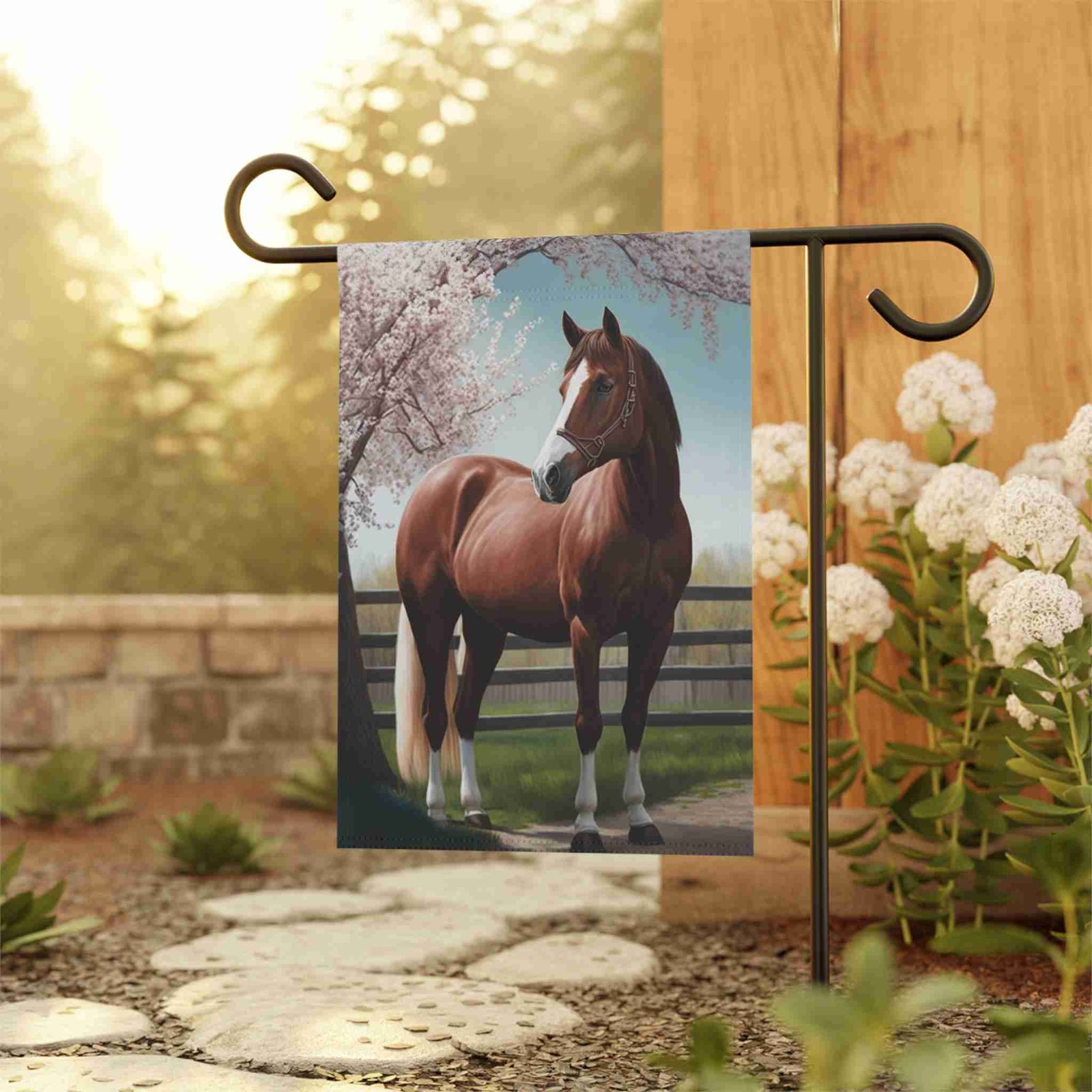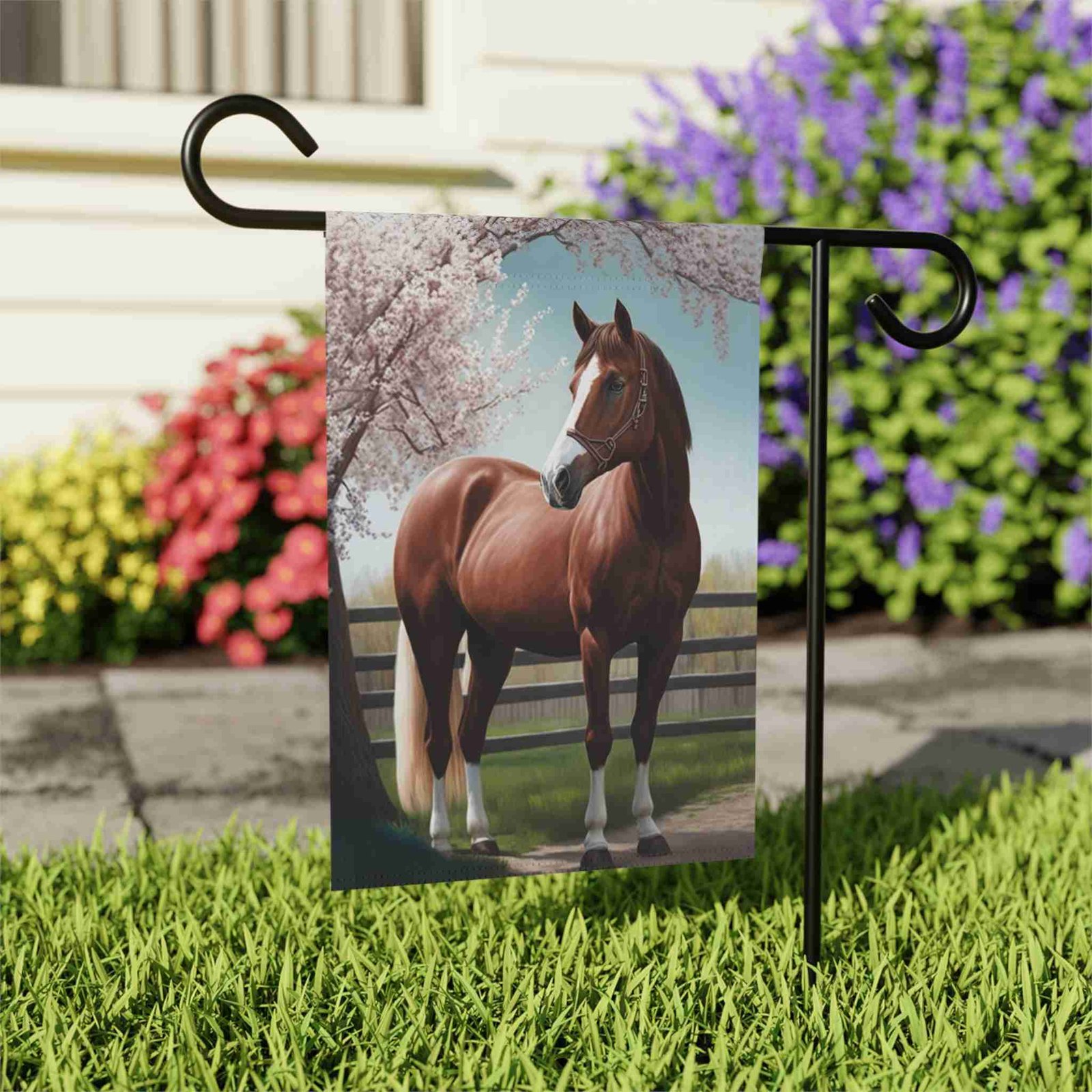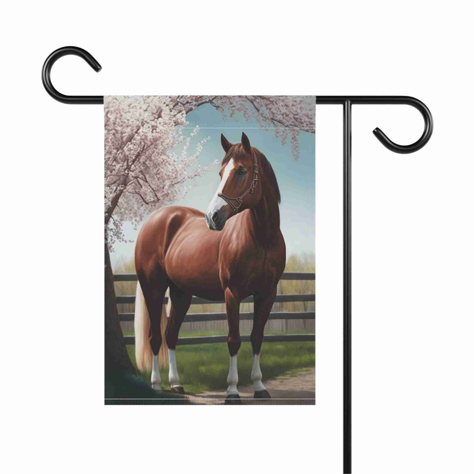 Gallop Into Beauty with the Brown Horse and Cherry Blossoms Garden Flag!