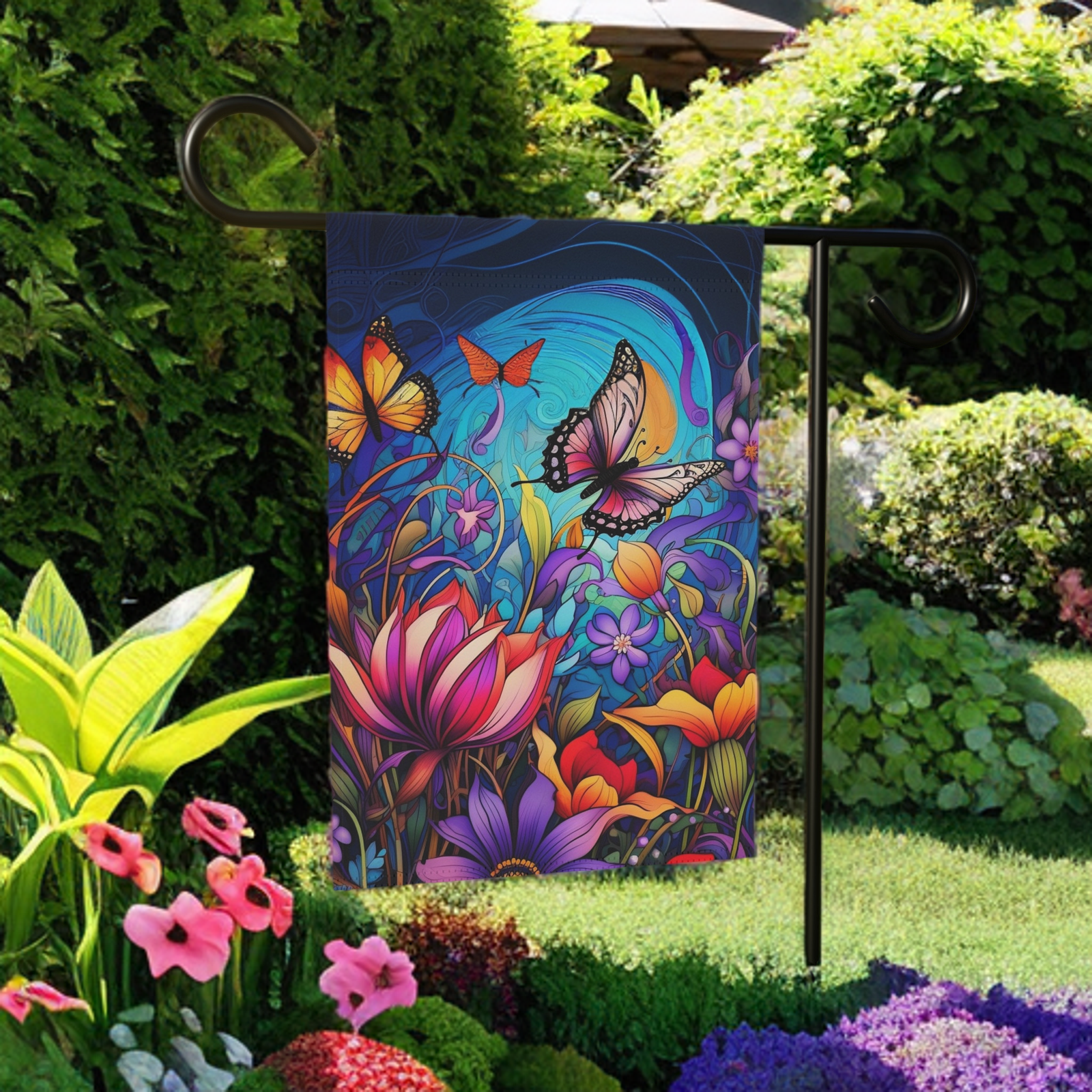 Beauty from Every Angle: The stunning design is printed on BOTH sides, ensuring beautiful visibility and enhancing your decor from all angles, making your outdoor space a delight from every perspective.