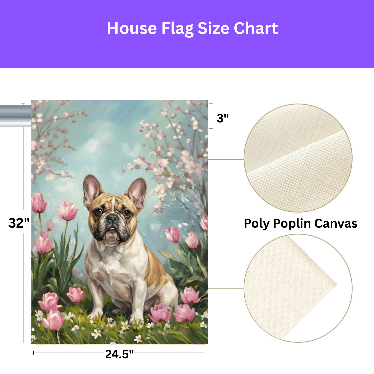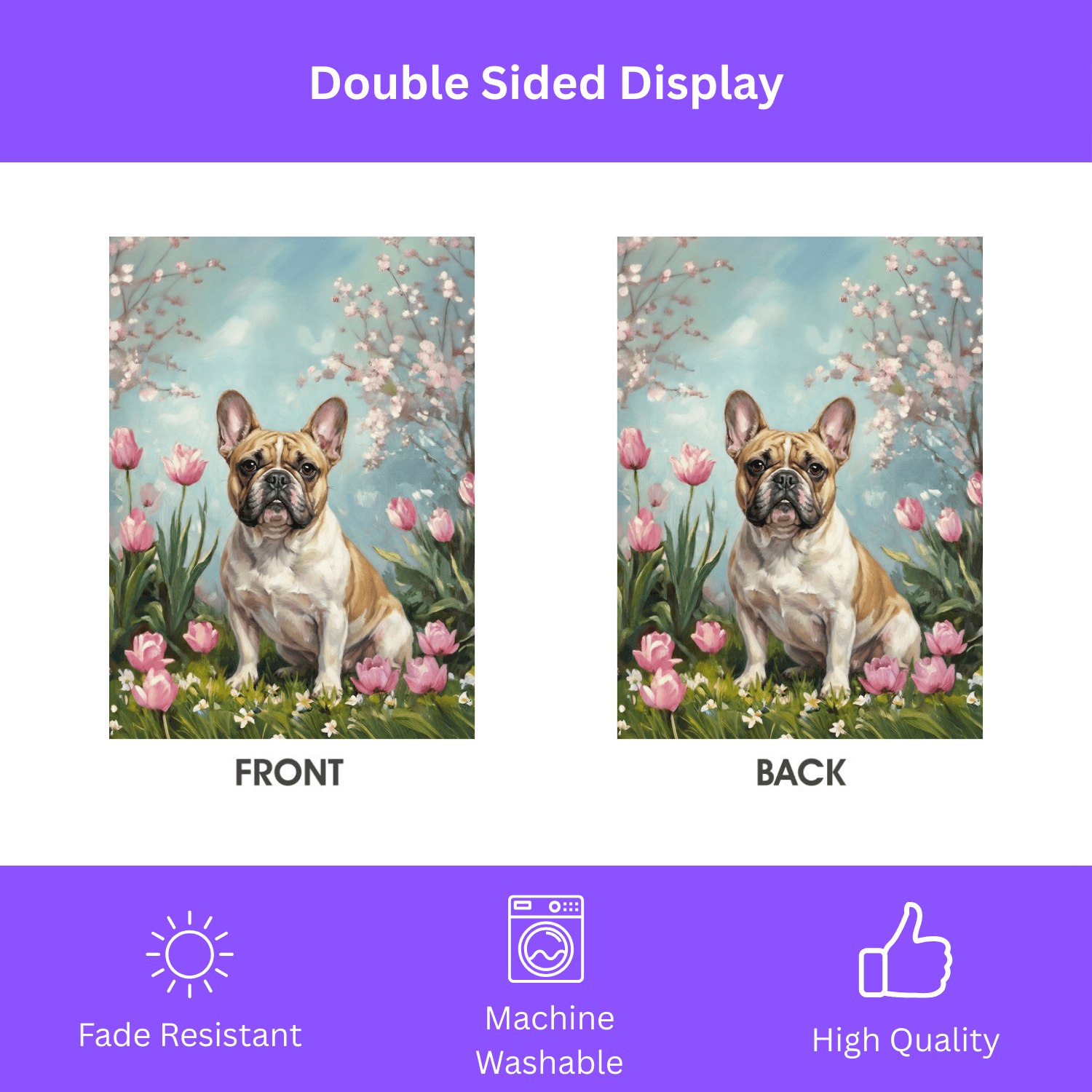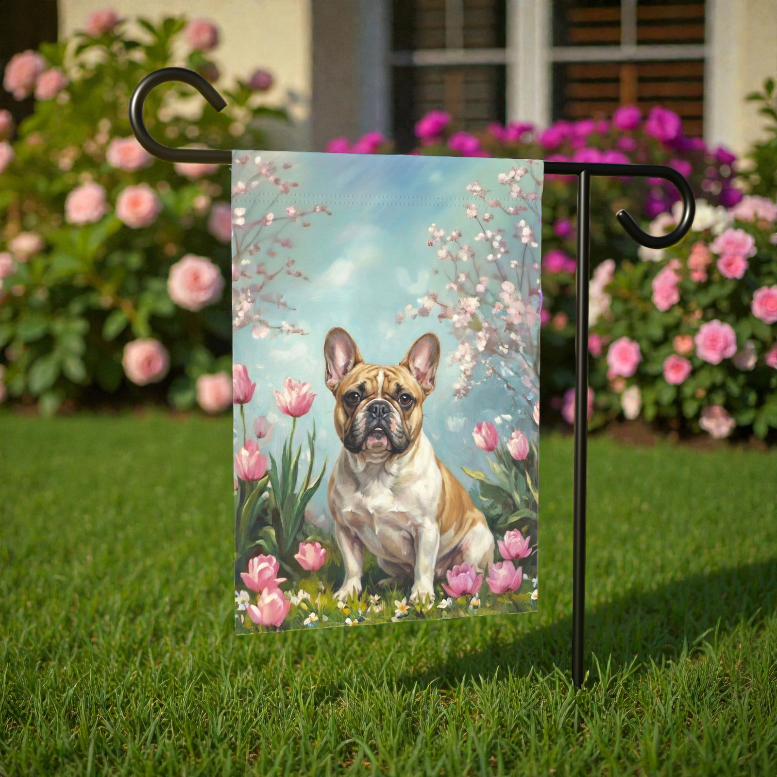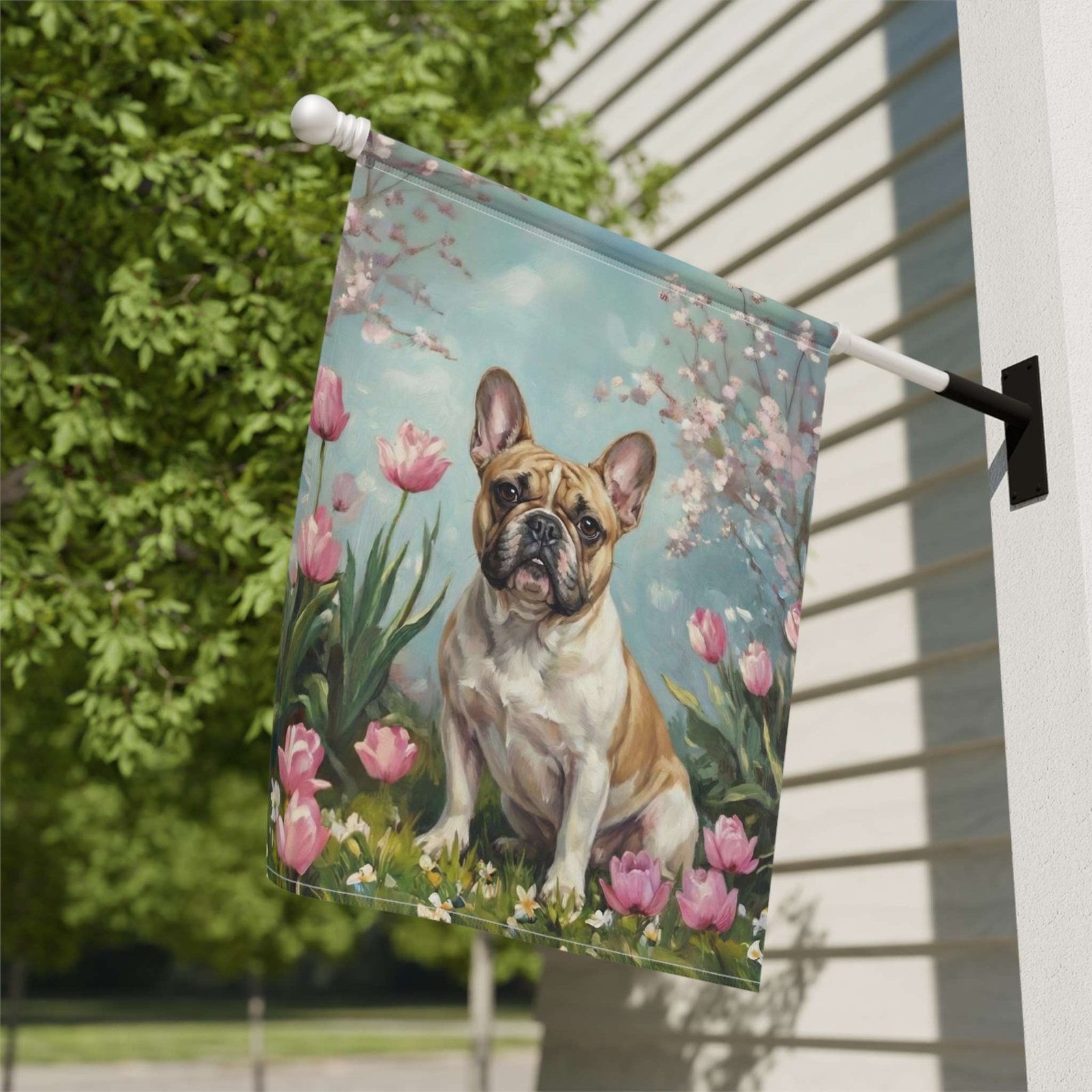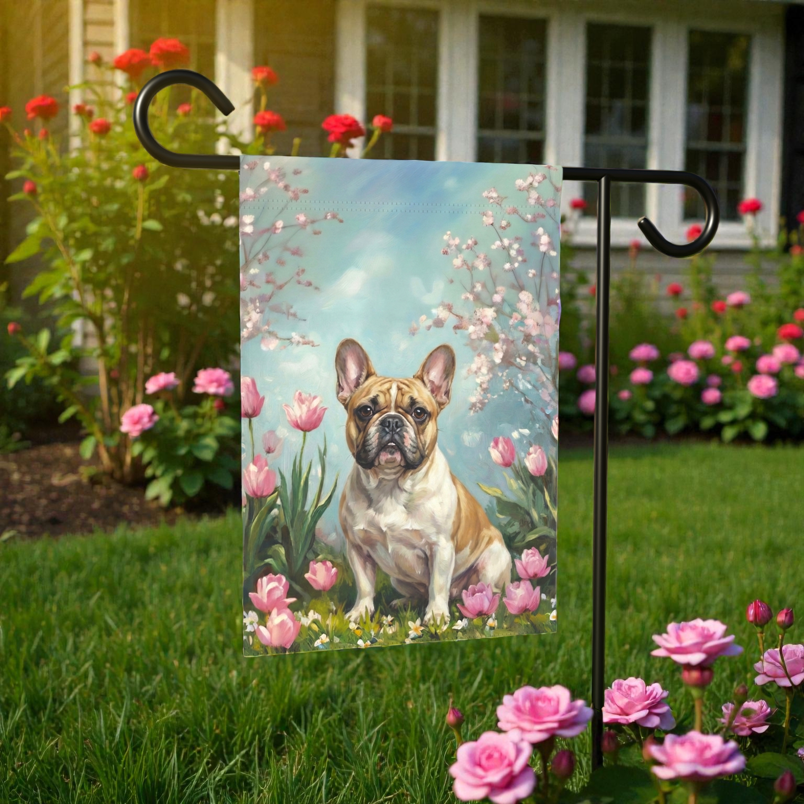 You’ve found it with the French Bulldog in the Tulips Spring Garden Flag. This isn’t just a banner; it’s a painterly escape that celebrates the small, precious moments—like morning coffee on the stoop or watching your pup explore the garden. Imagine your guests walking up your path and seeing this: your noble Frenchie sitting peacefully among a sea of vibrant pink tulips and delicate blossoms. Against a gentle sky-blue backdrop, this scene feels like a quiet morning stroll captured on fabric, adding an artful, “cottagecore” charm to your flower beds, porch, or entryway.
