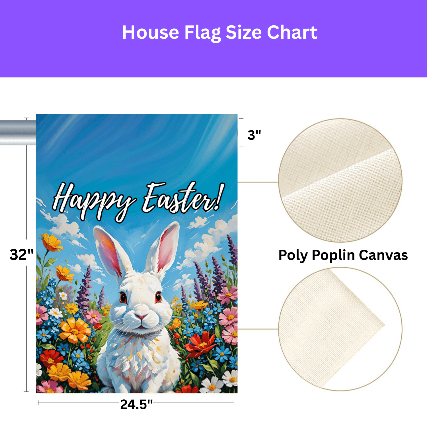 To keep your Easter bunny flag looking fresh and festive, simply wipe clean with a soft, damp cloth.