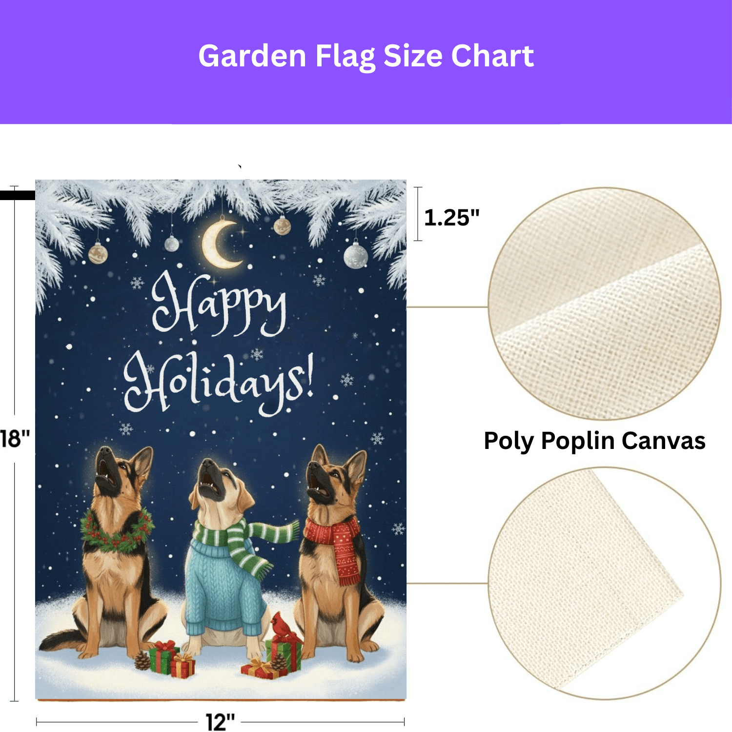 Made from premium, durable 100% poly poplin-canvas fabric, this flag is built to handle the winter weather while keeping its vibrant, high-resolution colors brilliant season after season. Thanks to the double-sided printing, the delightful imagery is visible and sharp from every angle, ensuring its joy is never missed. With two sizes available, you can find the perfect fit to accent your entryway or garden.