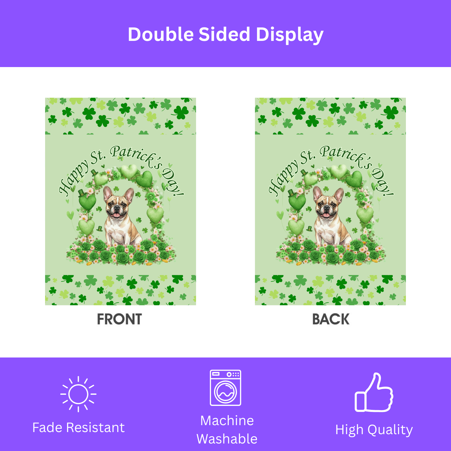 The Happy St. Patrick’s Day Arch French Bulldog Garden Flag is a masterpiece of festive whimsy. Imagine your guests’ delight as they see this: your dapper little friend sitting peacefully against a dreamy mint-green backdrop, surrounded by a lush field of emerald shamrocks. With a festive garland of green hearts and a cheerful “Happy St. Patrick’s Day!” arched above, it transforms your porch, patio, or flower bed into a joyful sanctuary. It’s the ultimate way to show the neighborhood that in your house, the “Luck of the Irish” comes with a smashed face and a wagging tail.