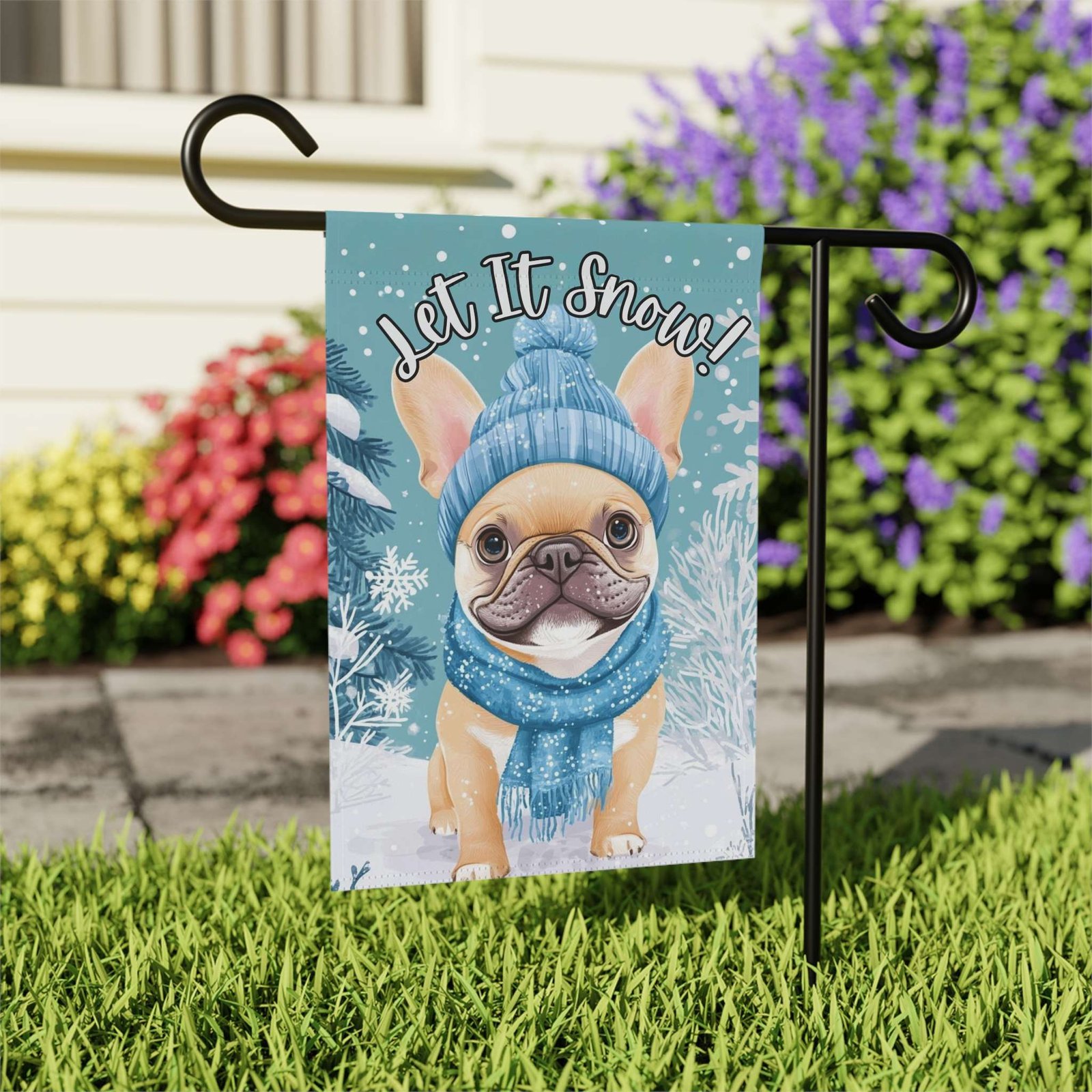 Introducing the “Let It Snow” French Bulldog Winter Garden Flag—the irresistible accent that turns your outdoor space into a picture of cozy, canine-inspired charm. Imagine this: your cheerful Frenchie, bundled up in adorable winter gear, happily greeting guests amidst a lovely snowfall. It’s a whimsical, heartfelt scene that brings a jolly, welcoming vibe to your porch, garden, or entryway all season long.