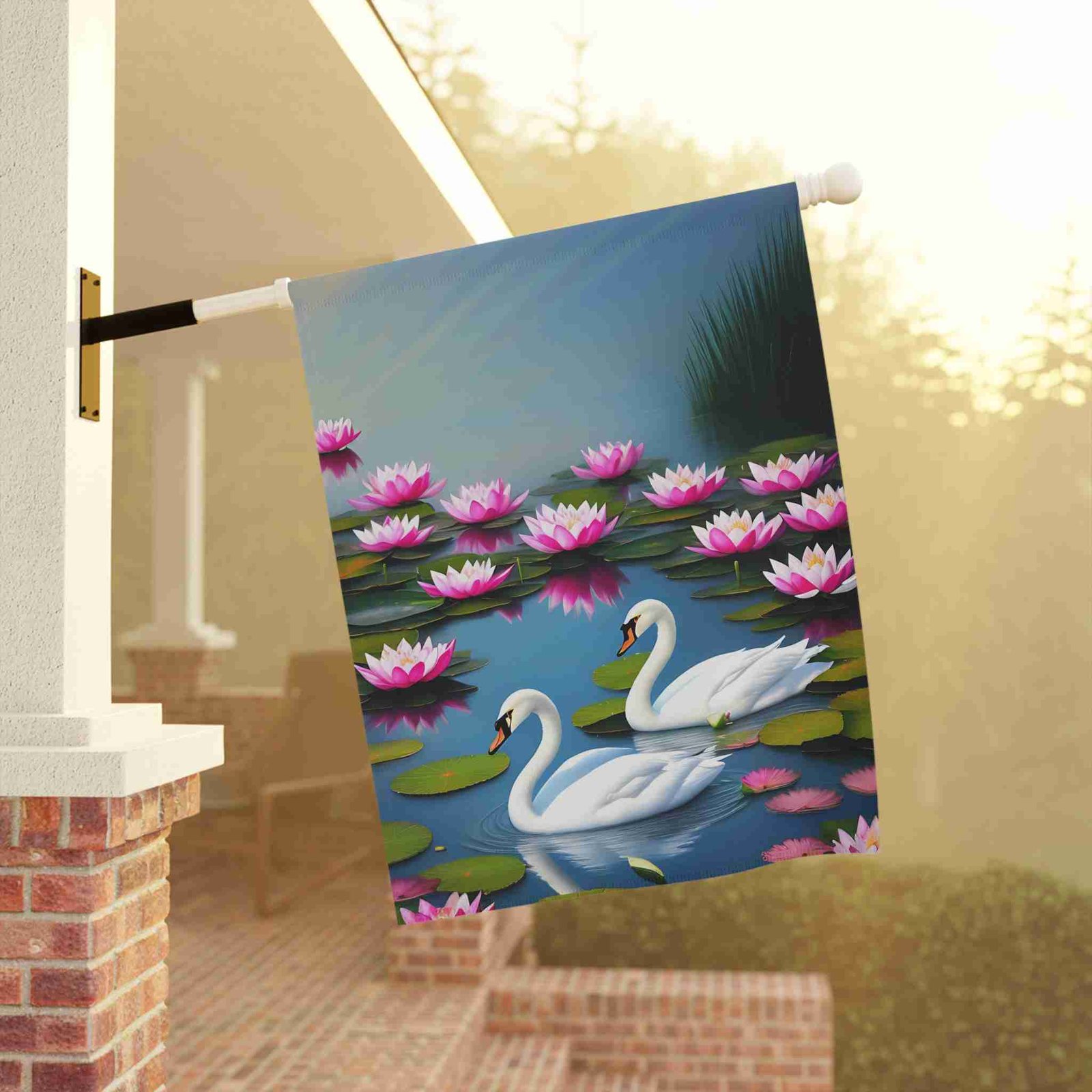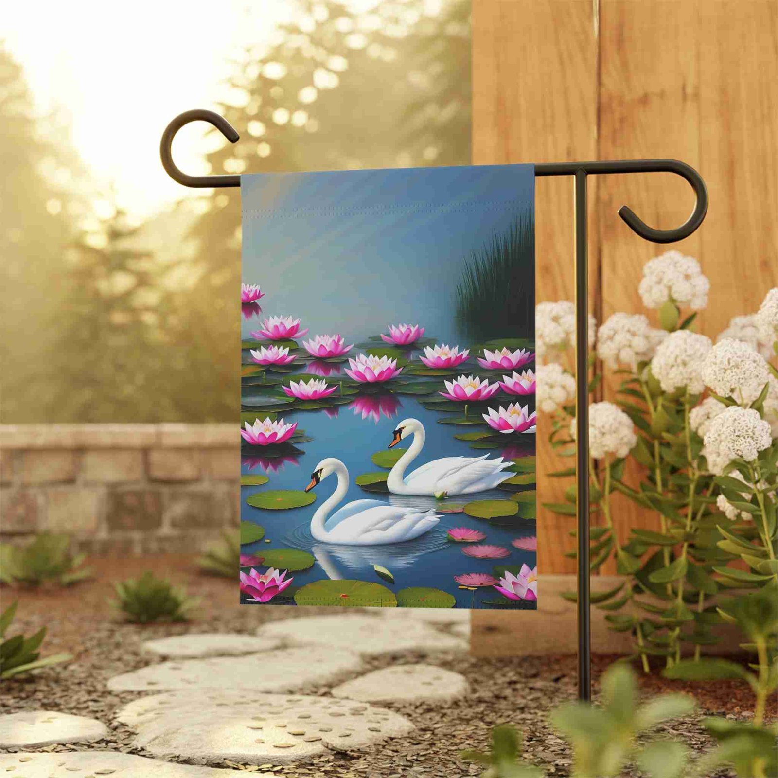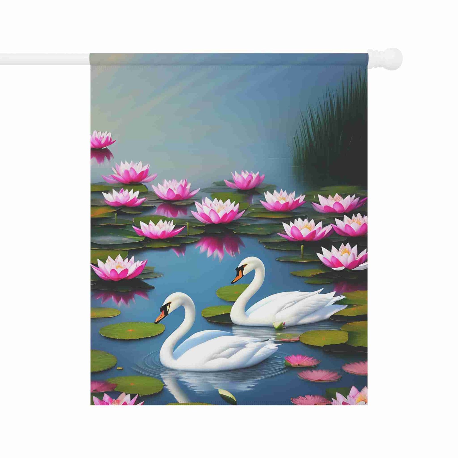 Unleash Serene Beauty with the Lotus Flower Swan Garden Flag!