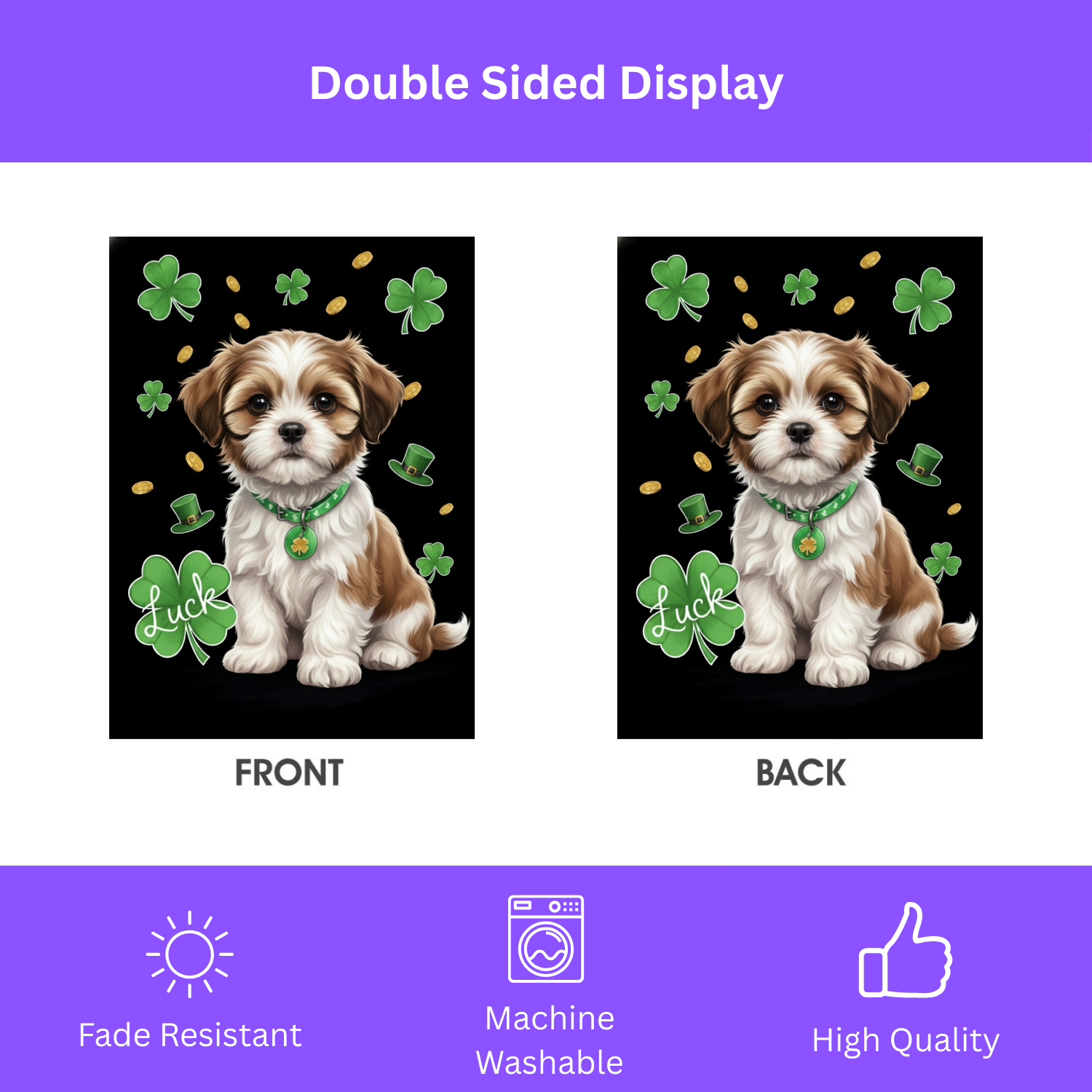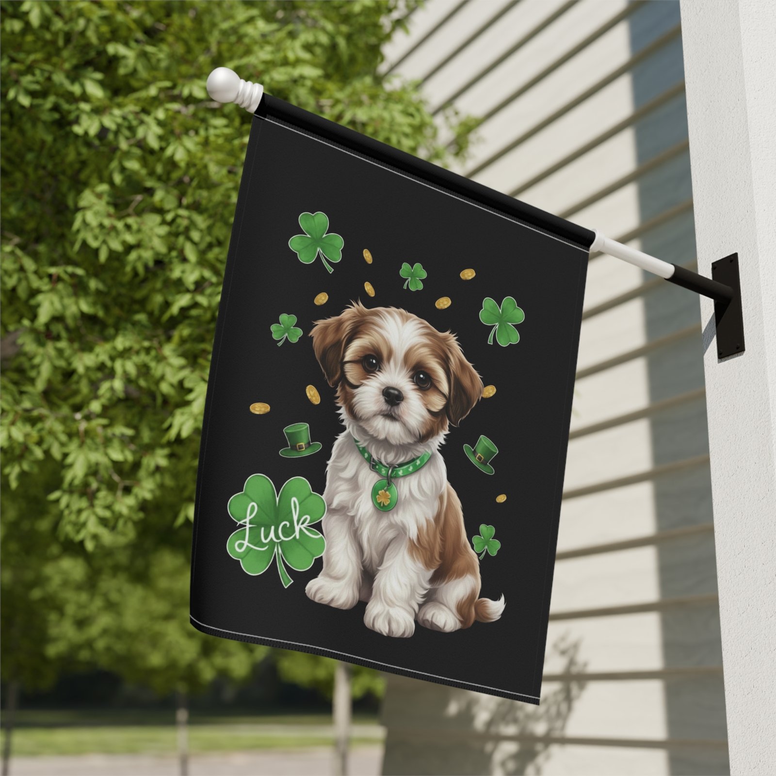 The Luck Shih Tzu St. Patrick’s Day Garden Flag is a masterpiece of festive whimsy. Imagine your guests’ delight as they see this: your dapper little friend sitting proudly among a lush field of lucky shamrocks and shimmering gold coins. It transforms your porch, patio, or flower bed into a joyful sanctuary that feels both homey and high-end. It’s the ultimate way to show the neighborhood that in your house, the “Luck of the Irish” starts with a wagging tail and a heart of gold.