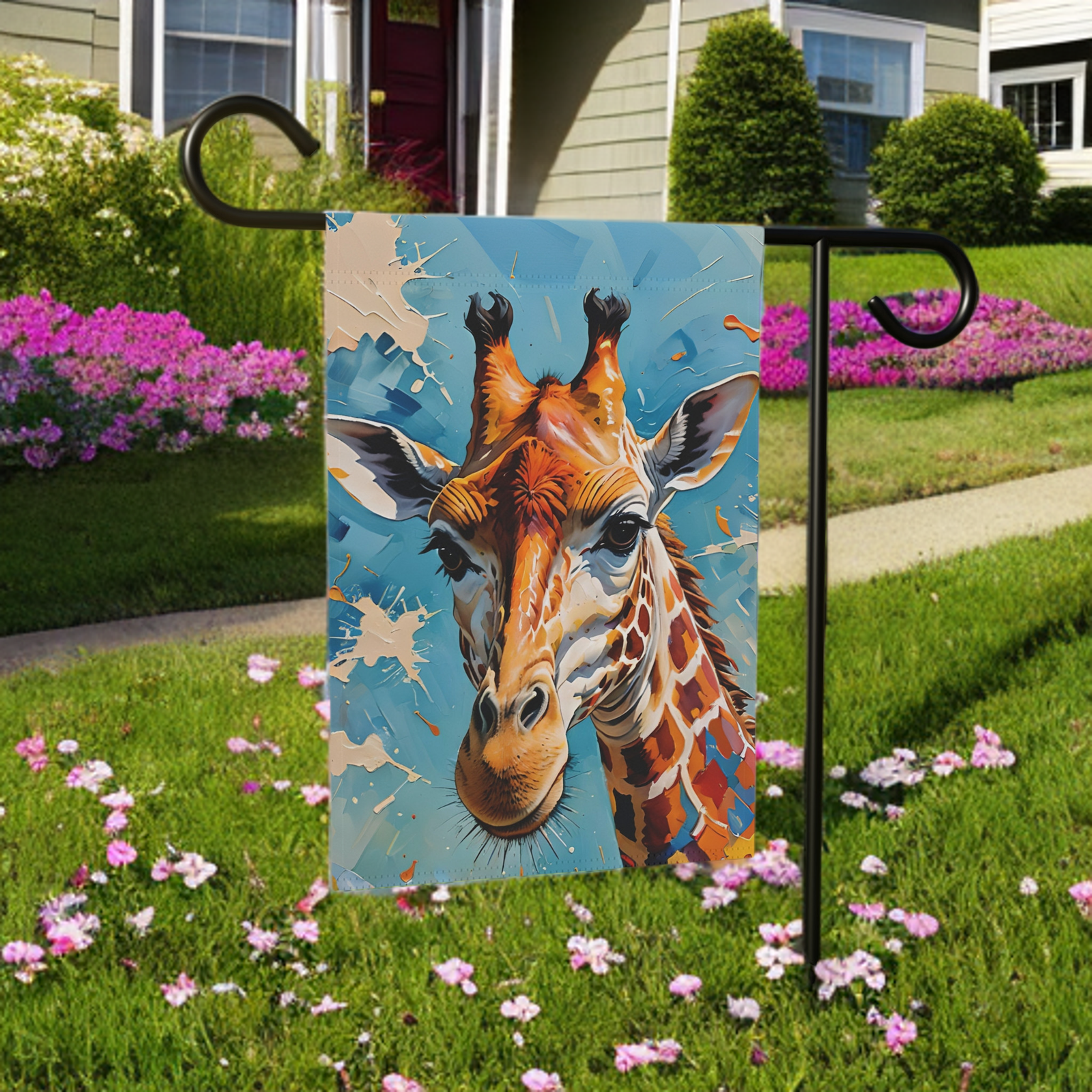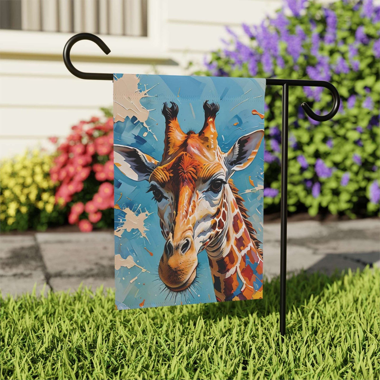 Elevate Your Space with the Painted Giraffe Garden Flag!