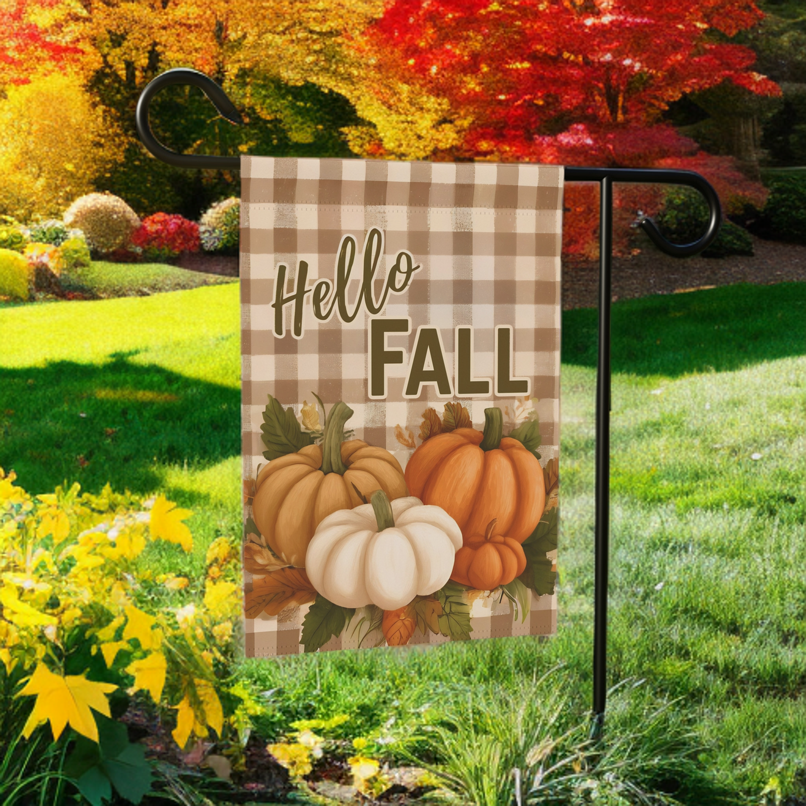 You’ve found it with the Plaid “Hello Fall” Garden Flag. This isn’t just a banner; it’s an instant dose of seasonal charm! Imagine your friends and family being greeted by this beautifully rich scene—classic plaid borders framing a warm “Hello Fall” message among autumn leaves and pumpkins. It’s the perfect, heartfelt touch that will instantly make your porch, garden, or entryway feel special for Thanksgiving, harvest festivals, and the entire cozy season.
