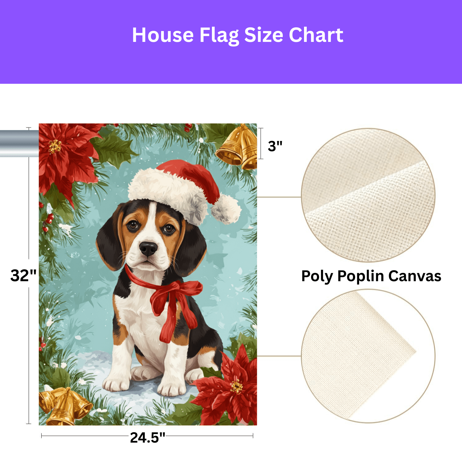 You’ve found it with the Poinsettia and Bells Beagle Christmas Garden Flag. This isn’t just a banner; it’s a statement of holiday cheer and a loving tribute to your furry family member. Imagine your loved ones arriving and being greeted by this beautiful, vibrant scene—your sweet Beagle puppy, sporting a Santa hat and framed by a classic wreath of poinsettias, evergreen sprigs, and golden bells. It’s the perfect way to infuse your garden, porch, or entryway with warmth and personality.