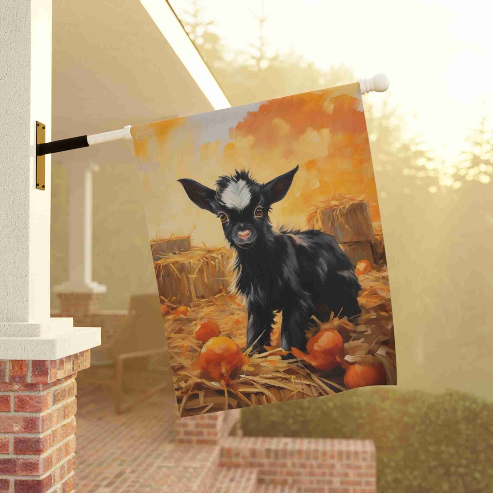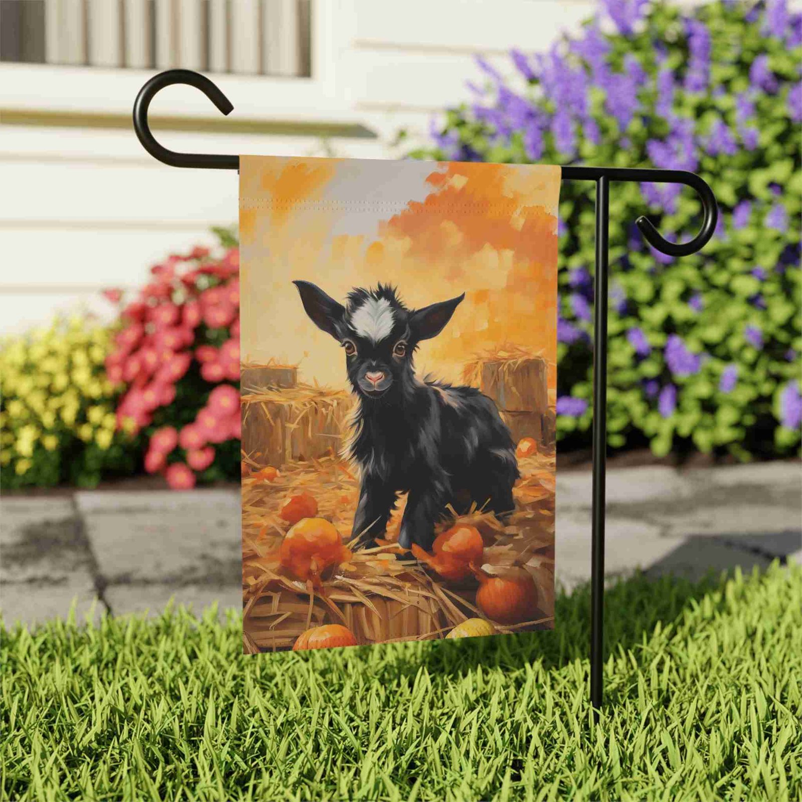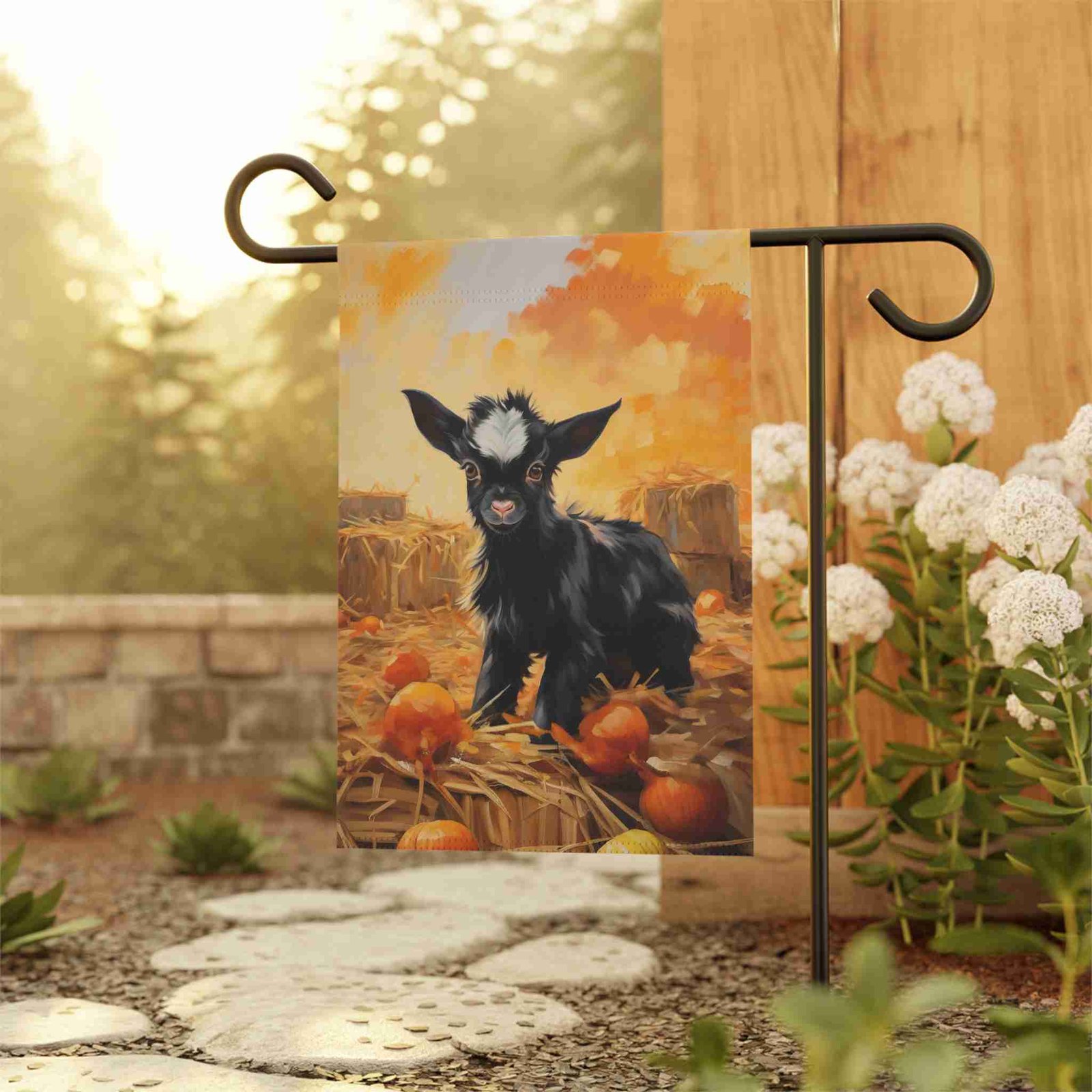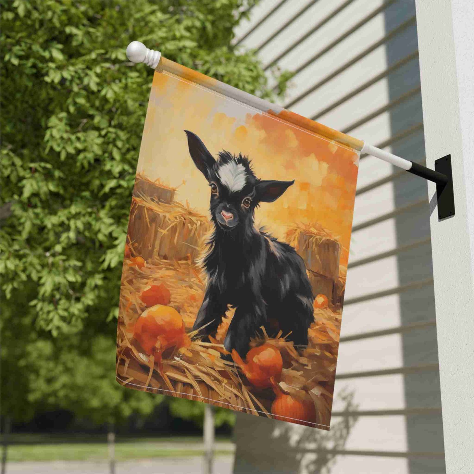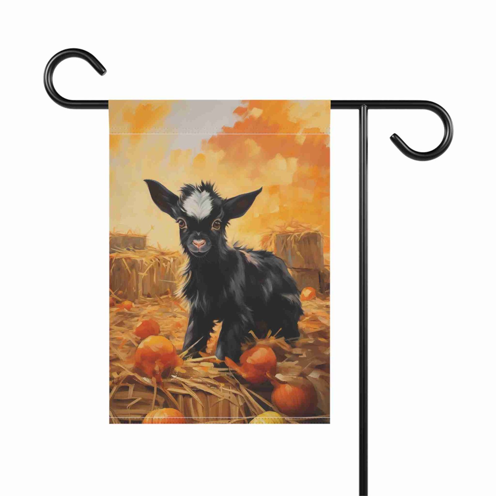 Welcome Autumn Charm with the Pumpkin Patch Baby Goat Garden Flag!