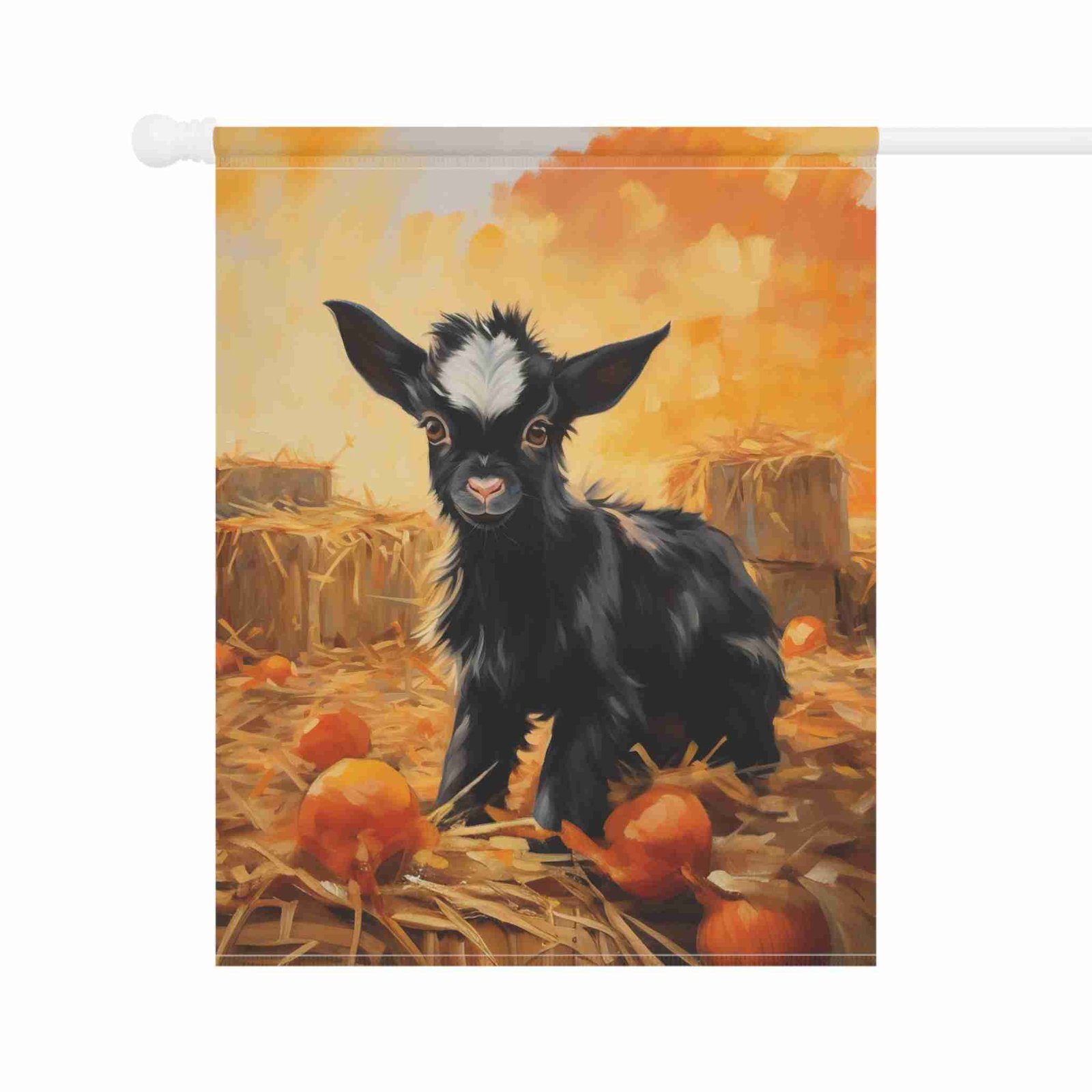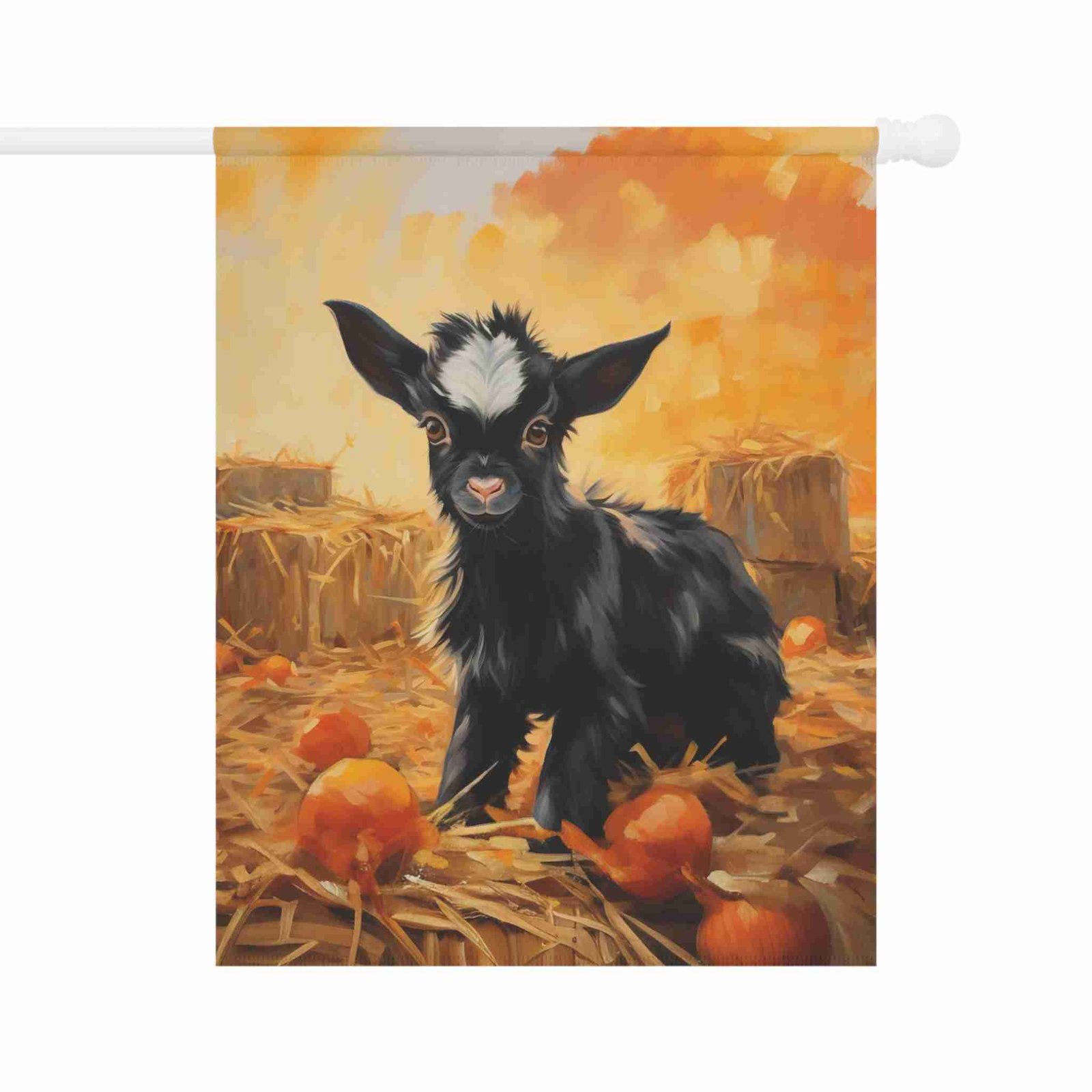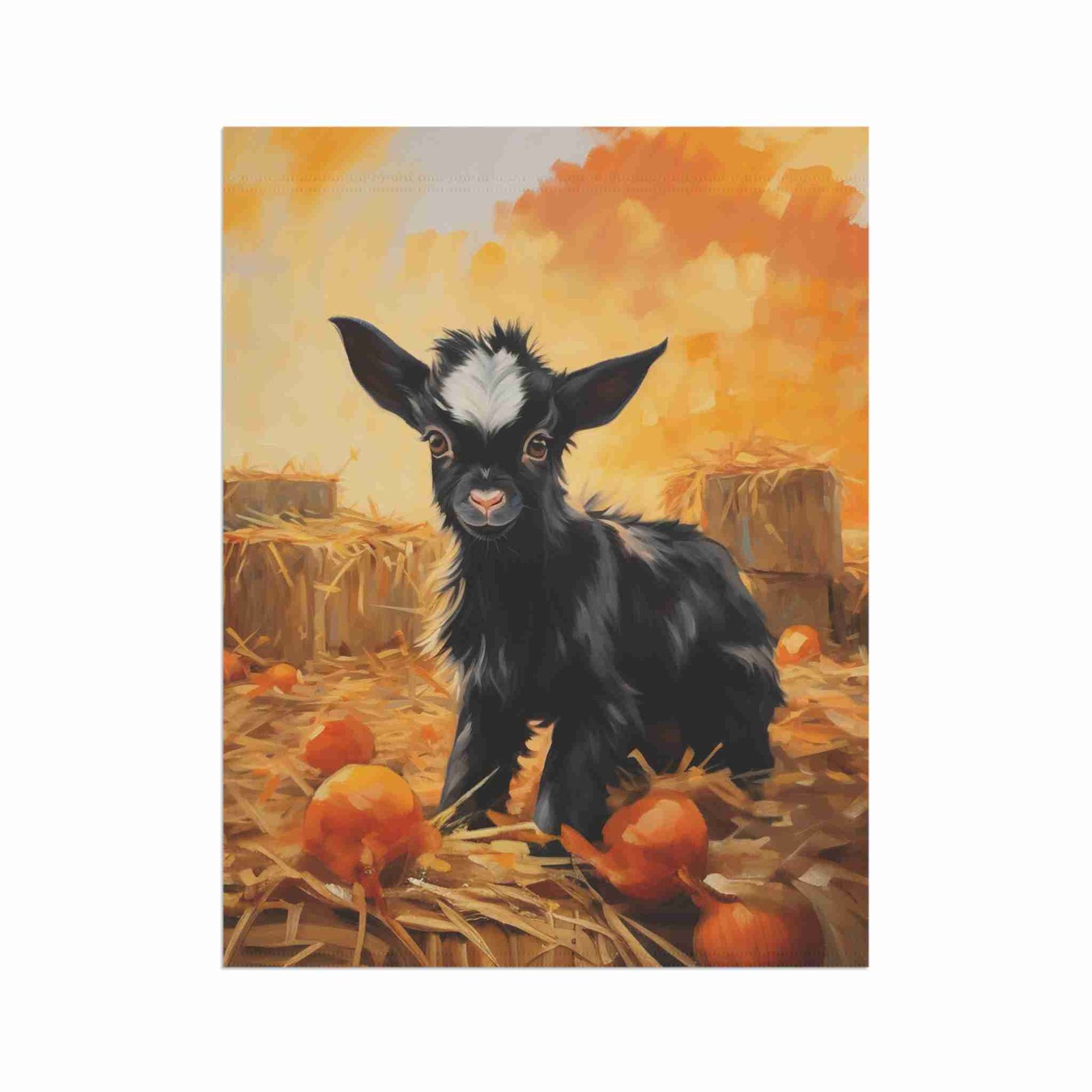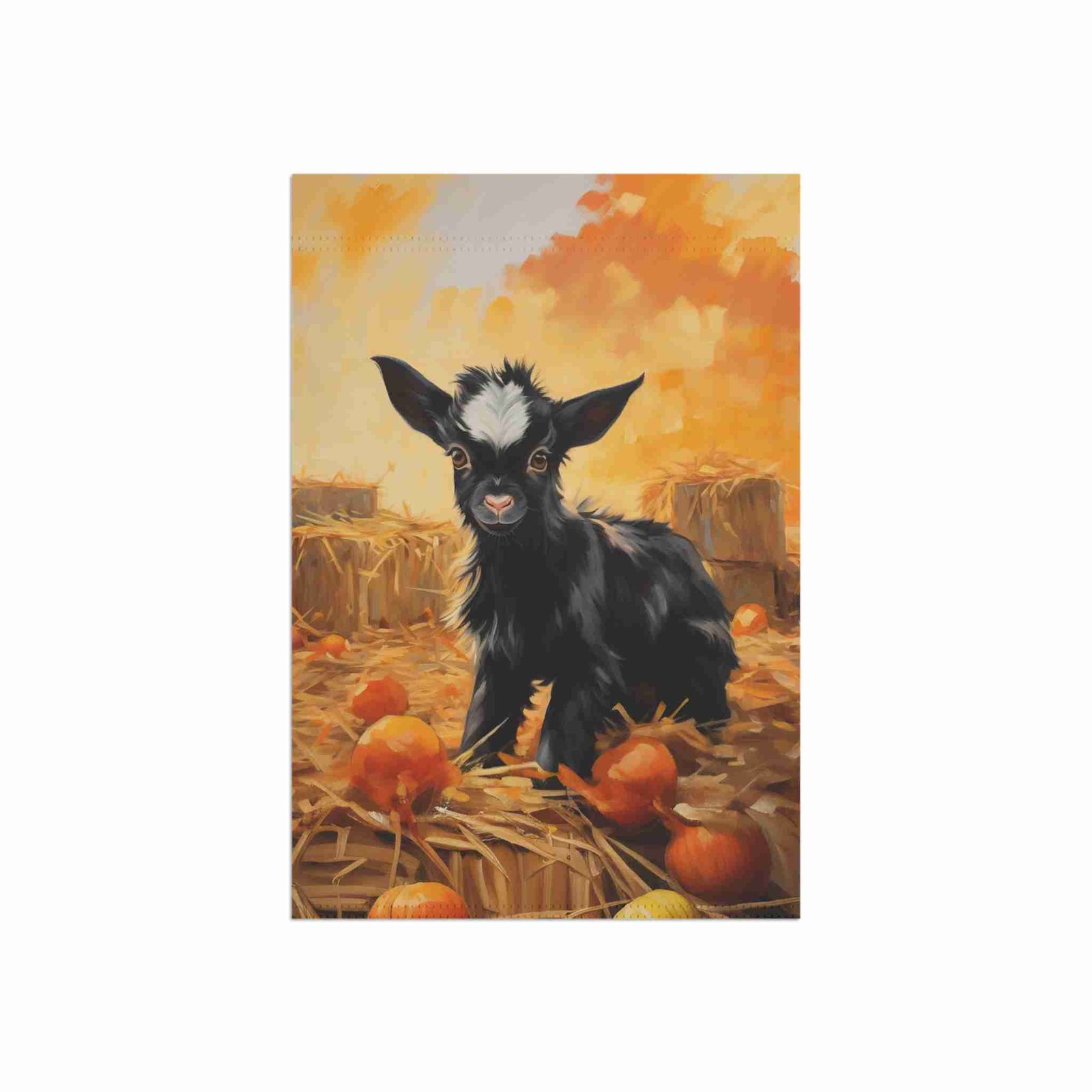 Colors That Captivate: Our advanced printing techniques ensure vibrant, crisp colors that make the adorable baby goat and pumpkin patch scene truly pop, creating an eye-catching display.