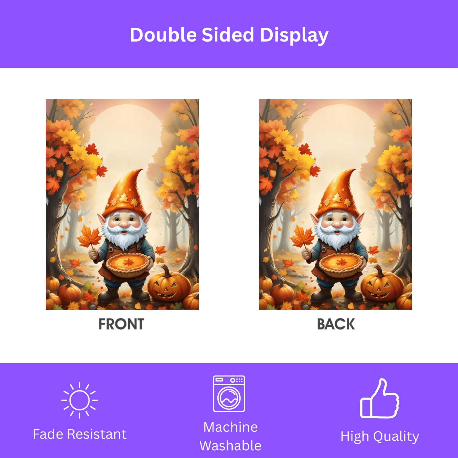 Colors That Radiate Warmth: Our advanced printing techniques ensure vibrant, crisp colors that truly bring the charming gnome and pumpkin pie to life, guaranteeing stunning visuals that stand out.