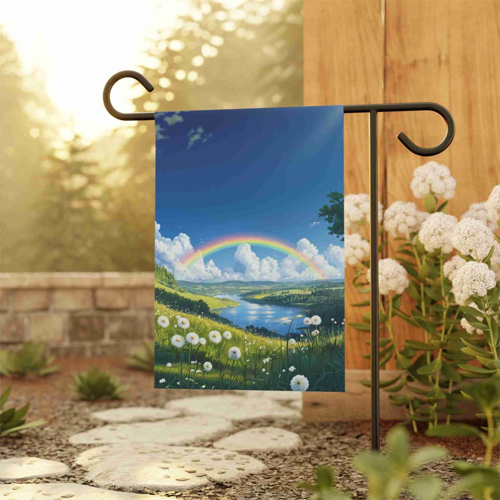 Step into a World of Color with the Rainbow Meadow Garden Flag!