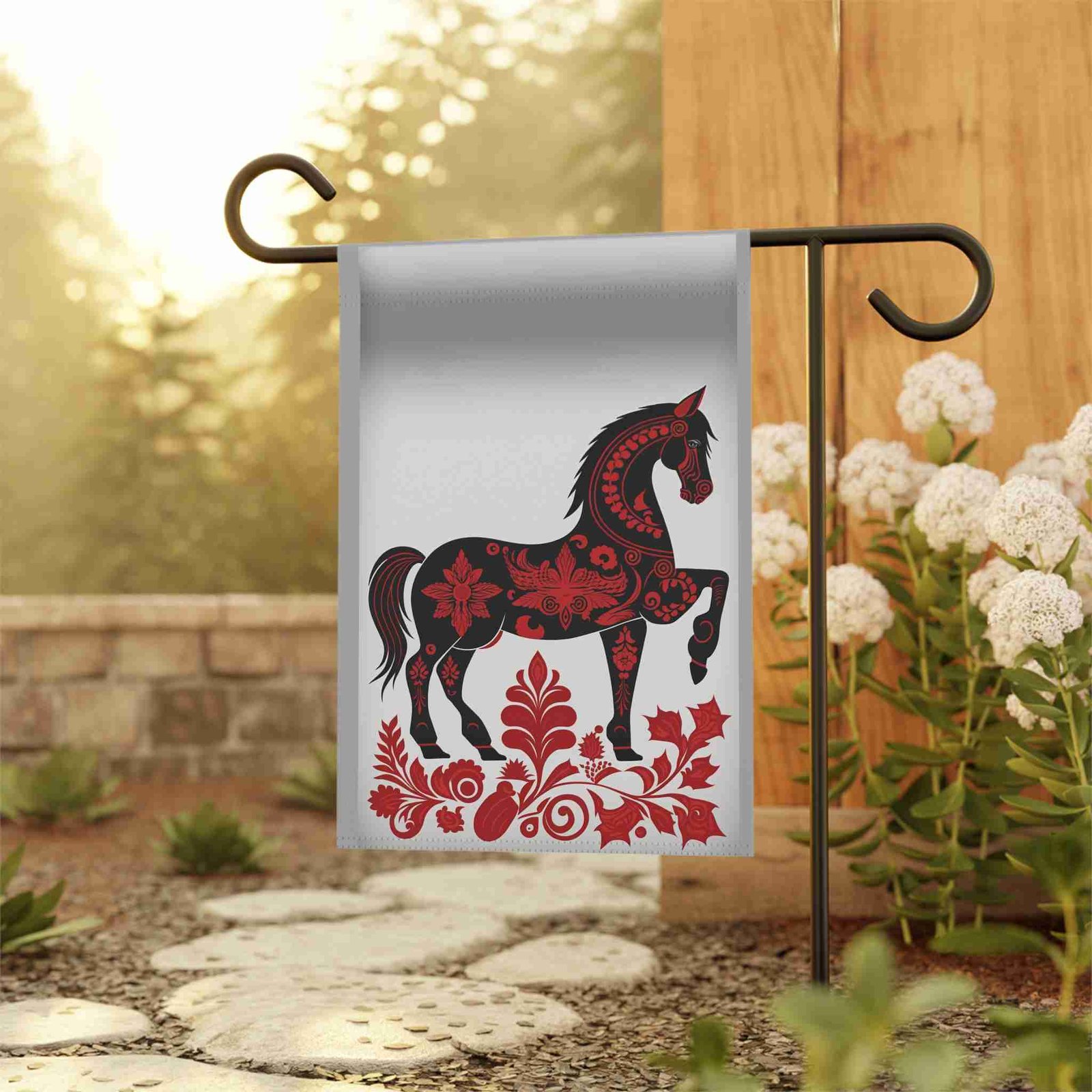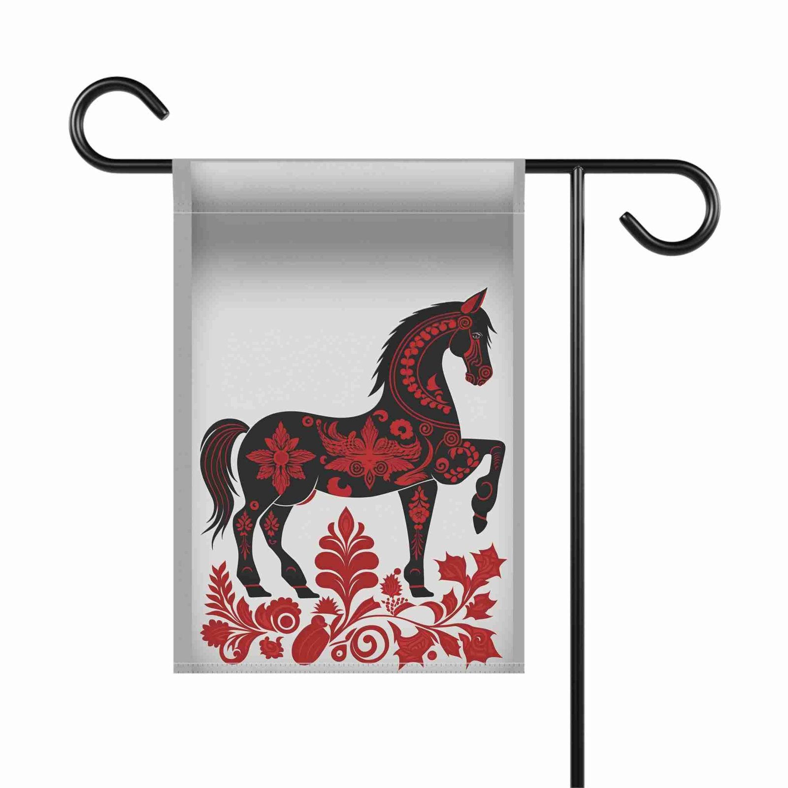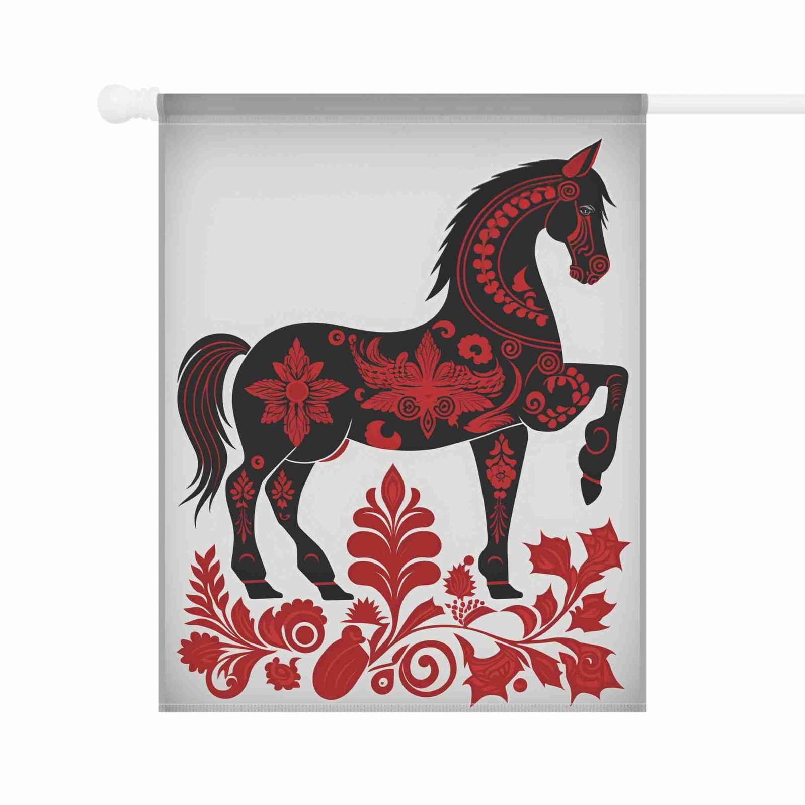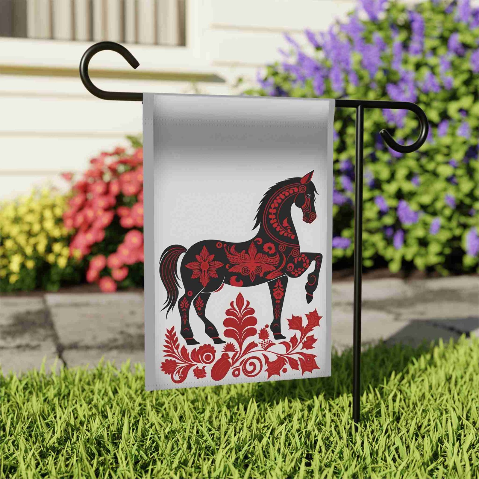 Gallop Into Beauty with the Red Flower Horse Garden Flag!