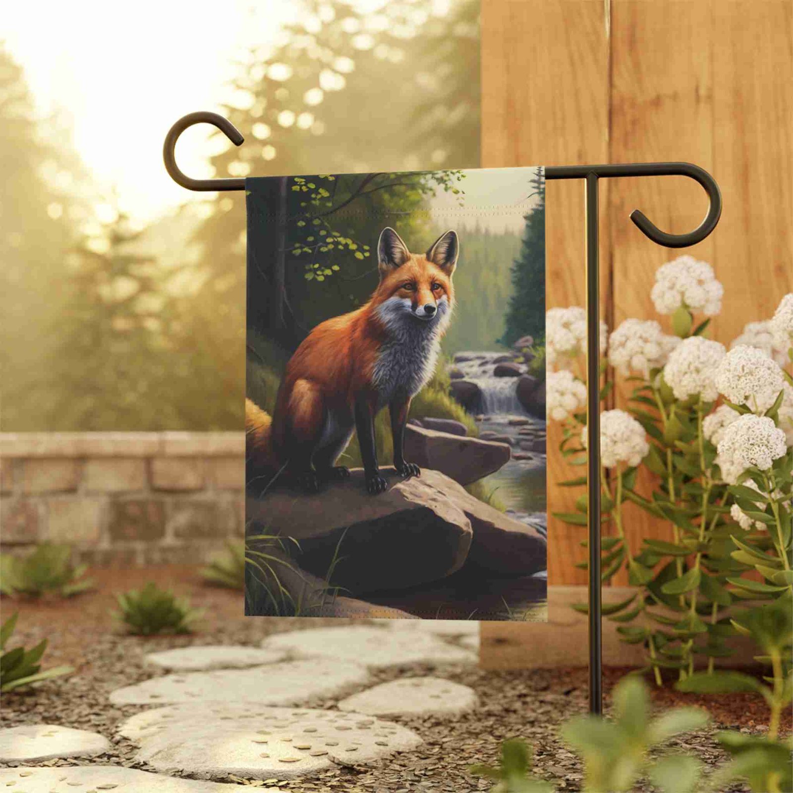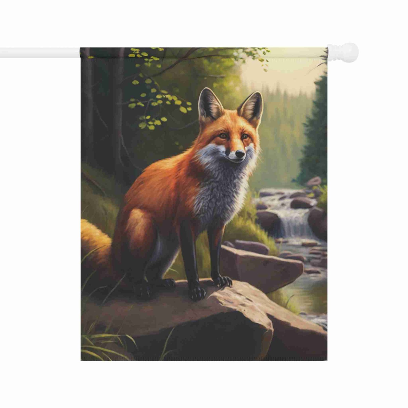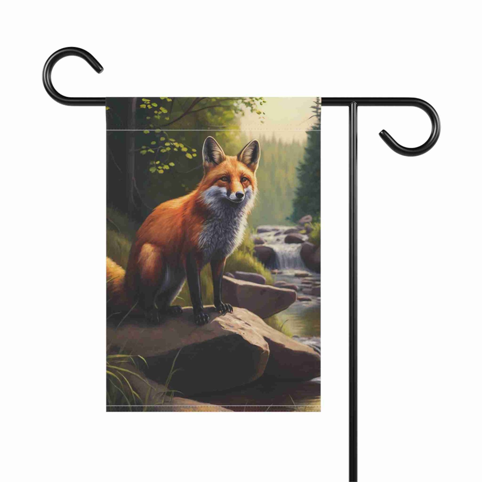 Unleash Woodland Charm with the Red Fox by the Stream Garden Flag!