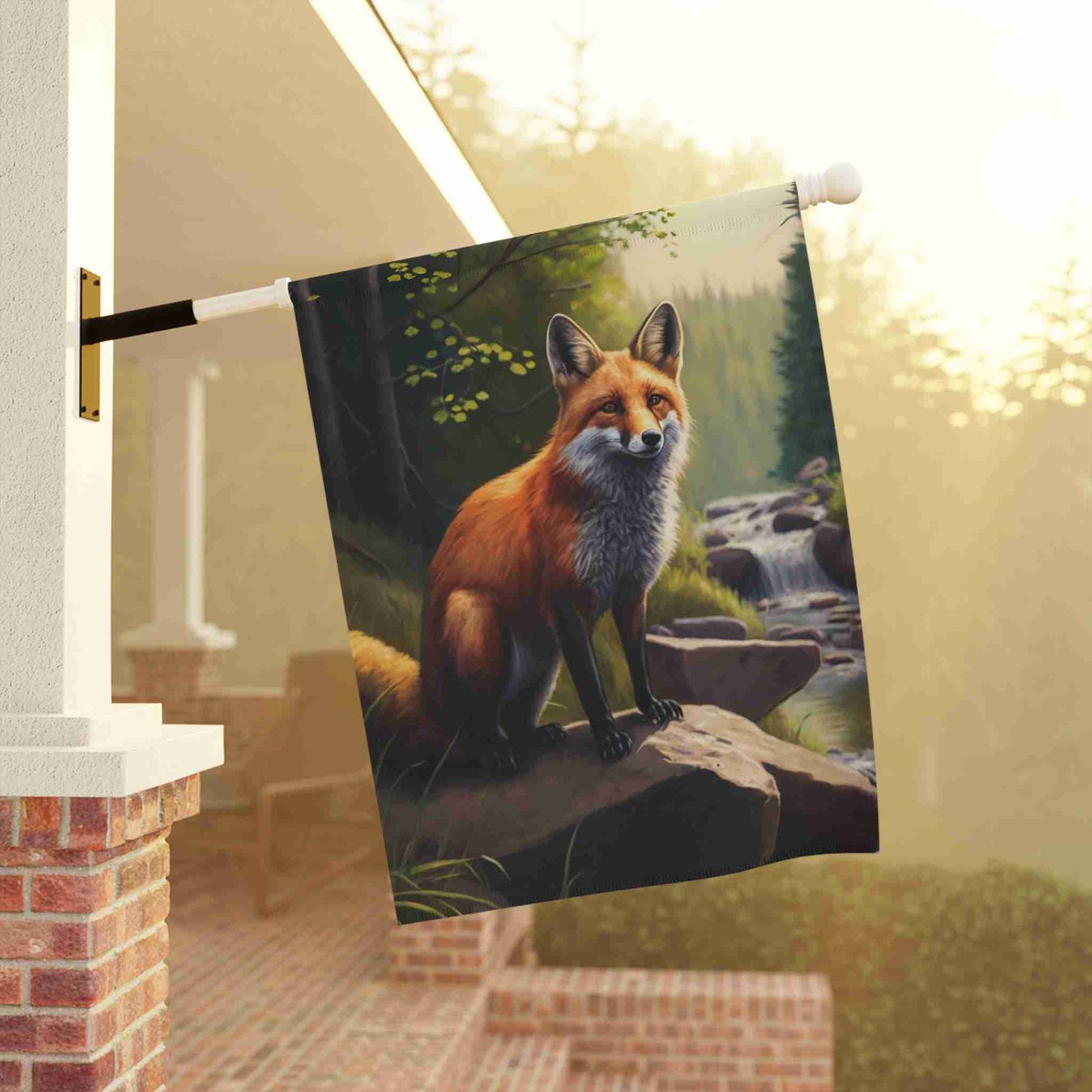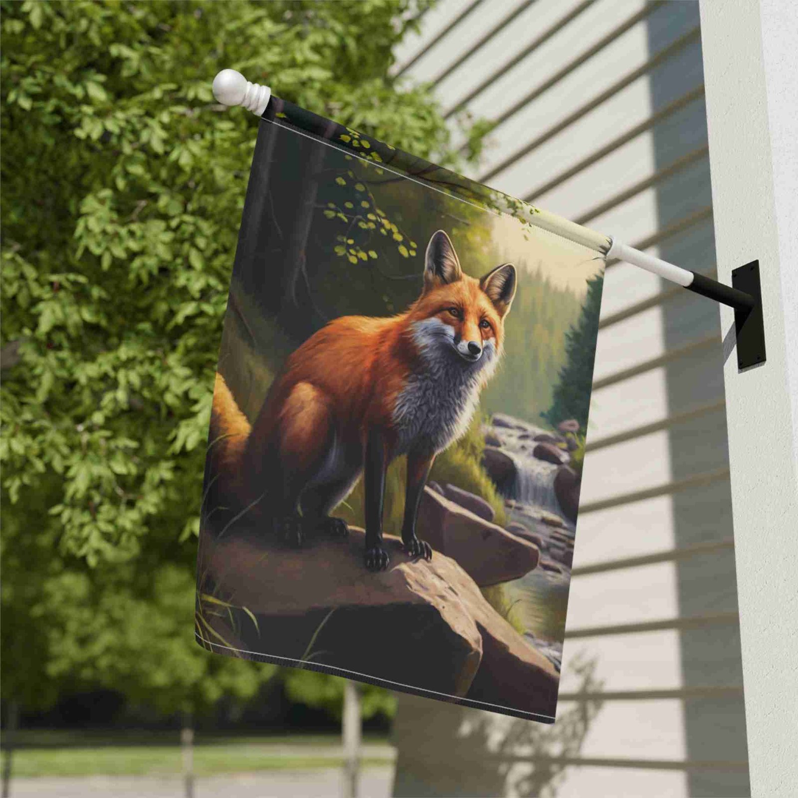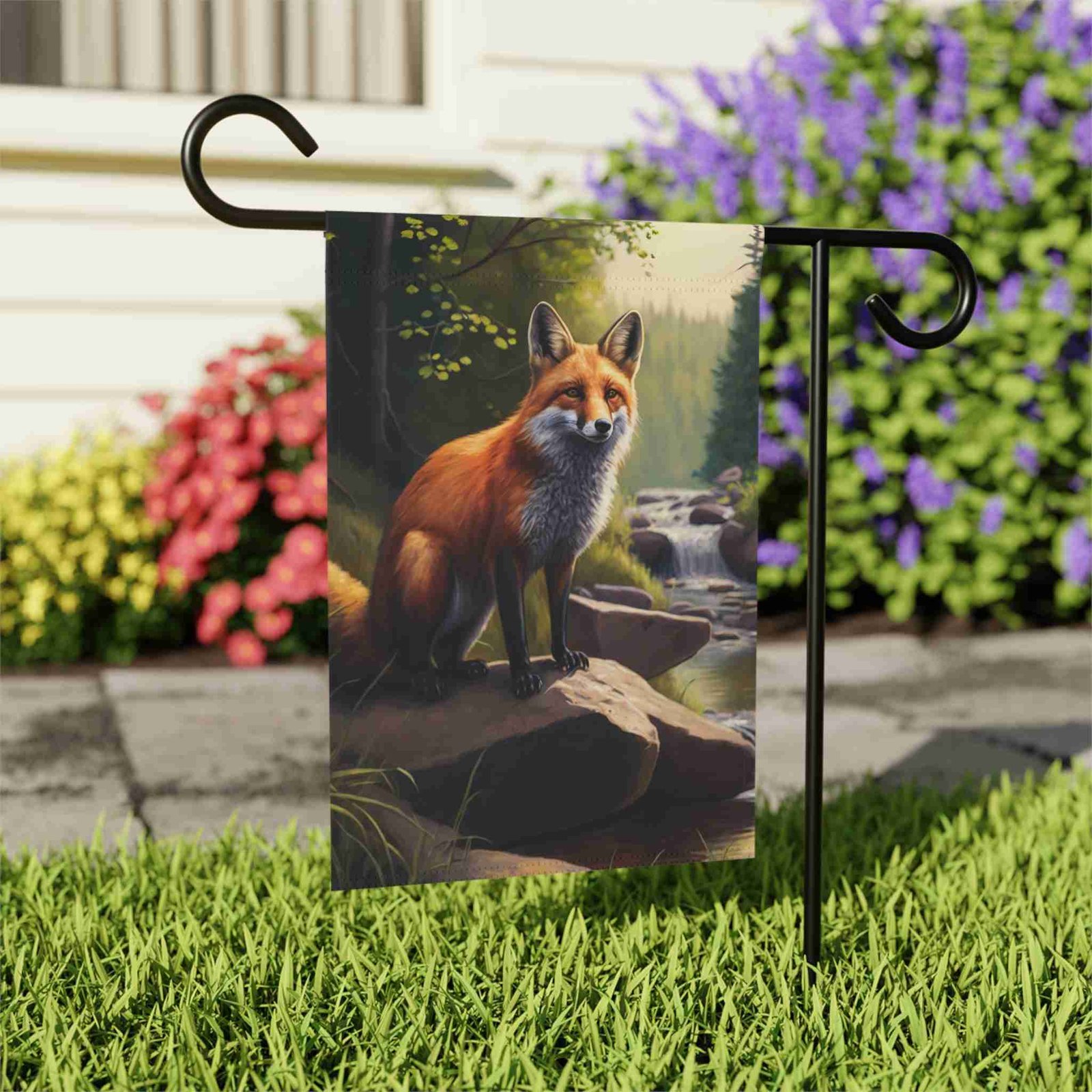 Unleash Woodland Charm with the Red Fox by the Stream Garden Flag!