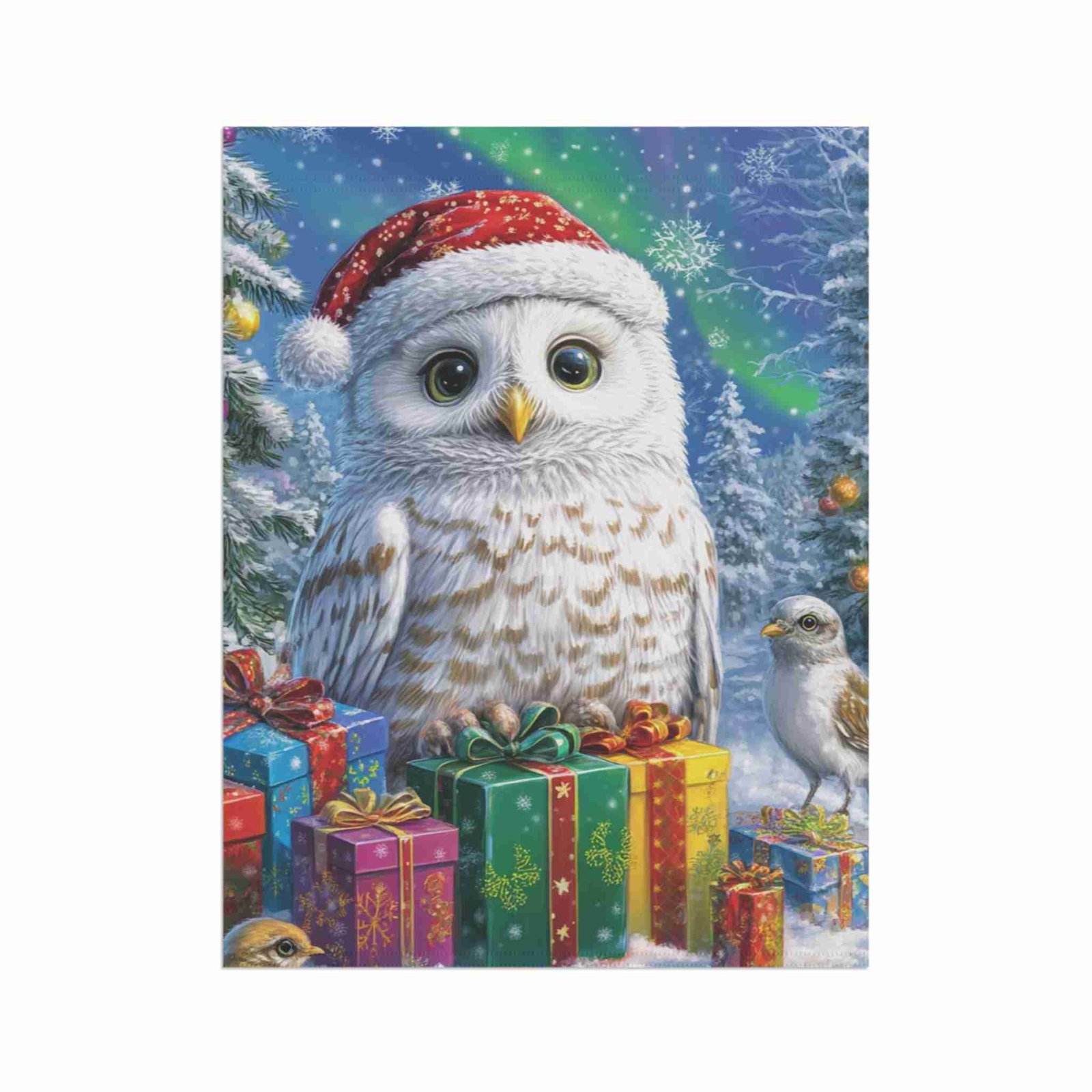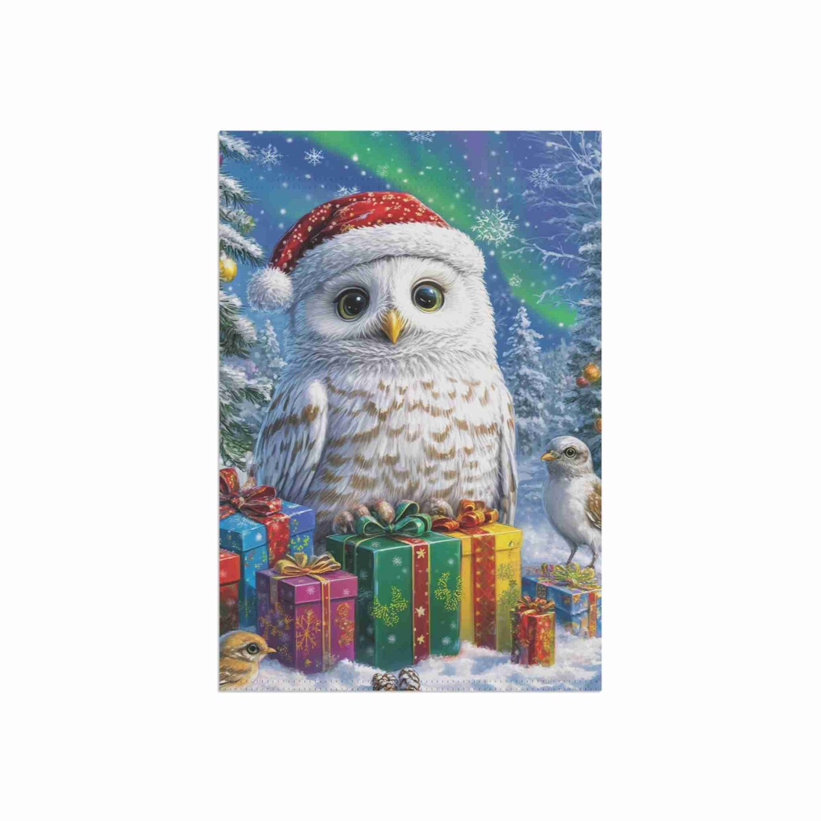 Colors That Glow with Holiday Cheer: Our advanced printing techniques ensure vibrant, crisp colors that truly bring the whimsical snowy owl design to life, creating eye-catching visuals that sparkle with festive spirit.