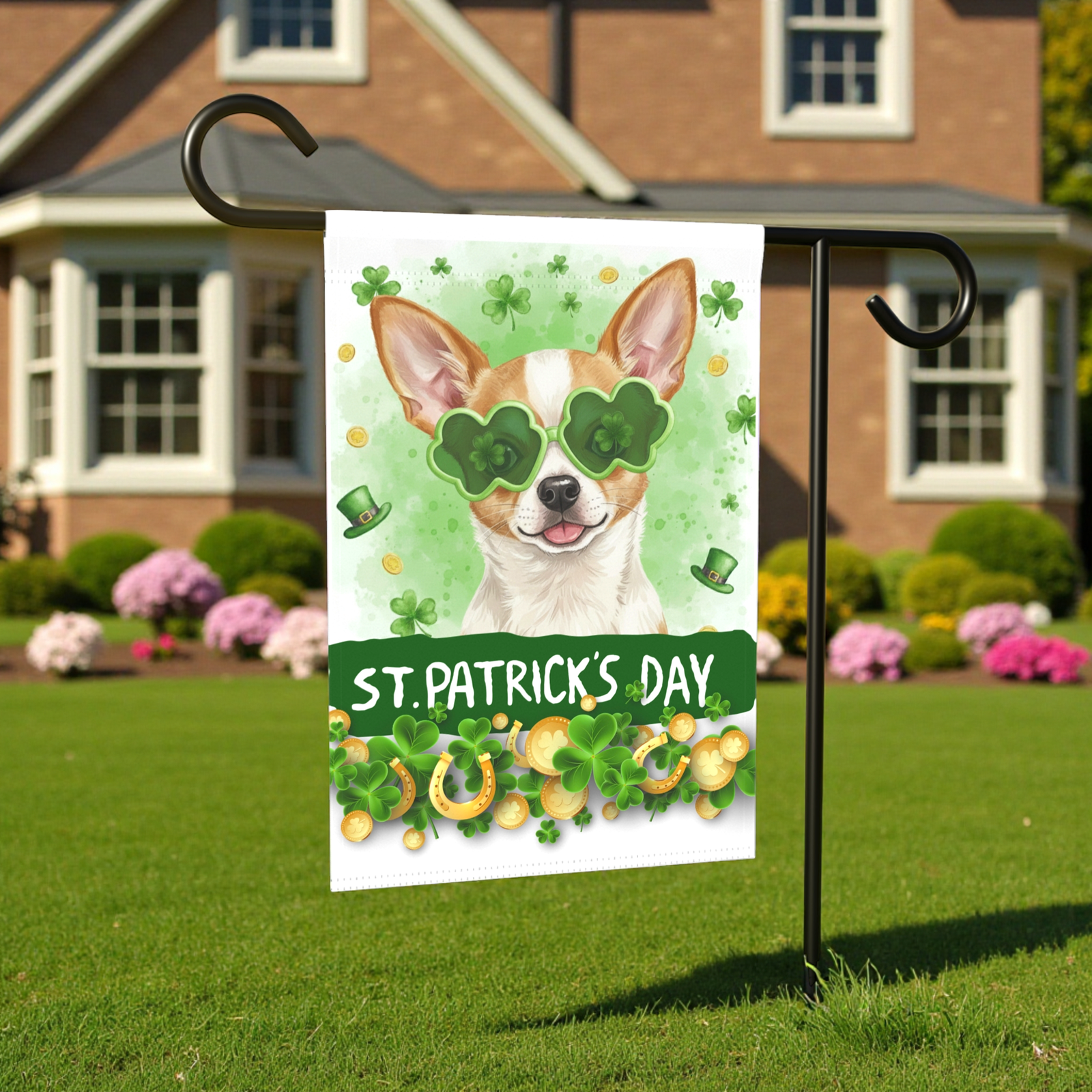 Small Pup, Big Irish Energy: The Clover Glasses Chihuahua Garden Flag
