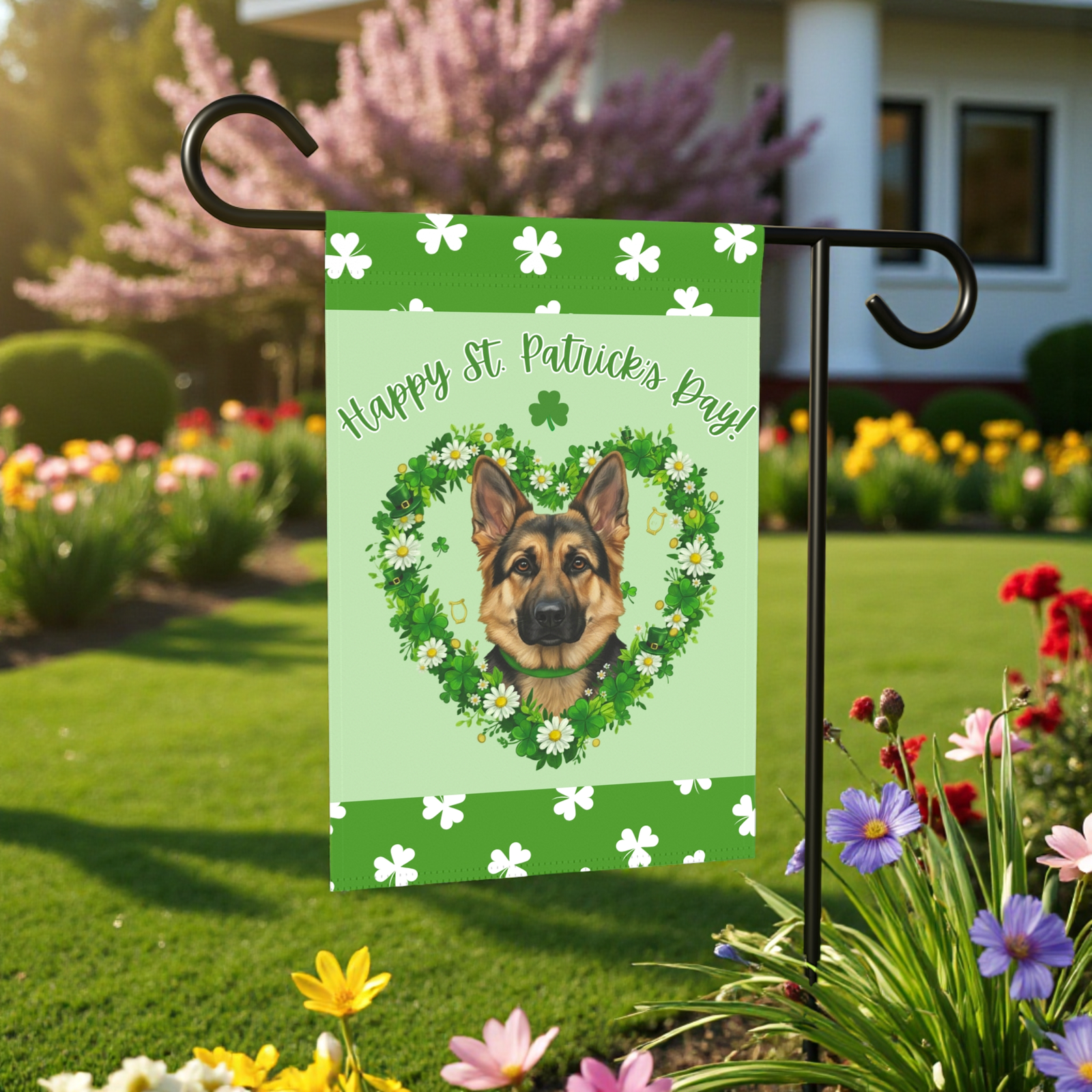 A Loyal Legend in Lucky Clover: The St. Patrick’s Day German Shepherd Garden Flag