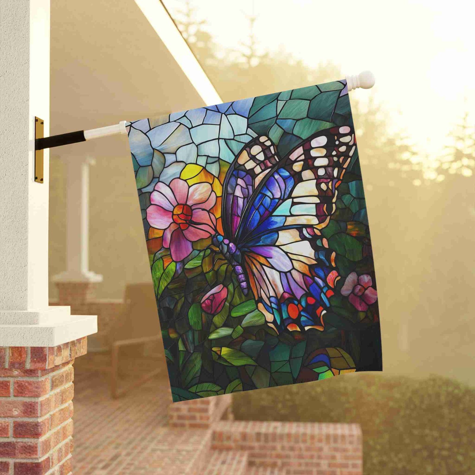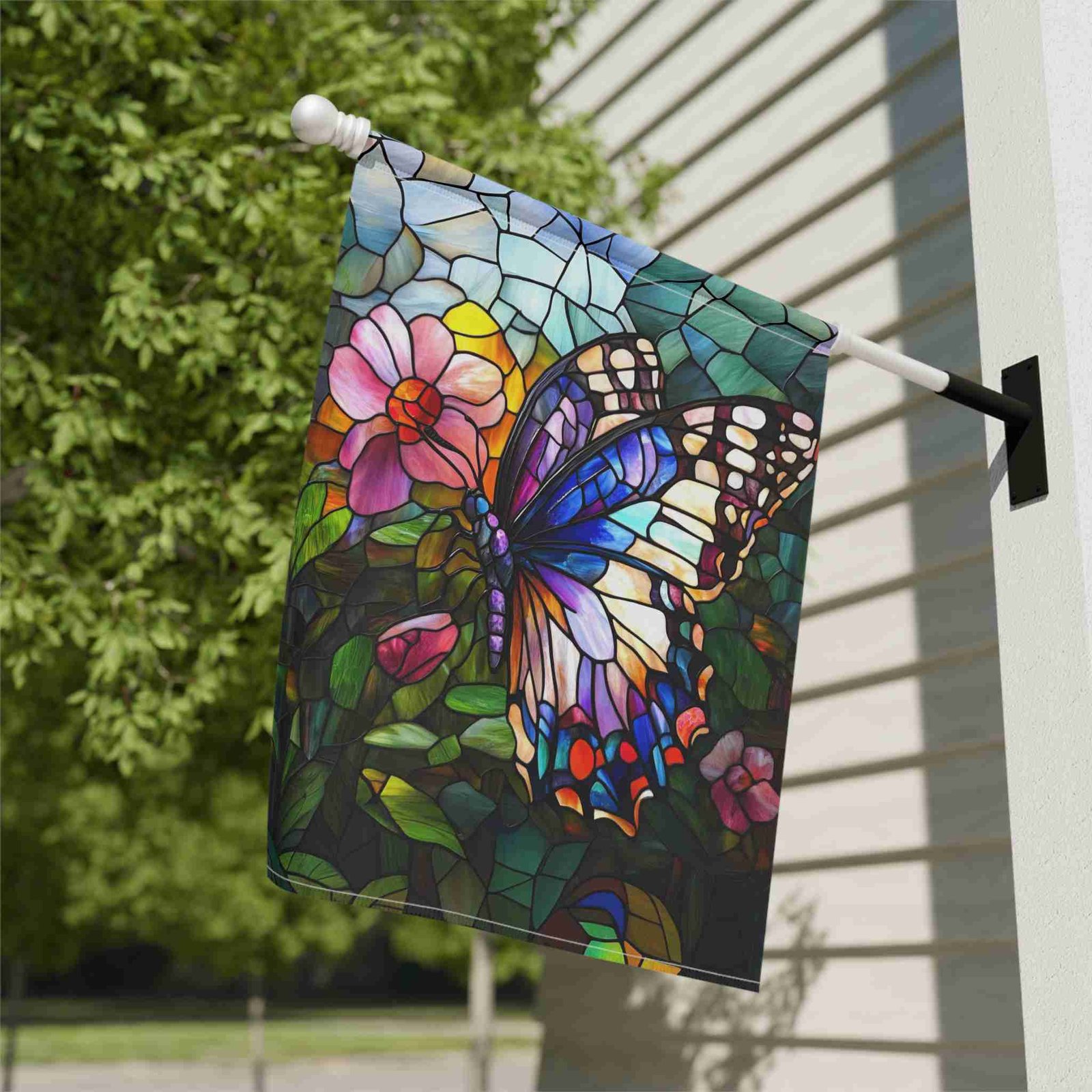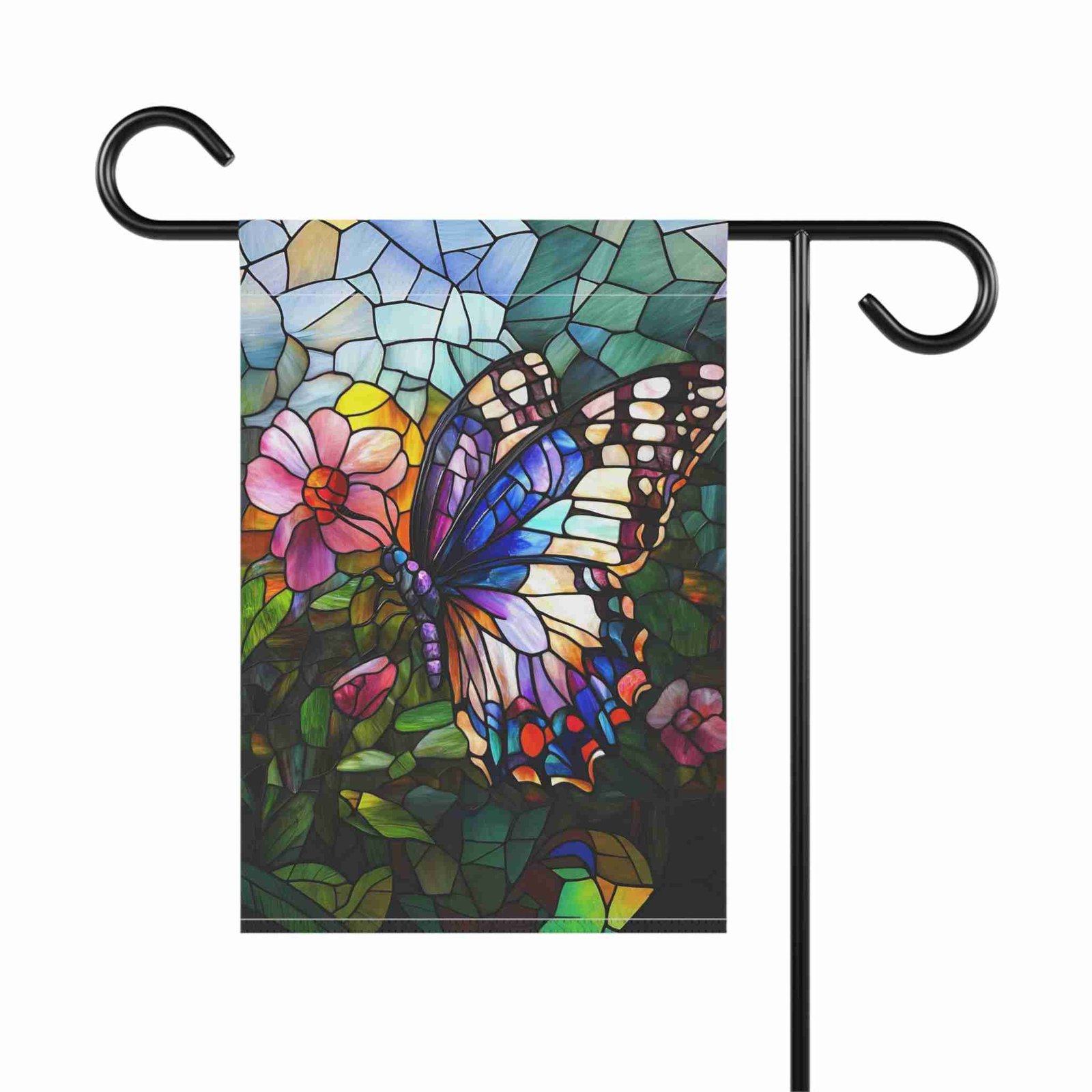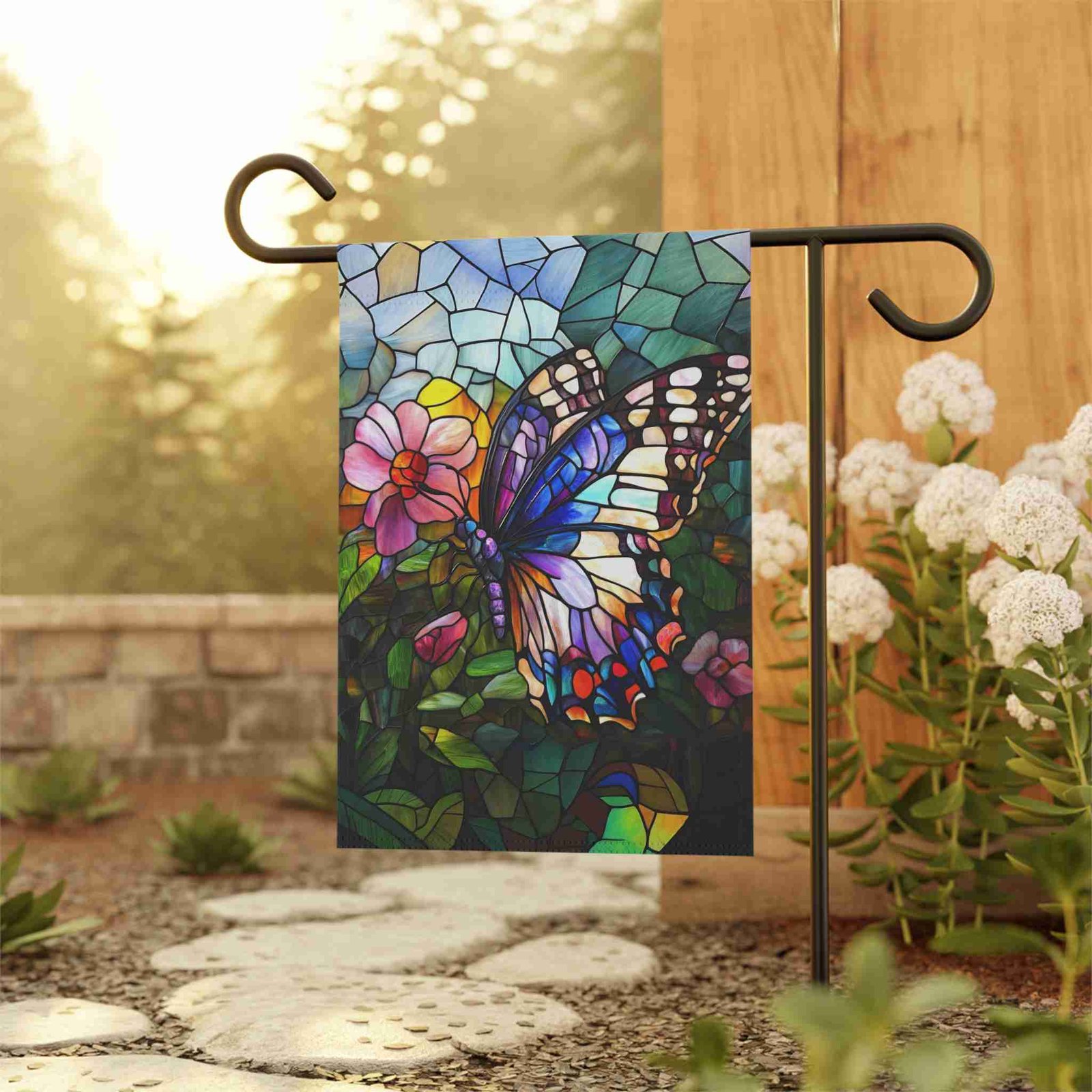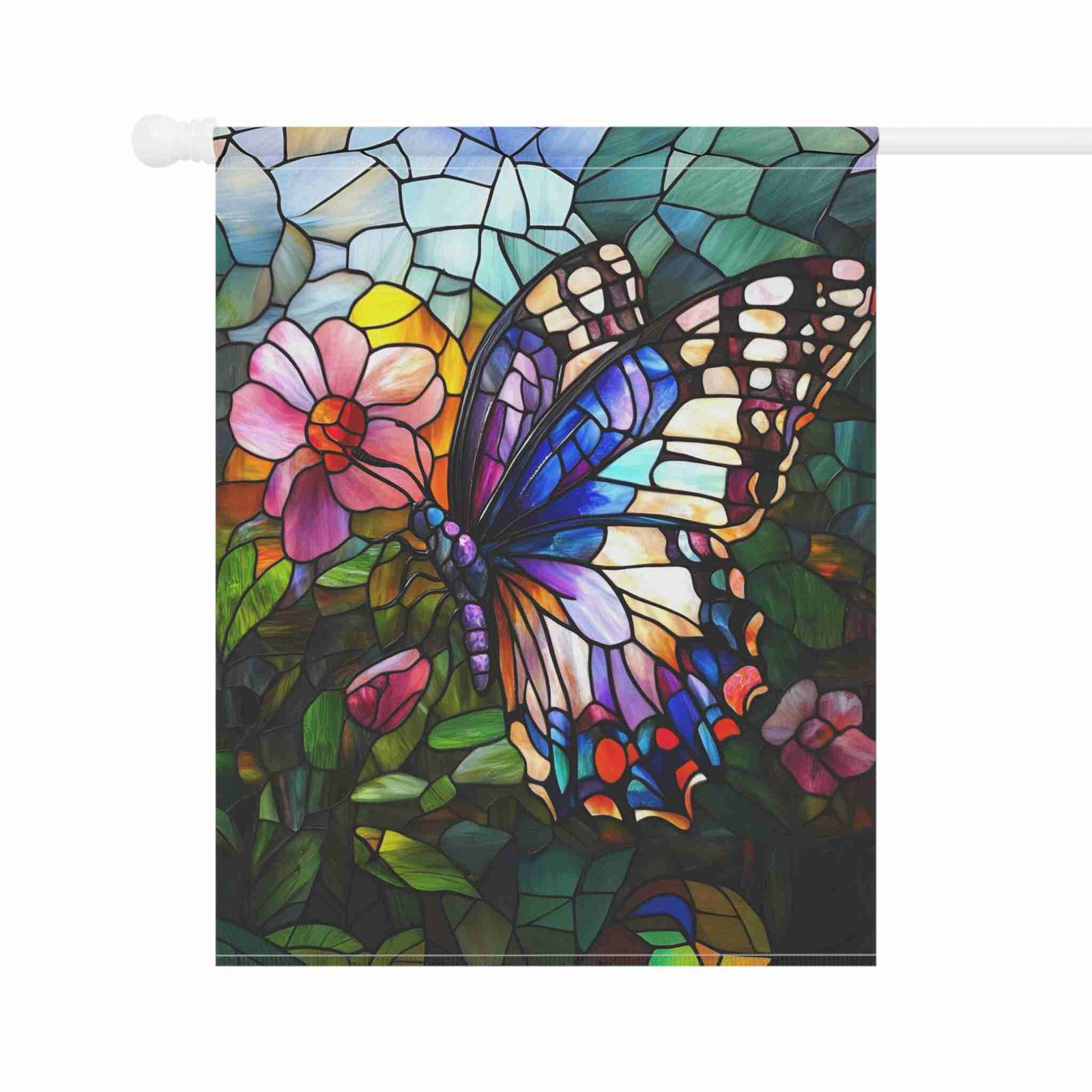 Illuminate Your Garden with the Stained Glass Butterfly Garden Flag!