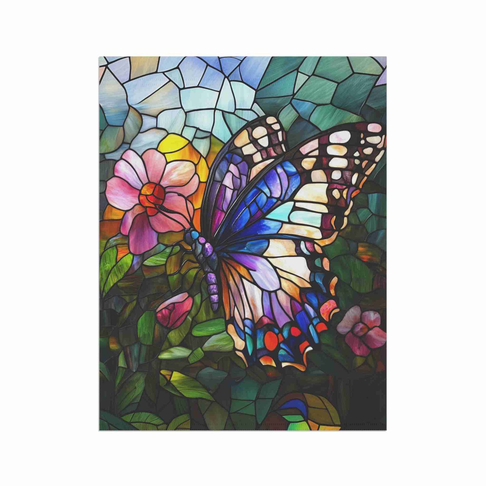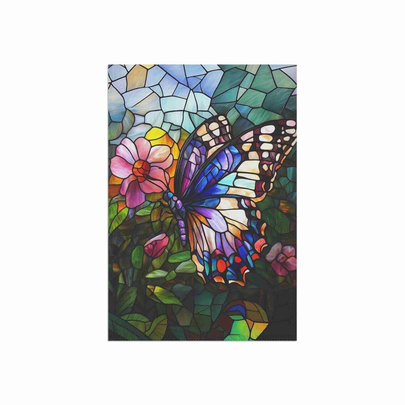 Transform your outdoor space into a mesmerizing kaleidoscope of color and whimsy with our exquisite Stained Glass Butterfly Garden Flag! This isn’t just a banner; it’s a vibrant work of art that will instantly brighten any garden or patio, inviting admiration and joy. Imagine a breathtaking butterfly, meticulously rendered in the radiant style of stained glass, adding an intricate touch of nature’s magic to your home decor.