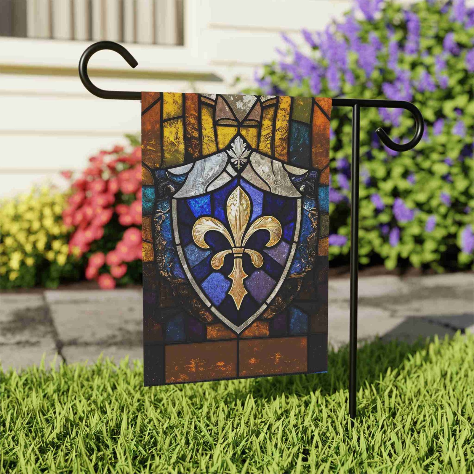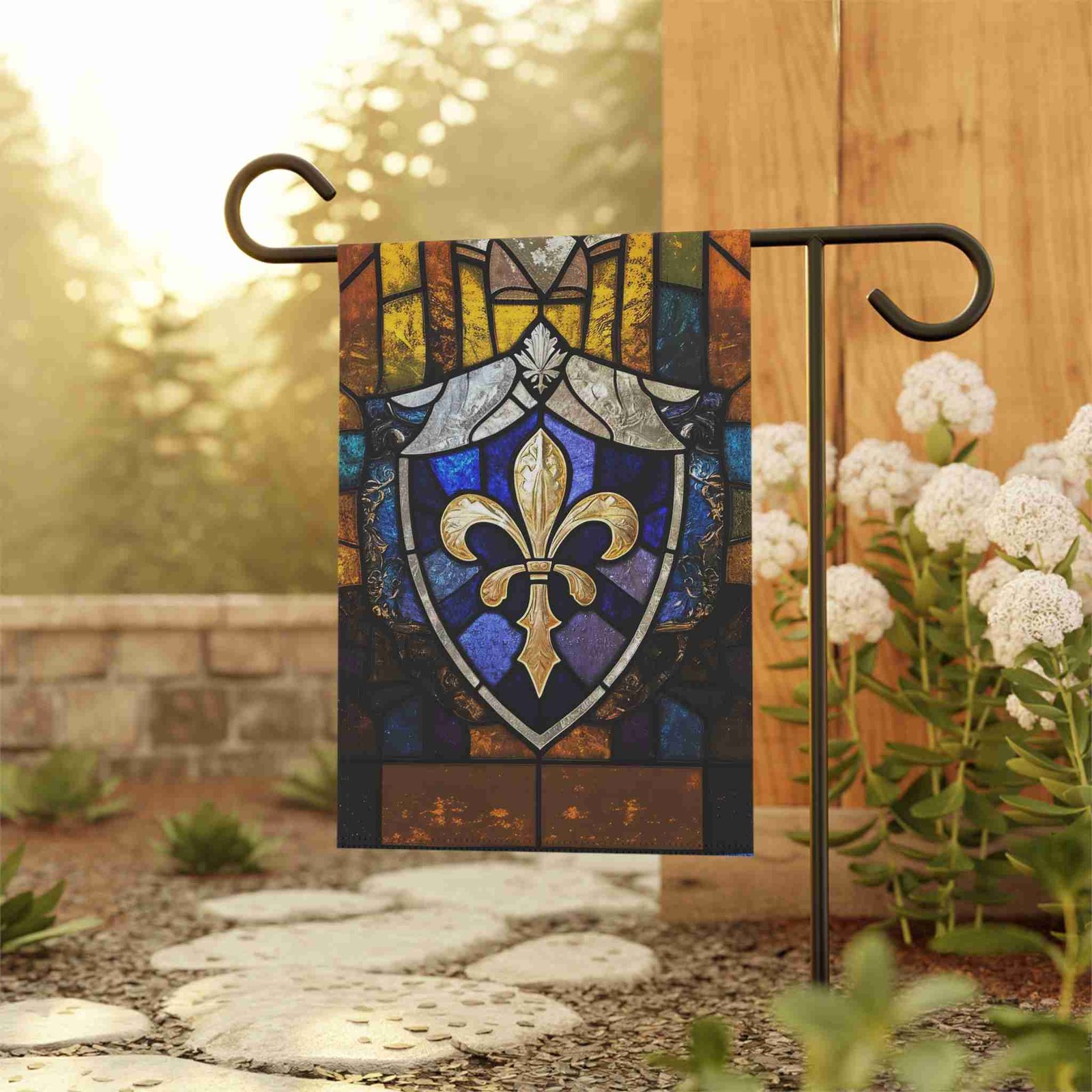 Unveil Timeless Elegance with the Stained Glass Fleur De Lis Garden Flag!