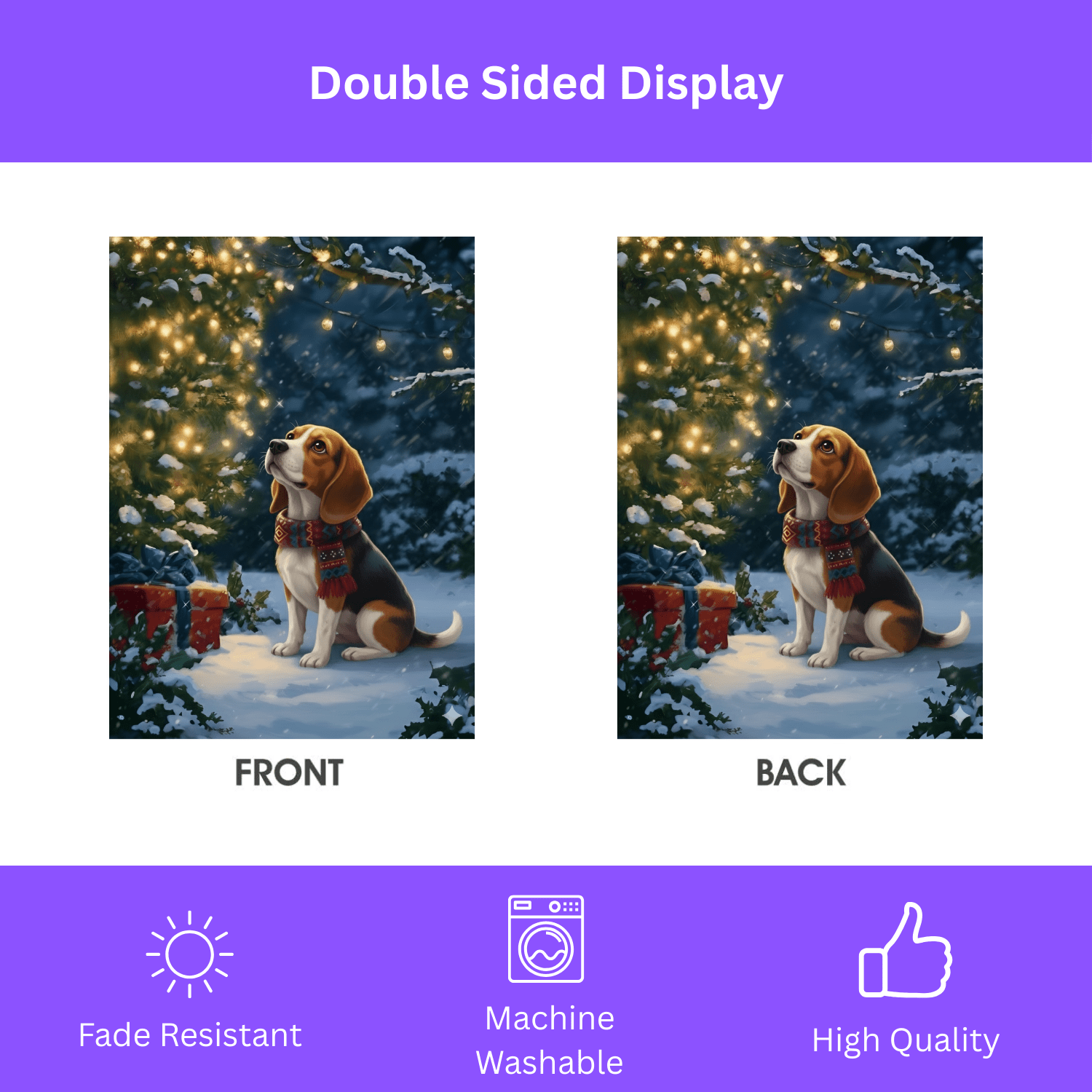 You’ve found it in the Standing By The Christmas Tree Beagle Garden Flag. This isn’t just a banner; it’s a statement of holiday cheer and a loving tribute to your furry family member. Imagine your loved ones arriving and being greeted by this beautiful, serene scene—your curious Beagle, standing patiently in the fresh snow beneath brightly lit Christmas tree branches and glowing lights. It’s the perfect way to infuse your garden, porch, or entryway with warmth and personality.