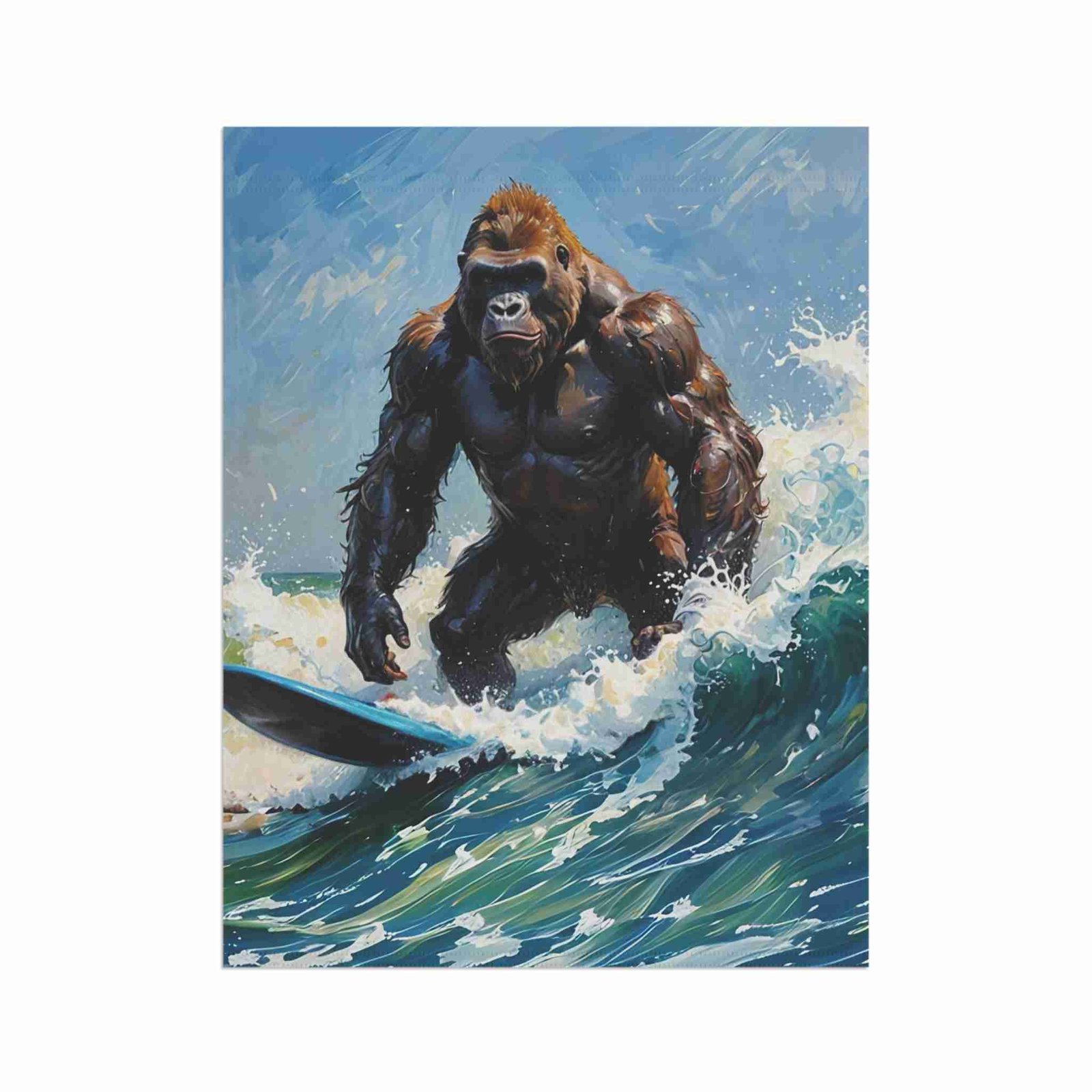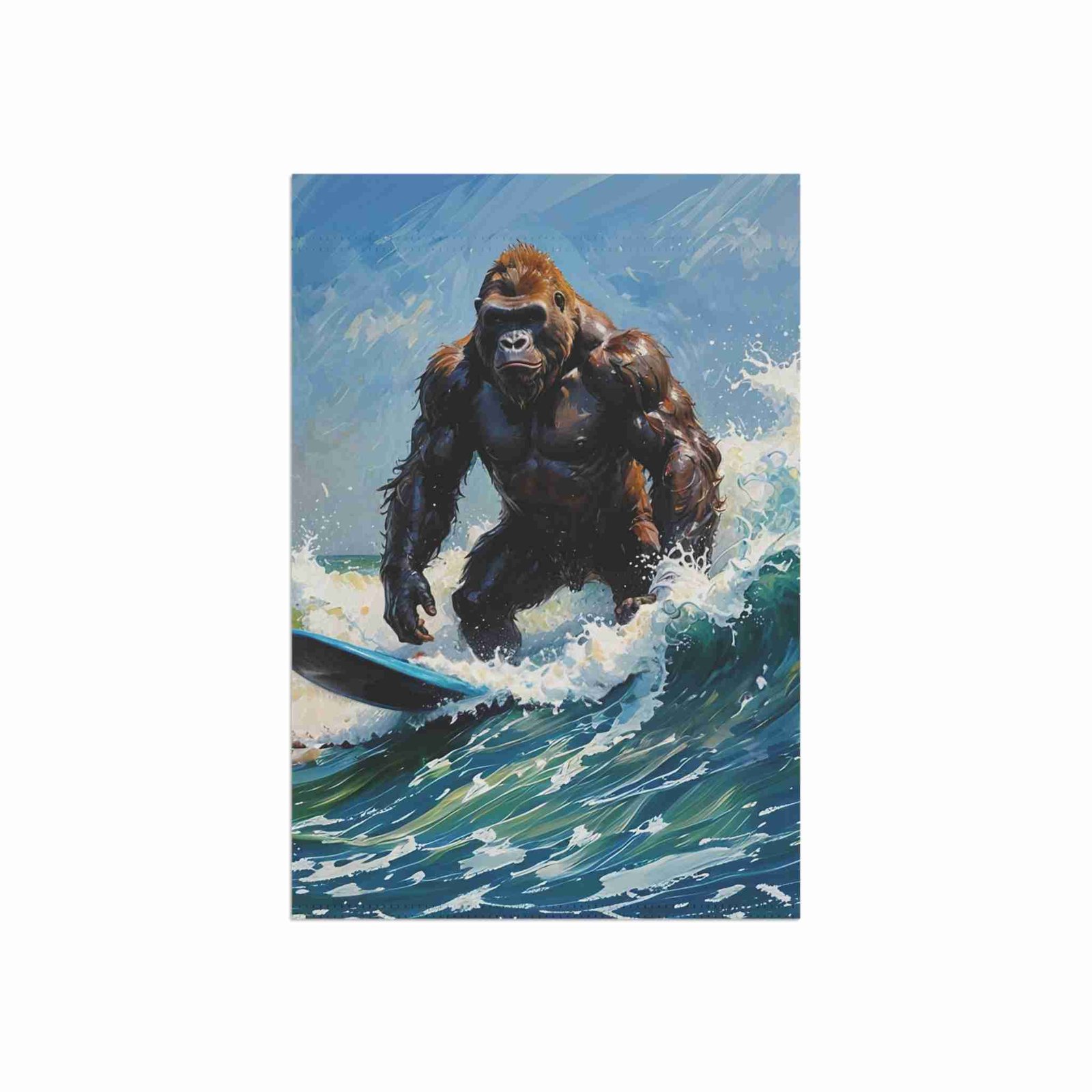 Colors That Make a Splash: Our advanced printing techniques ensure vibrant, crisp colors that truly bring your surfing gorilla to life, creating eye-catching designs that pop with playful energy.