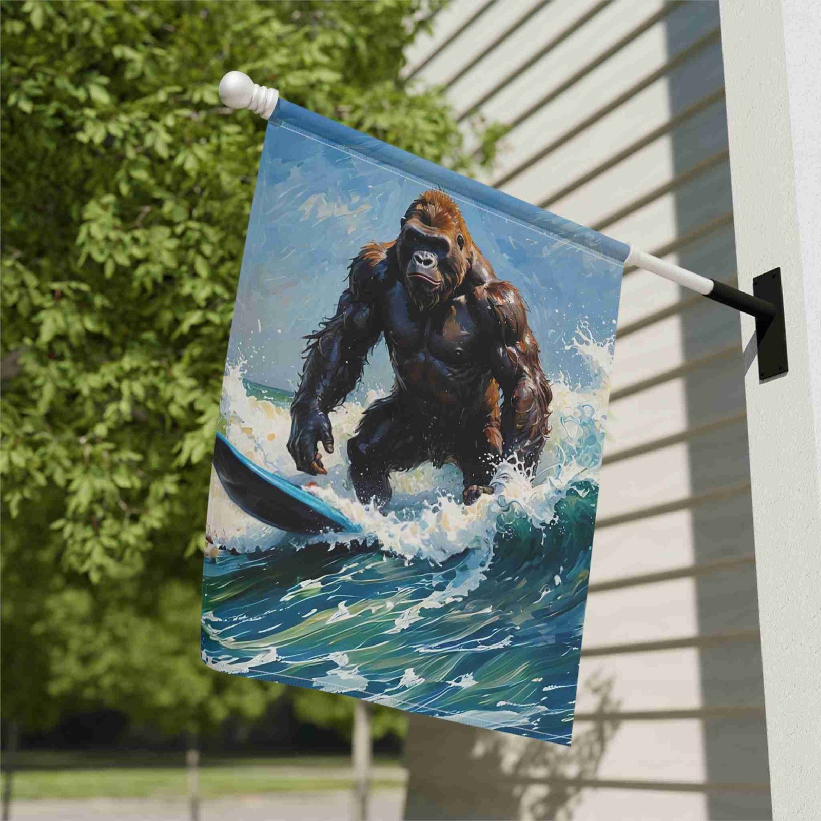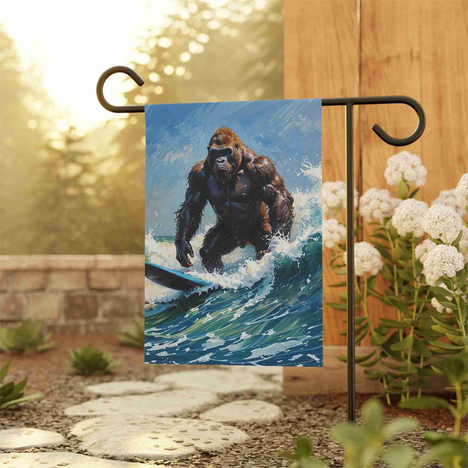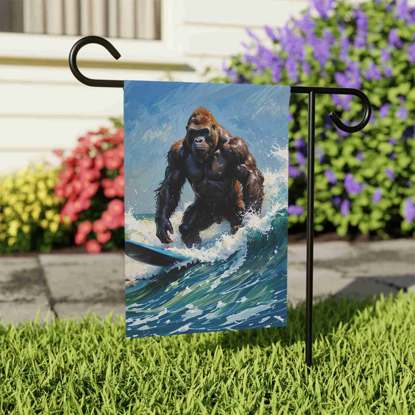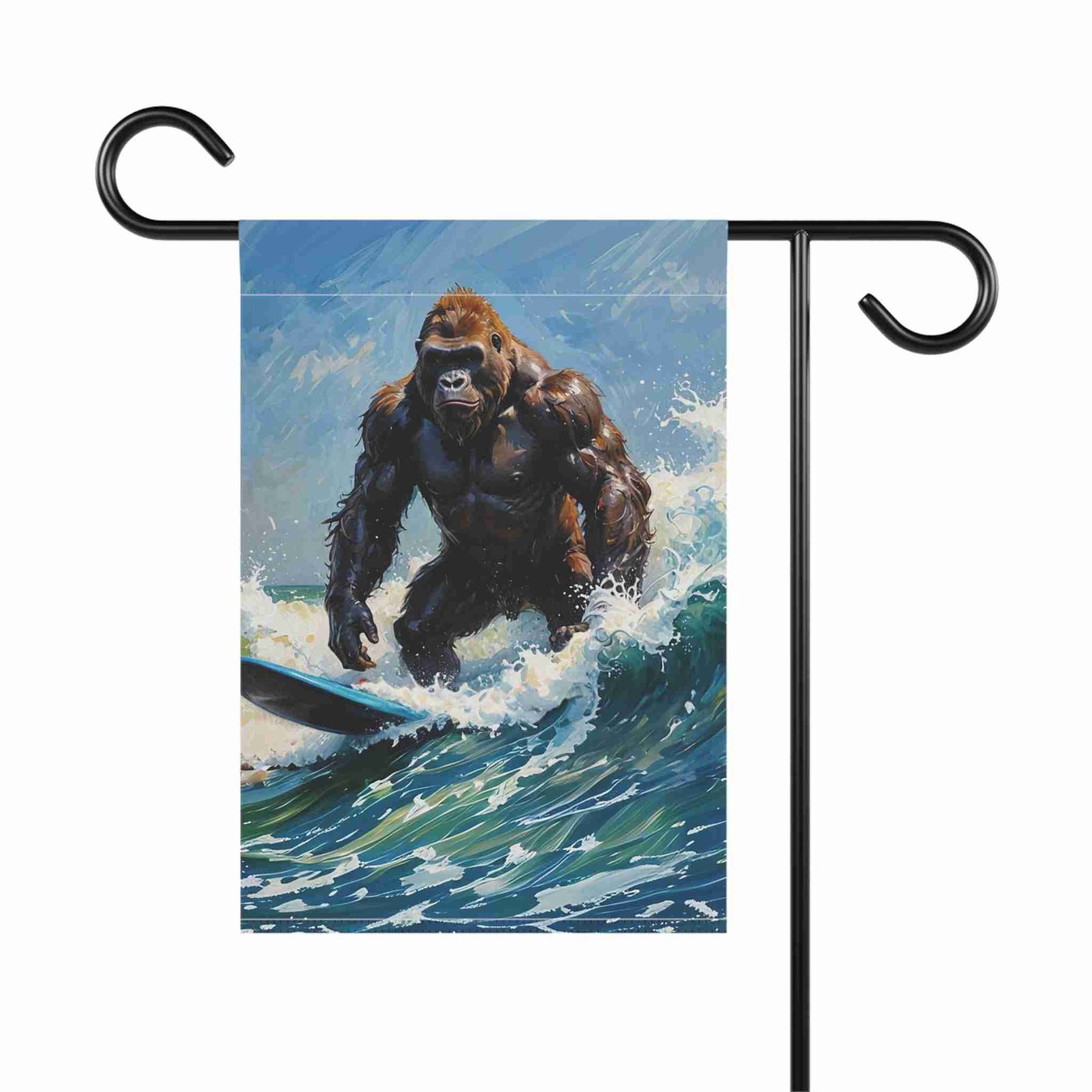 Catch the Wave of Fun with the Surfing Gorilla Garden Flag!