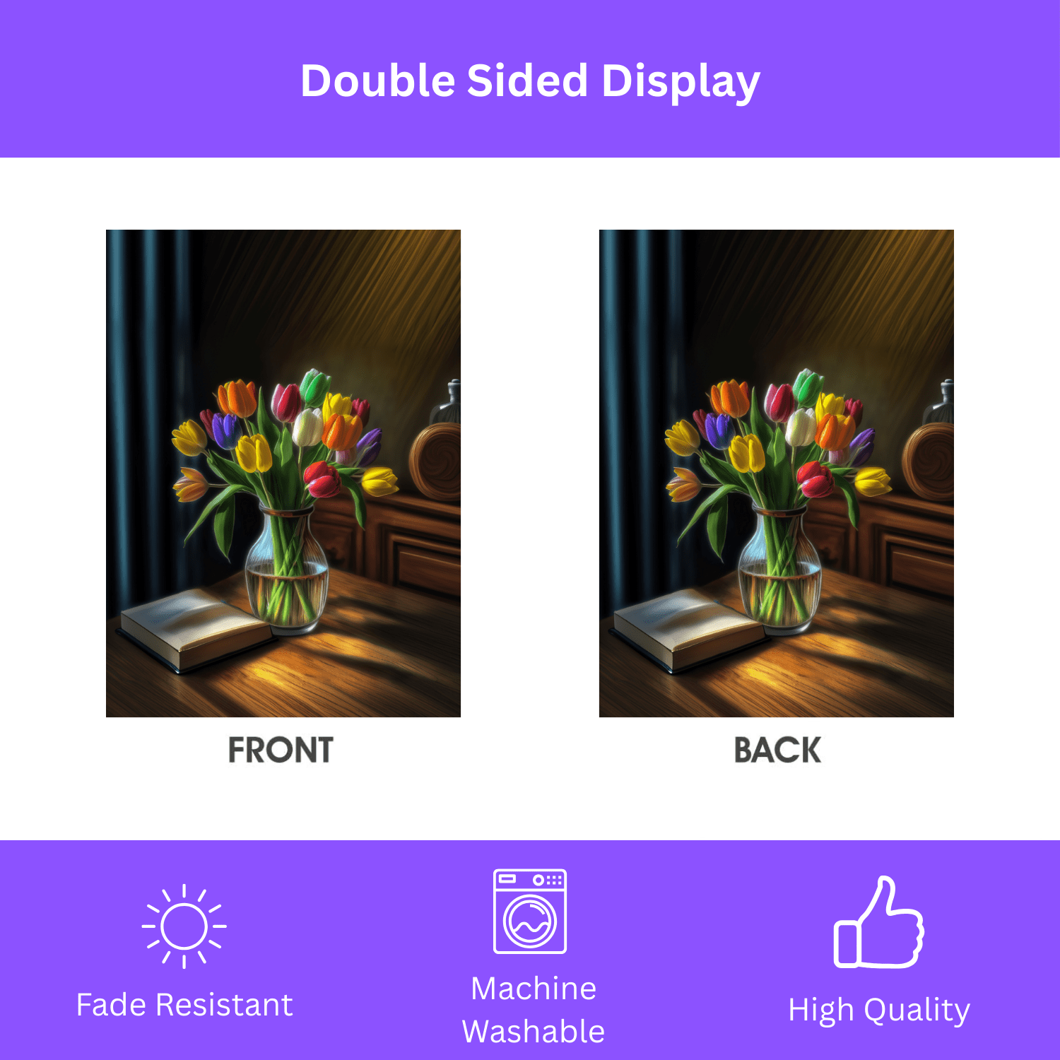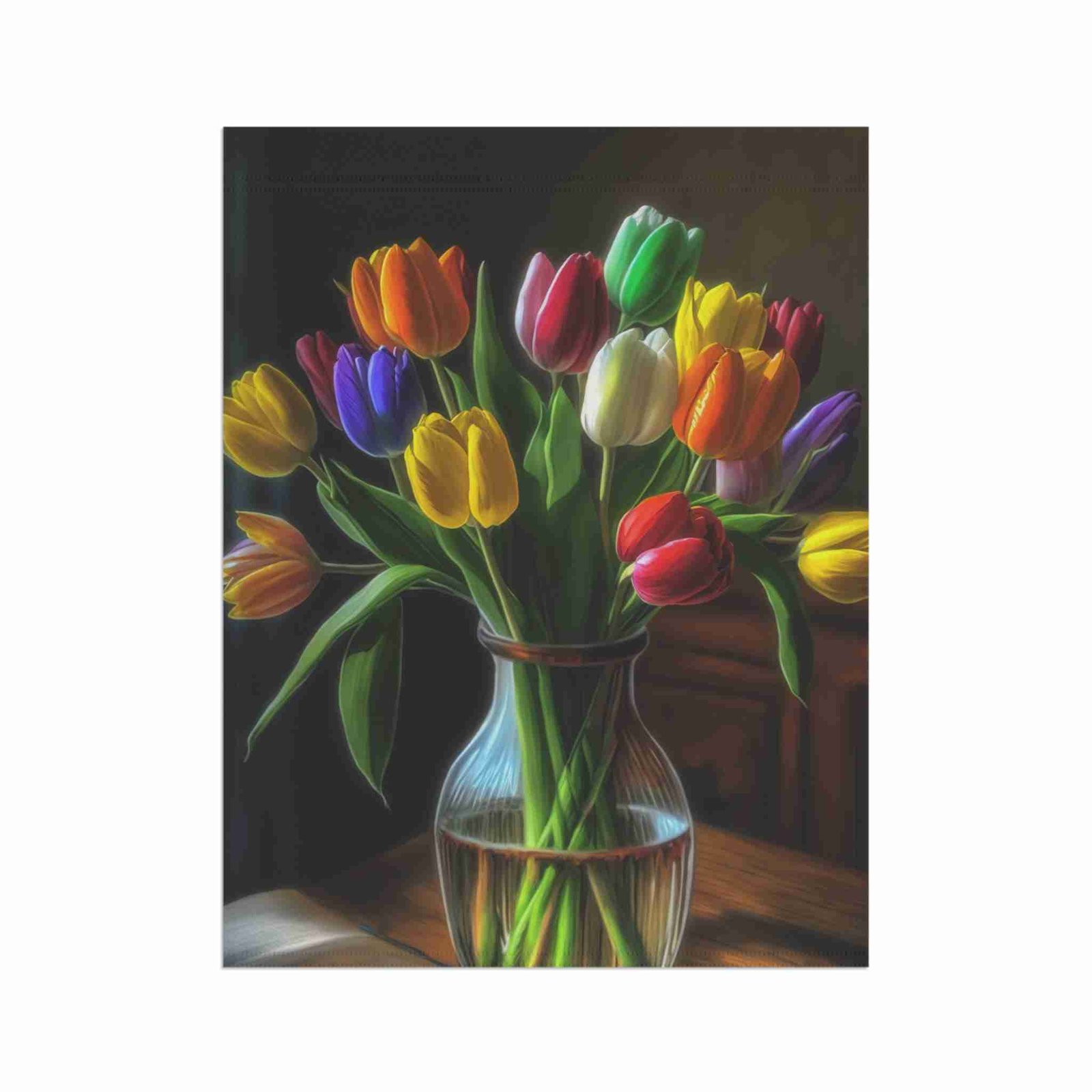 Colors That Leap to Life: Our advanced printing techniques ensure vibrant, crisp colors that truly bring your vase of tulips to life, guaranteeing eye-catching designs that pop with freshness and joy.
