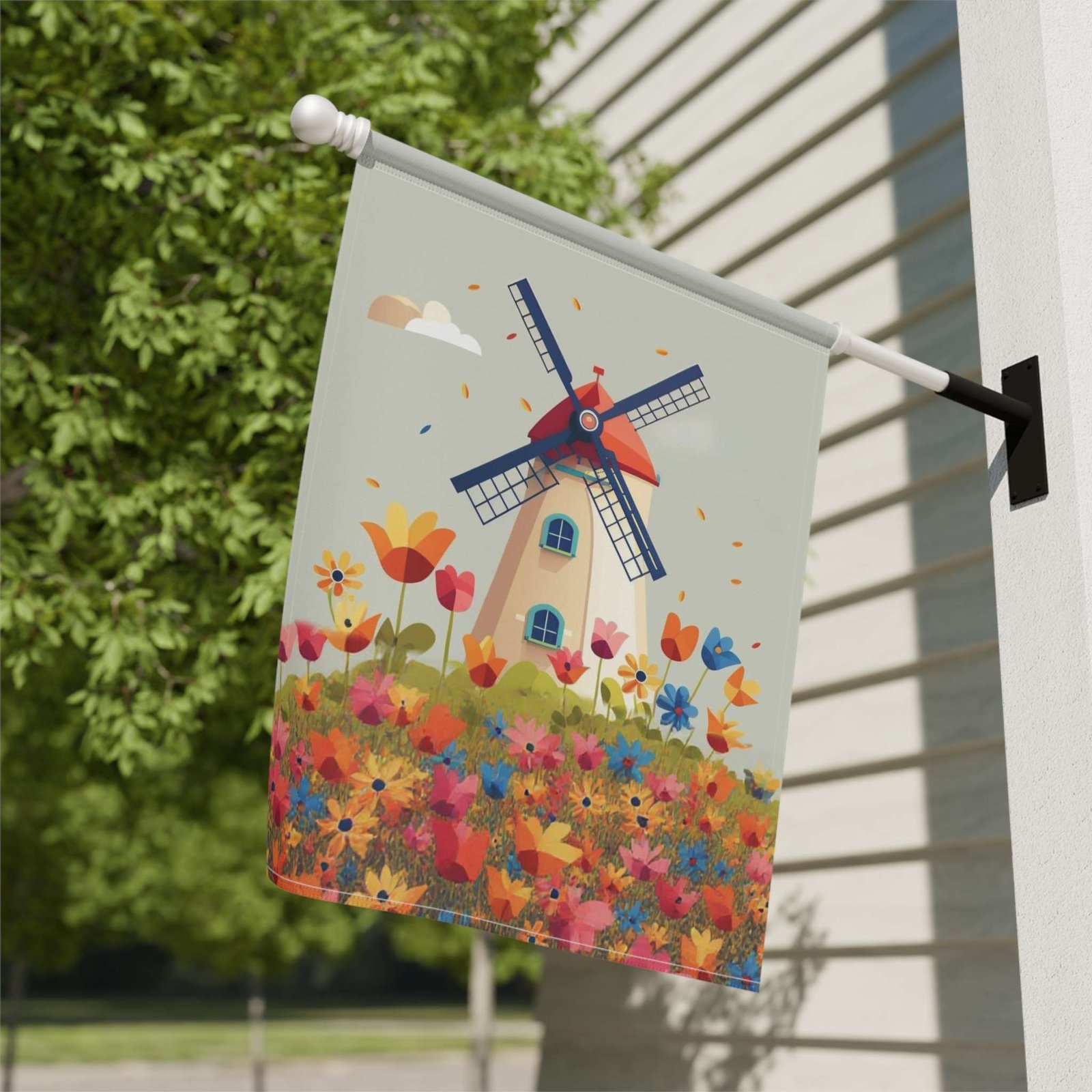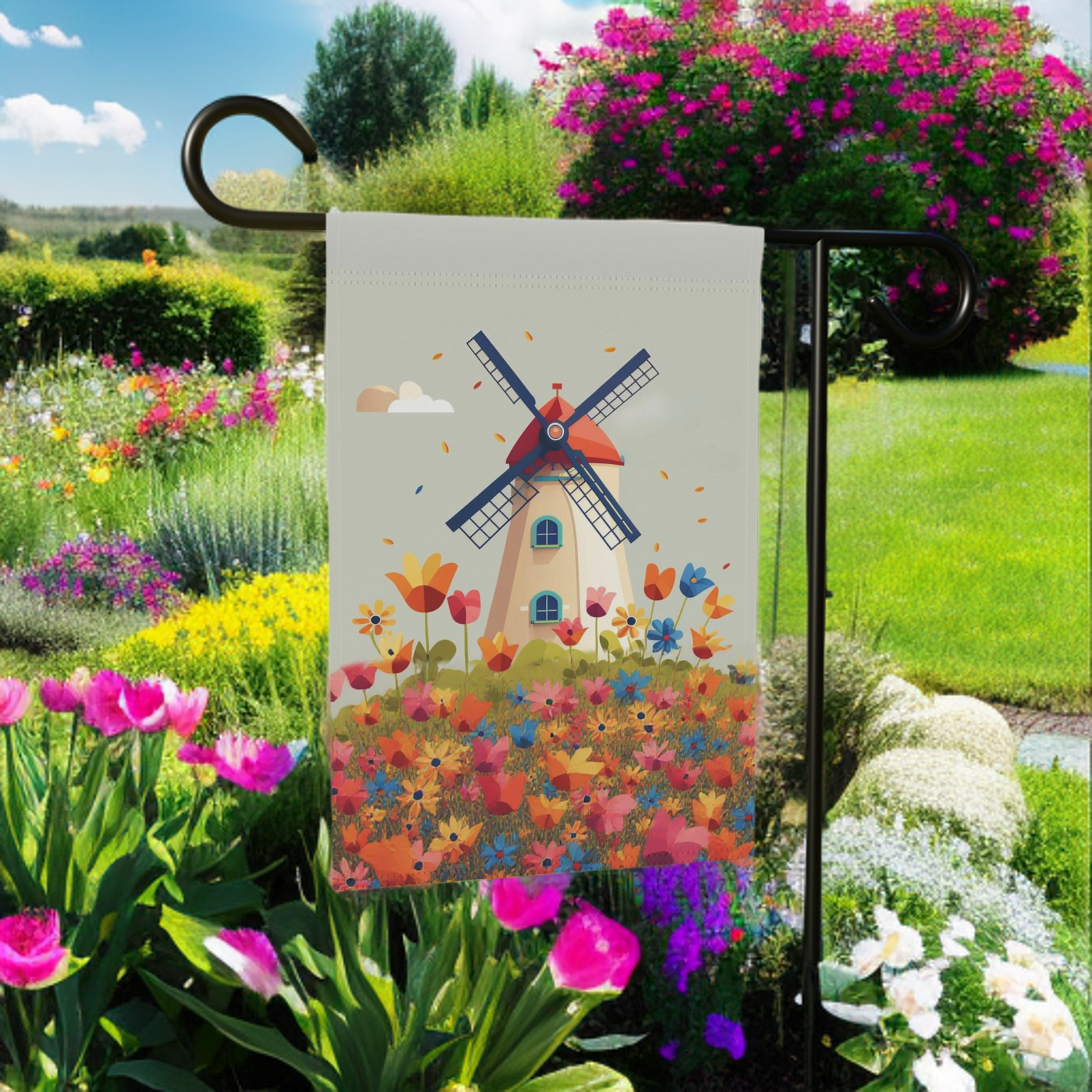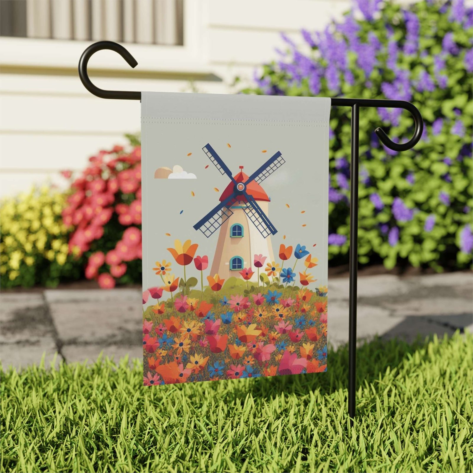Capture Whimsical Charm with the Windmill and Flowers Garden Flag!