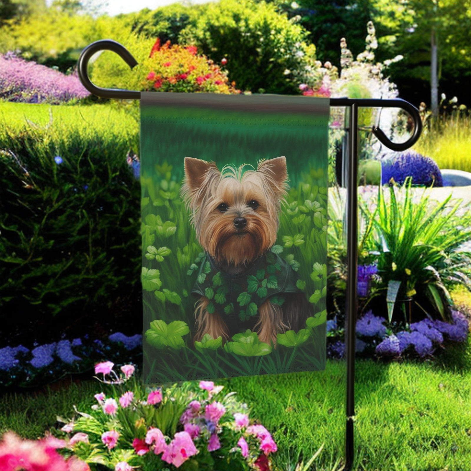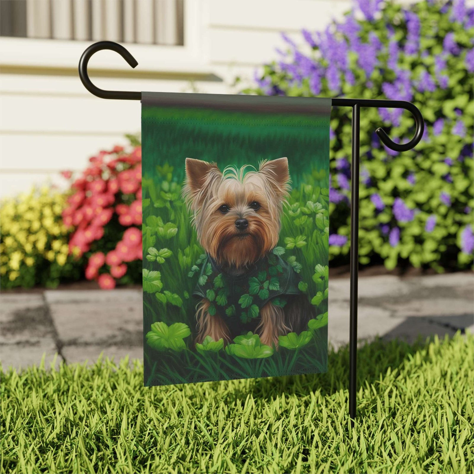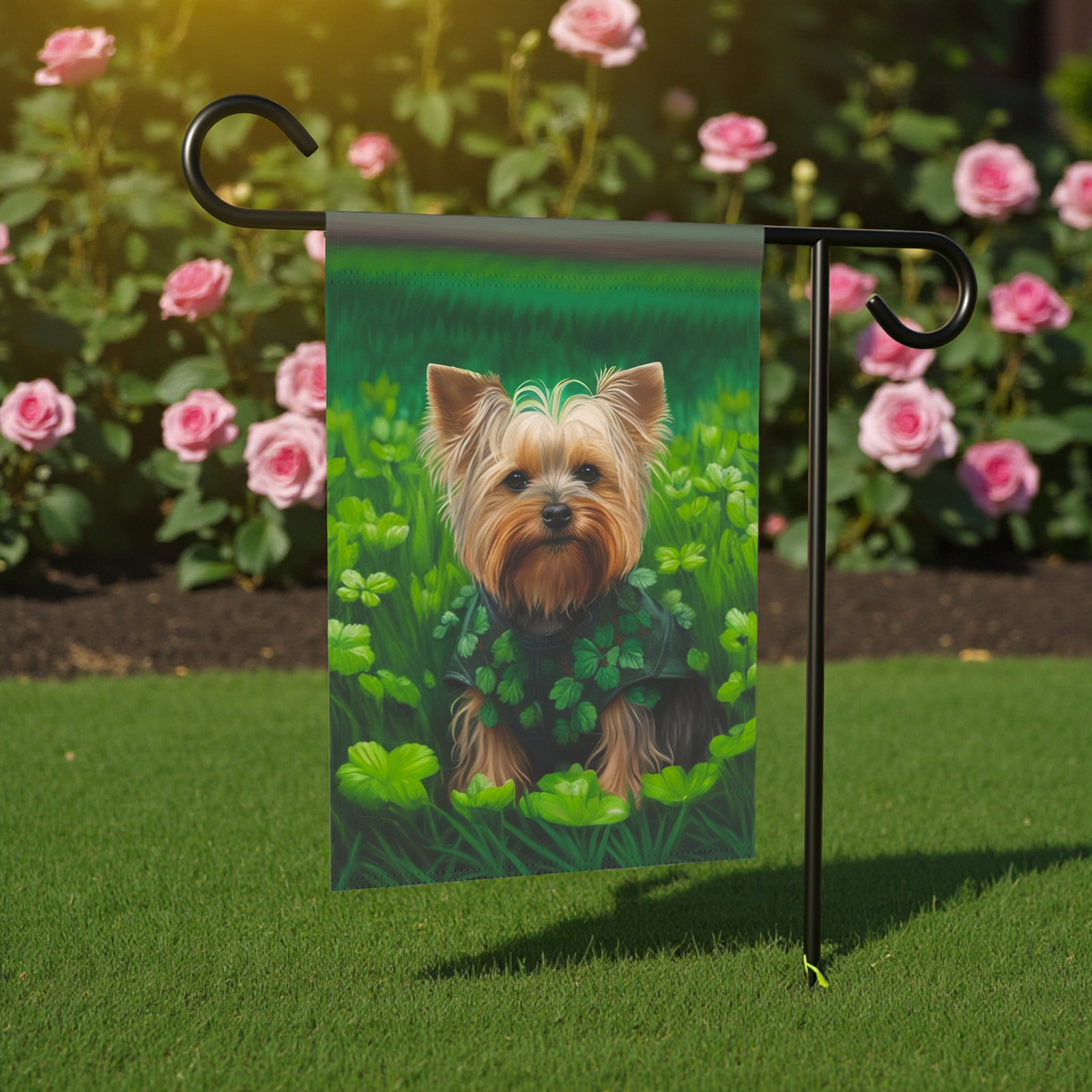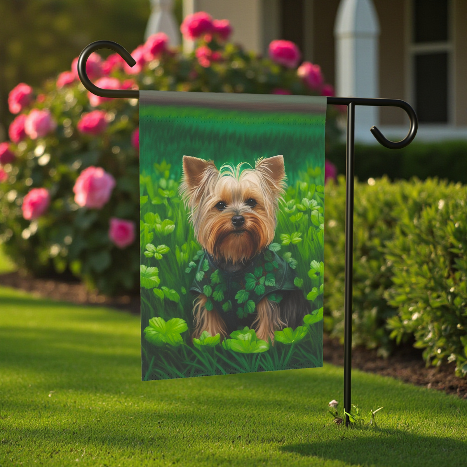 Bring Luck & Love Home with the Yorkie in Clovers Garden Flag!